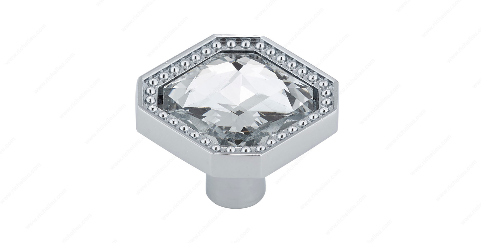 Richelieu BP262603014001 Modern Metal and Crystal Knob - 2626 enhances the allure of furniture and cabinetry with its striking design. This captivating knob combines the elegance of crystal with the sleekness of metal, creating a sparkling statement piece that elevates any space. The clear crystal finish paired with a modern gray and chrome color scheme ensures it seamlessly integrates into various interior styles. With an overall dimension of 1 1/4 inches in both length and width, this knob provides a substantial yet refined touch to your cabinetry. Its projection of 7/8 inch allows for comfortable grip and usability, while the base diameter of 13/32 inch ensures a sturdy installation. Made from high-quality metal, crystal, and glass, this knob is designed for durability and style. The knob comes complete with an 8/32 inch screw for easy attachment, making installation a breeze. It belongs to Richelieu's New Collection, reflecting contemporary trends in hardware design. Ideal for both building professionals and discerning homeowners, the Richelieu BP262603014001 knob is a perfect choice for those looking to add a touch of elegance and modernity to their living spaces. Let this stunning piece redefine the aesthetic of your interiors.