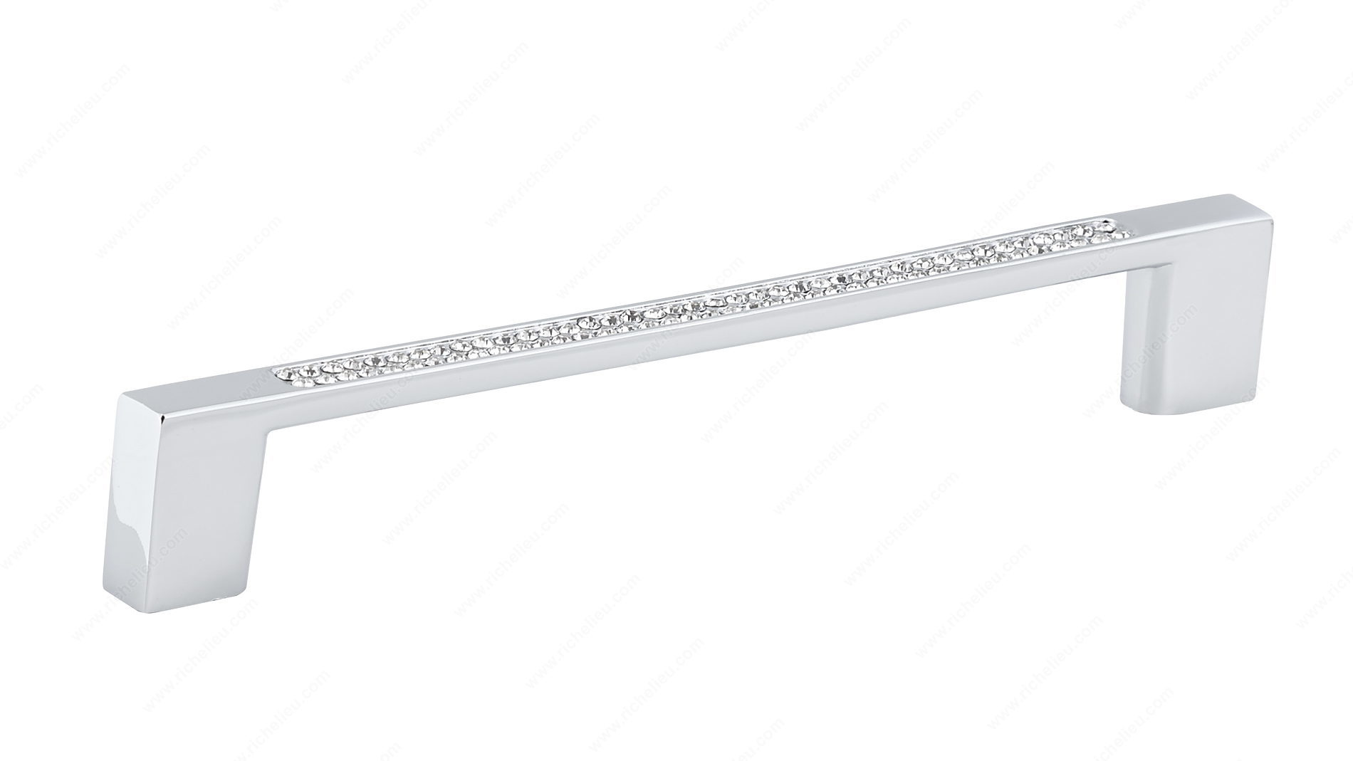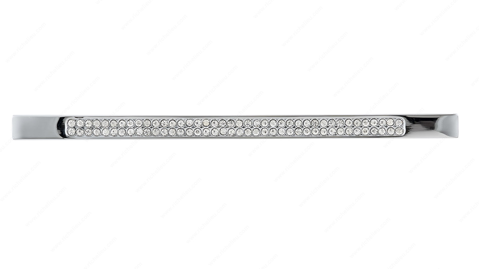 Richelieu BP353512814001 Modern Metal and Crystal Pull - 3535 elevates your space with its striking blend of contemporary design and timeless elegance. Featuring clean, straight lines adorned with sparkling crystals, this pull makes a stunning addition to any bedroom or bathroom décor. Its clear finish, complemented by chrome accents, offers a sophisticated touch that enhances the overall aesthetic of your furniture. With a center-to-center measurement of 5 1/32 inches, this pull is designed for easy installation and fits seamlessly into a variety of cabinetry styles. The overall dimensions of 6 1/32 inches in length and a projection of 29/32 inches provide a comfortable grip, making it both functional and stylish. Made from durable metal, crystal, and glass, this product promises longevity while maintaining its chic appearance. Each pull comes with an 8/32 inch screw included, ensuring a hassle-free setup. From the New Collection, the BP353512814001 is perfect for those looking to infuse their interiors with a modern flair. Whether you're refreshing your home or embarking on a new project, this pull is sure to impress with its exquisite design and quality craftsmanship.