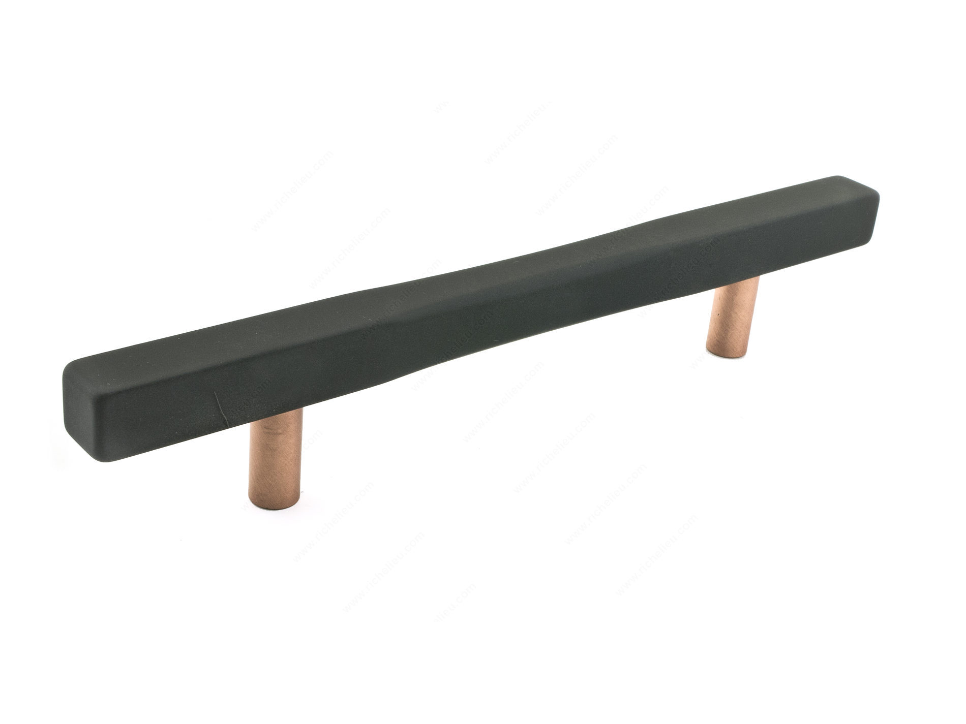 Richelieu 7735128191900 Modern Metal Pull - 7735 combines ergonomic functionality with a striking design that embodies the essence of the Loft Collection. This pull features a bold matte black finish paired with coppertone accents, creating a contemporary aesthetic that enhances any space. Measuring 8 3/16 inches in length and 9/16 inches in width, it offers a comfortable grip while maintaining a sleek profile. Designed for versatility, the pull has a center-to-center measurement of 5 1/32 inches, making it suitable for various cabinetry and furniture applications. Crafted from durable aluminum, this product is built to withstand everyday use while adding a touch of sophistication to your interiors. The modern style is perfect for those looking to elevate their decor with unique textures and robust shapes. Installation is straightforward, as M4 screws are included for added convenience. Whether you’re updating a kitchen, bathroom, or any living space, the Richelieu 7735128191900 Metal Pull is an excellent choice for professionals and discerning homeowners alike. Its blend of functionality and modern design ensures it will stand the test of time, making it a valuable addition to the Loft Collection.