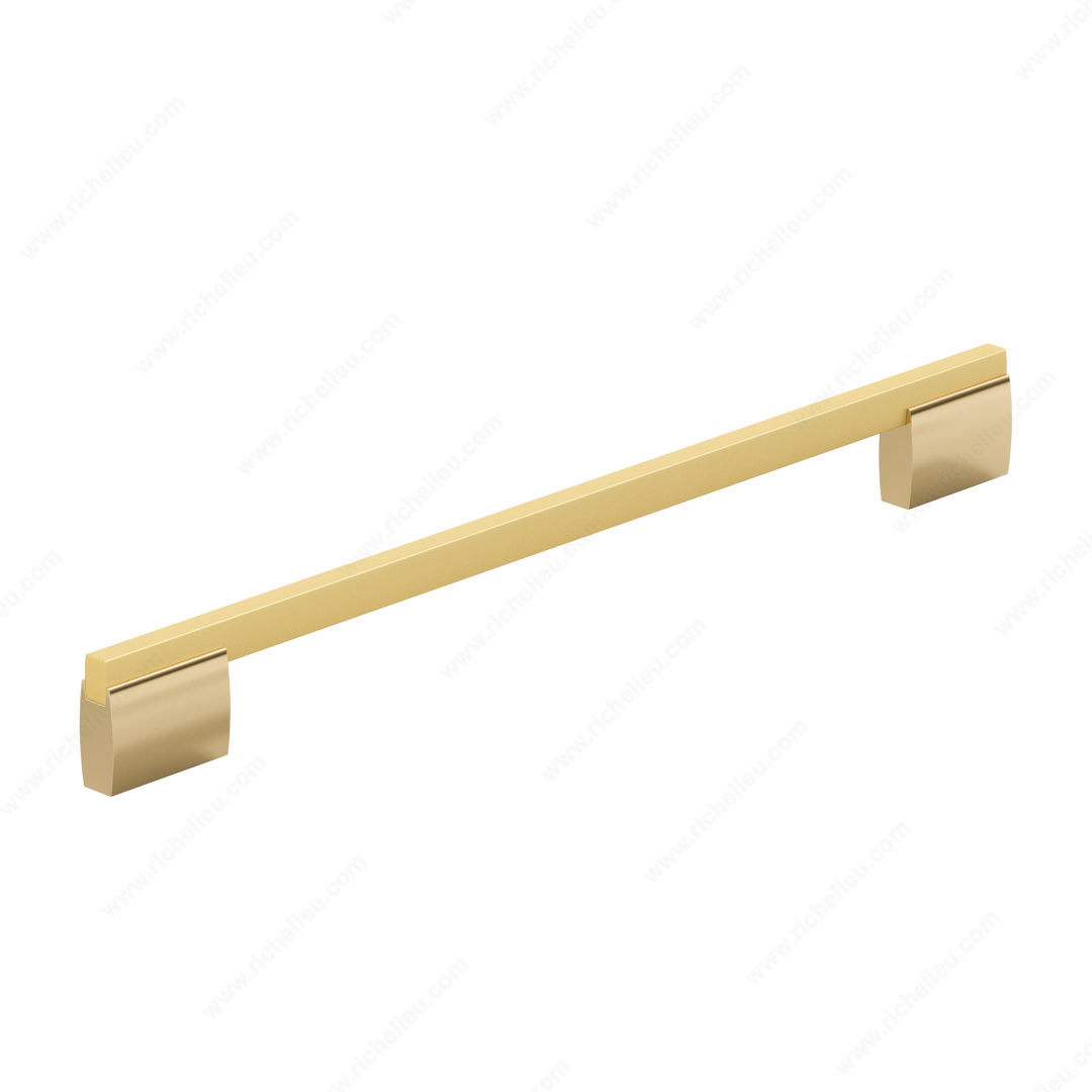 Richelieu 7990320131165 Modern Metal Pull offers a striking fusion of style and functionality, designed to enhance both furniture and cabinetry. With its bold wide posts and a sleek rectangular handle, this pull makes a strong visual statement, perfect for contemporary interiors. Measuring 13 1/8 inches in length with a center-to-center distance of 12 5/8 inches, it is crafted from durable aluminum, ensuring longevity and reliability. The pull features a luxurious metallic gold and brushed gold finish, effortlessly elevating the aesthetic of any space. Its modern design, with an overall width of 1/2 inch and a projection of 1 13/32 inches, allows for comfortable grip while maintaining a streamlined appearance. Included with every pull are M4 screws, making installation straightforward and hassle-free. This piece is part of Richelieu's New Collection, which showcases quality craftsmanship and attention to detail. Whether you're updating kitchen cabinets or adding flair to furniture pieces, the Richelieu Modern Metal Pull is an excellent choice for discerning homeowners and professionals alike. Let this elegant hardware redefine your spaces with its sophisticated charm and contemporary appeal.