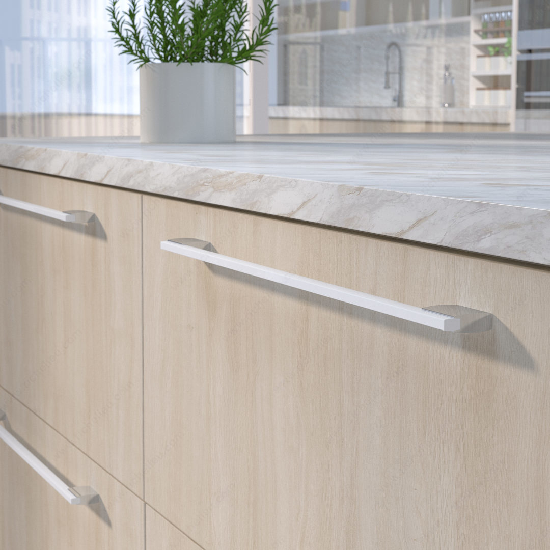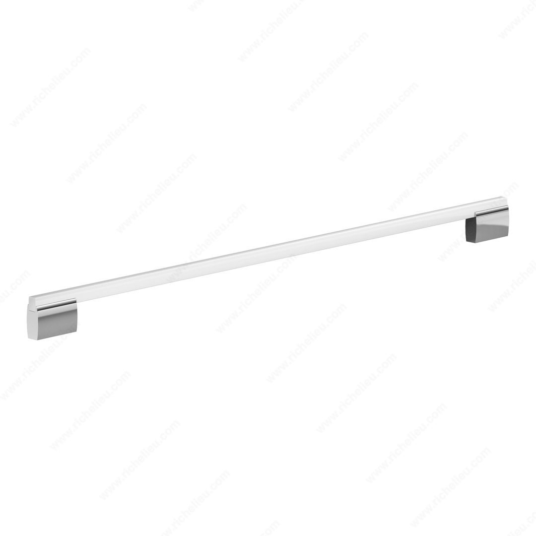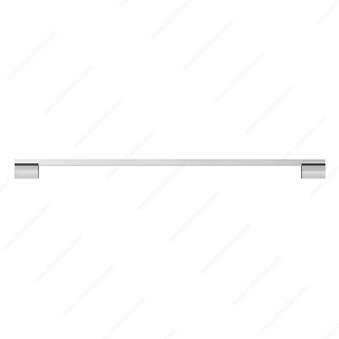 Richelieu 799051214002 Modern Metal Pull offers an exceptional blend of style and function, designed to elevate your furniture and cabinetry. Featuring a striking combination of wide posts and a sleek rectangular handle, this pull makes a bold statement while ensuring ease of use. It is particularly well-suited for contemporary spaces, adding a touch of sophistication to kitchens, bathrooms, or any room requiring a stylish accent. This extra-long pull measures 20 5/8 inches in overall length, with a center-to-center distance of 20 1/8 inches, making it perfect for larger drawers or cabinet doors. Crafted from durable aluminum, it combines both lightweight design and robust strength. The elegant chrome and white finish enhances its modern appeal, seamlessly fitting into various décor styles. With a projection of 1 13/32 inches and a width of 1/2 inch, the pull is comfortably ergonomic, ensuring a secure grip. Installation is straightforward, as M4 screws are included for your convenience. This pull is part of Richelieu's New Collection, reflecting their commitment to innovative design and quality craftsmanship. Enhance your spaces with the Richelieu Modern Metal Pull, a perfect fusion of aesthetic appeal and practical functionality.