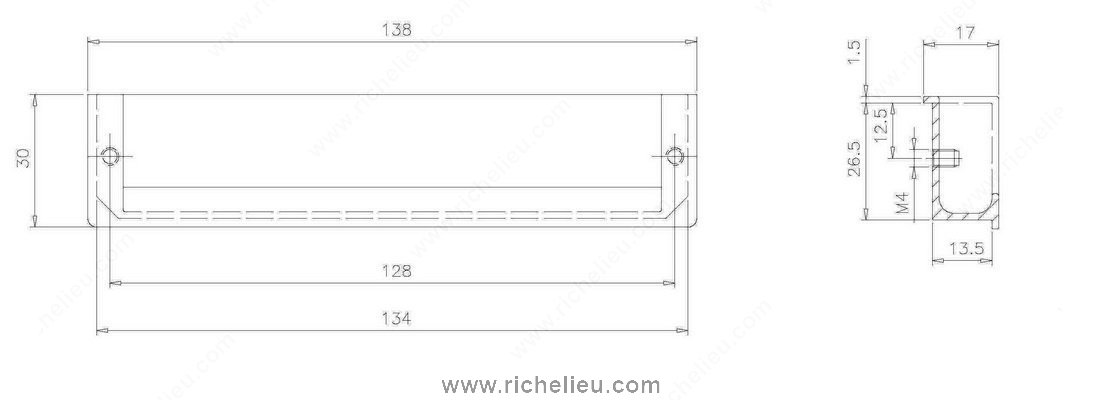 Richelieu 616743128174 Modern Recessed Metal Pull - 6167 combines sleek design with practical functionality, making it an ideal choice for contemporary spaces. Crafted from durable aluminum, this recessed pull features a sophisticated matte chrome finish that adds a touch of elegance to any cabinetry or furniture. With an overall length of 5 9/32 inches and a width of 1 1/32 inches, it provides a comfortable grip while maintaining a streamlined appearance. Designed with a center-to-center measurement of 5 1/32 inches, this pull is perfect for various applications, seamlessly fitting into modern designs. The milling depth of 25/32 inches ensures that it can be easily integrated into your cabinetry, while the 9/16-inch projection allows for easy access without protruding too far. The included M4 screws simplify installation, making it user-friendly for professionals and DIY enthusiasts alike. Offered in a stylish gray and chrome color scheme, the Richelieu 616743128174 pull not only enhances aesthetics but also delivers reliable performance. Whether you are upgrading your kitchen, bathroom, or furniture, this recessed pull provides a chic solution that complements modern interiors while ensuring functionality and ease of use.