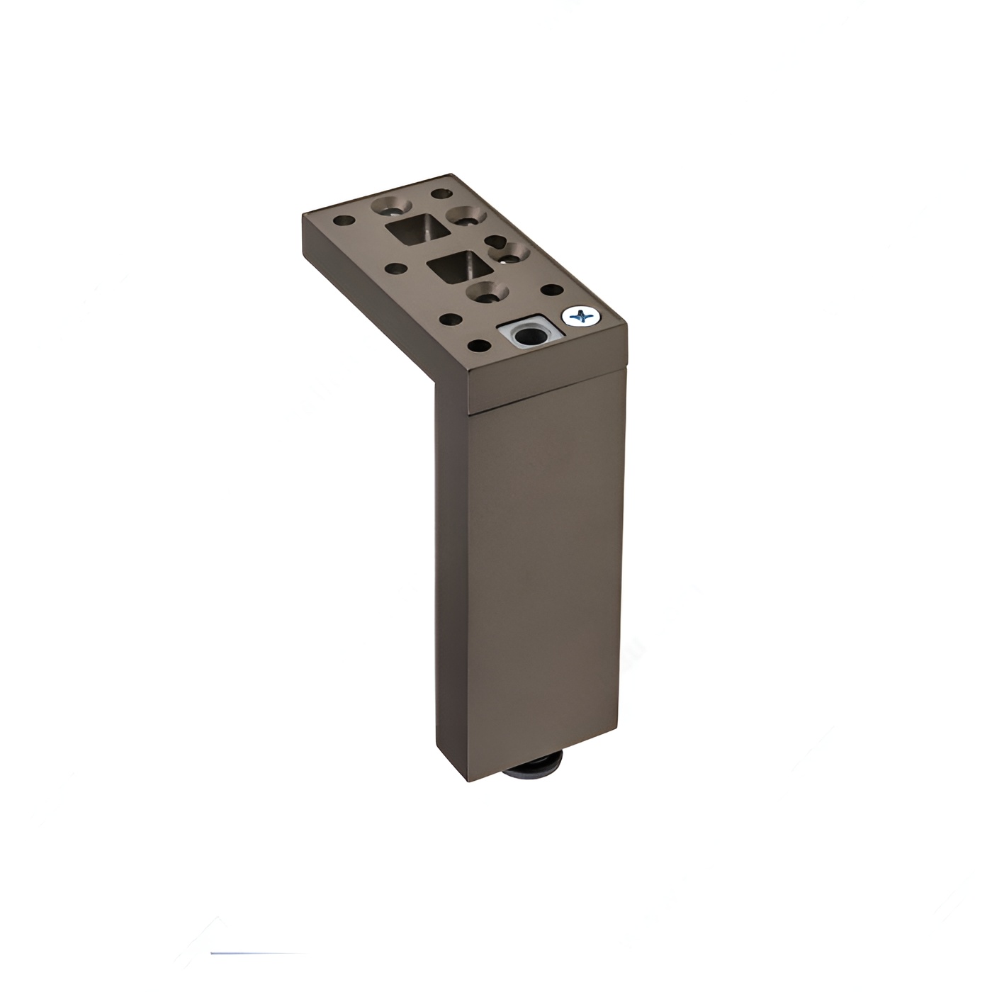 Richelieu 205100135 Contemporary Versatile T or L Shaped Furniture Leg - 205 offers a modern and elegant solution for your furniture needs. This innovative leg features a unique mounting plate that provides five versatile positioning options, allowing for both T and L configurations depending on your specific application. Crafted from durable aluminum, each leg can support an impressive load capacity of up to 441 lbs, ensuring stability and reliability for various furniture pieces. The leg is adjustable, providing up to 9/16 in (15 mm) of height flexibility, making it perfect for uneven surfaces or for achieving the desired height. Available in five stunning finishes, including a sophisticated bronze option, and seven different heights, this furniture leg can seamlessly blend with your design aesthetic. Installation is a breeze, thanks to its user-friendly design. The base dimension of 20 mm x 50 mm and a plate dimension of 1 31/32 in x 3 15/16 in (50 mm x 100 mm) ensure a secure fit. Whether you're a building professional or an experienced homeowner, the Richelieu 205100135 leg is a stylish and practical choice for enhancing your contemporary furniture projects.