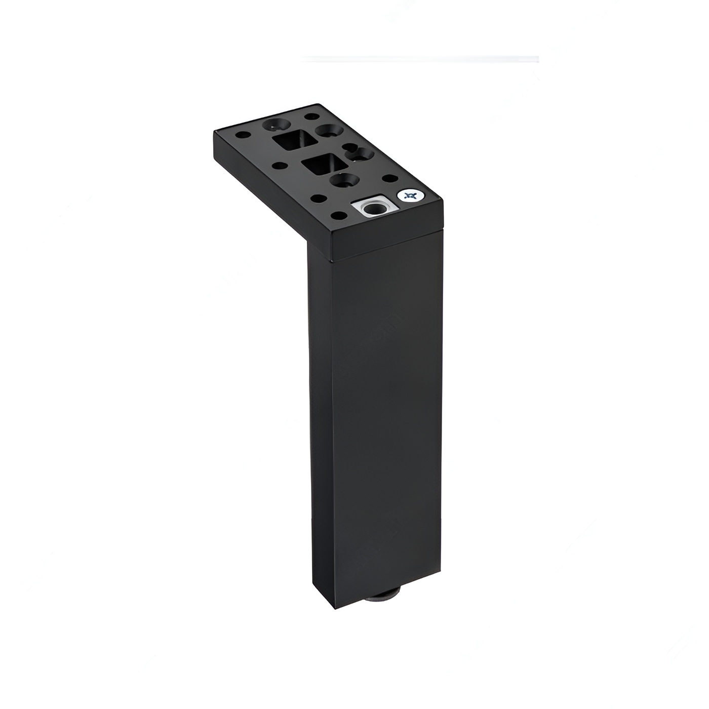 Richelieu 205350900 Contemporary Versatile T or L Shaped Furniture Leg - 205 combines modern elegance with exceptional functionality. This heavy-duty furniture leg features a unique mounting plate that allows for five different positioning options, making it ideal for a variety of applications. Its versatility is highlighted by the ability to be mounted in either an L or T configuration, providing flexible solutions that adapt to your design needs. Crafted from durable aluminum, this leg supports an impressive load capacity of up to 220 pounds, ensuring stability for your furniture. With an adjustable height of 13 3/4 inches and an adjustment range of up to 9/16 inch (15 mm), you can achieve the perfect fit for your projects. The base dimensions of 20 mm x 50 mm and a plate dimension of 1 31/32 in x 3 15/16 in (50 mm x 100 mm) further enhance its practicality. Available in five stylish finishes, including a sleek matte black, the Richelieu 205350900 leg is not only functional but also complements contemporary aesthetics. Easy installation ensures that both building professionals and knowledgeable homeowners can effortlessly incorporate this versatile leg into their designs. Upgrade your furniture with this sophisticated and adaptable solution.
