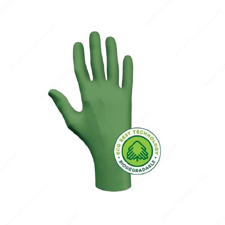 Richelieu D611008 Biodegradable Disposable Nitrile Gloves are designed with revolutionary Eco Best Technology® (EBT) to offer exceptional comfort and performance. These 4 mil thick gloves are made entirely from nitrile, ensuring a latex-free experience that is safe for users with latex allergies. With a length of 240 mm (9.5 inches) and a rolled cuff, they provide a secure fit while allowing easy donning and doffing. The smooth finish enhances dexterity, making these gloves suitable for a variety of applications, from food handling to medical use. Notably, the gloves are powder-free, reducing the risk of contamination and ensuring a clean experience. The striking green color adds a touch of visibility, making them easy to identify in busy work environments. These gloves offer reliable protection against bacteria, fungi, and viruses, compliant with EN 374-5 standards. Each dispenser box contains 100 gloves, and with 10 dispensers per case, you’ll have a consistent supply on hand. Choose Richelieu D611008 for a sustainable, high-quality glove that meets the demands of professionals while being environmentally friendly. Perfect for those who prioritize both safety and sustainability in their work.