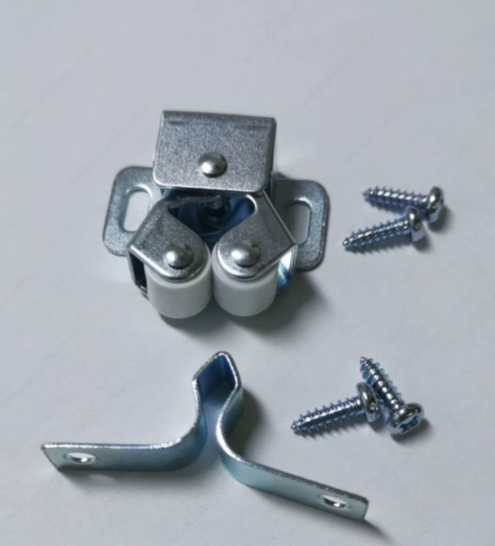 Richelieu AP6032G Double Roller Catch with Diamond Strike offers a practical and robust solution for securing cabinet doors with ease. Made from durable metal and finished in zinc, this catch is designed to complement a wide range of cabinet hardware pulls and knobs, allowing for seamless integration into your design. Measuring 1 1/4 inches in width and featuring a compact height of just 1/2 inch, the AP6032G is perfect for various cabinetry applications without compromising aesthetics. The depth of both the catch and the strike is 5/8 inch, ensuring a snug fit that enhances functionality. With a pulling force of 5.51 lbs, it provides reliable performance, keeping doors securely closed while still allowing for easy access. The double roller design not only increases durability but also ensures smooth operation, making it an excellent choice for both professionals and knowledgeable homeowners. This product is conveniently packaged in bags of 10 units, making it easy to stock up for larger projects. Whether you are upgrading your kitchen or refining cabinetry throughout your home, the Richelieu AP6032G Double Roller Catch is a dependable choice that combines functionality with style.