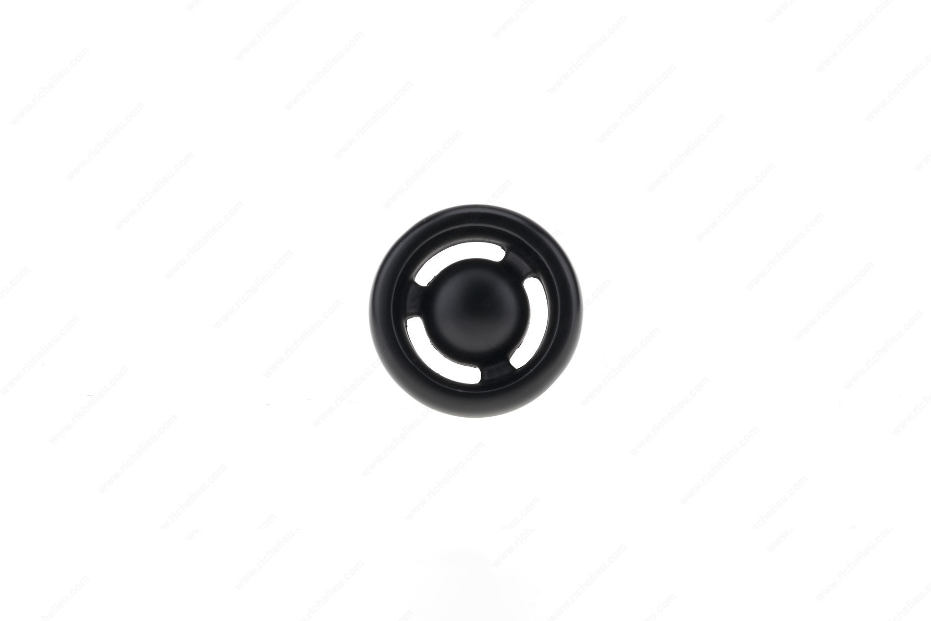 Richelieu BP220936900 Eclectic Aluminum Knob - 2209 is a striking addition to any cabinetry or furniture piece, blending a steampunk aesthetic with modern functionality. This knob features a unique vintage shape that instantly elevates the style of your interior spaces, making it an ideal choice for those who appreciate eclectic design. Crafted from durable aluminum, the knob is finished in a sophisticated matte black, providing a timeless look that complements a variety of color palettes and materials. With an overall diameter of 1 13/32 inches and a base diameter of 19/32 inches, it fits comfortably in hand while adding a distinctive flair to your drawers and cabinets. The projection also measures 1 13/32 inches, ensuring ease of use. Included with the knob is an 8/32 inch screw, making installation straightforward and hassle-free. Part of the complete 2209 collection, this knob is perfect for creating a cohesive look in your home. It ships conveniently via UPS, allowing you to enhance your spaces without delay. Transform your cabinets and furniture with the Richelieu BP220936900, where vintage charm meets modern design.