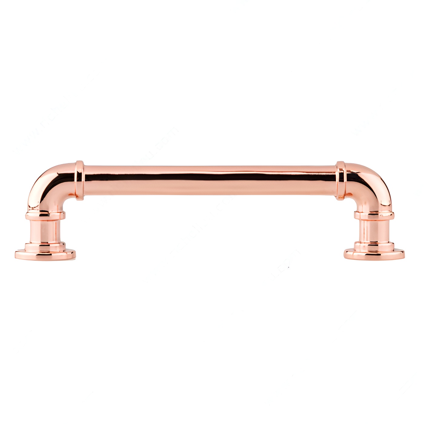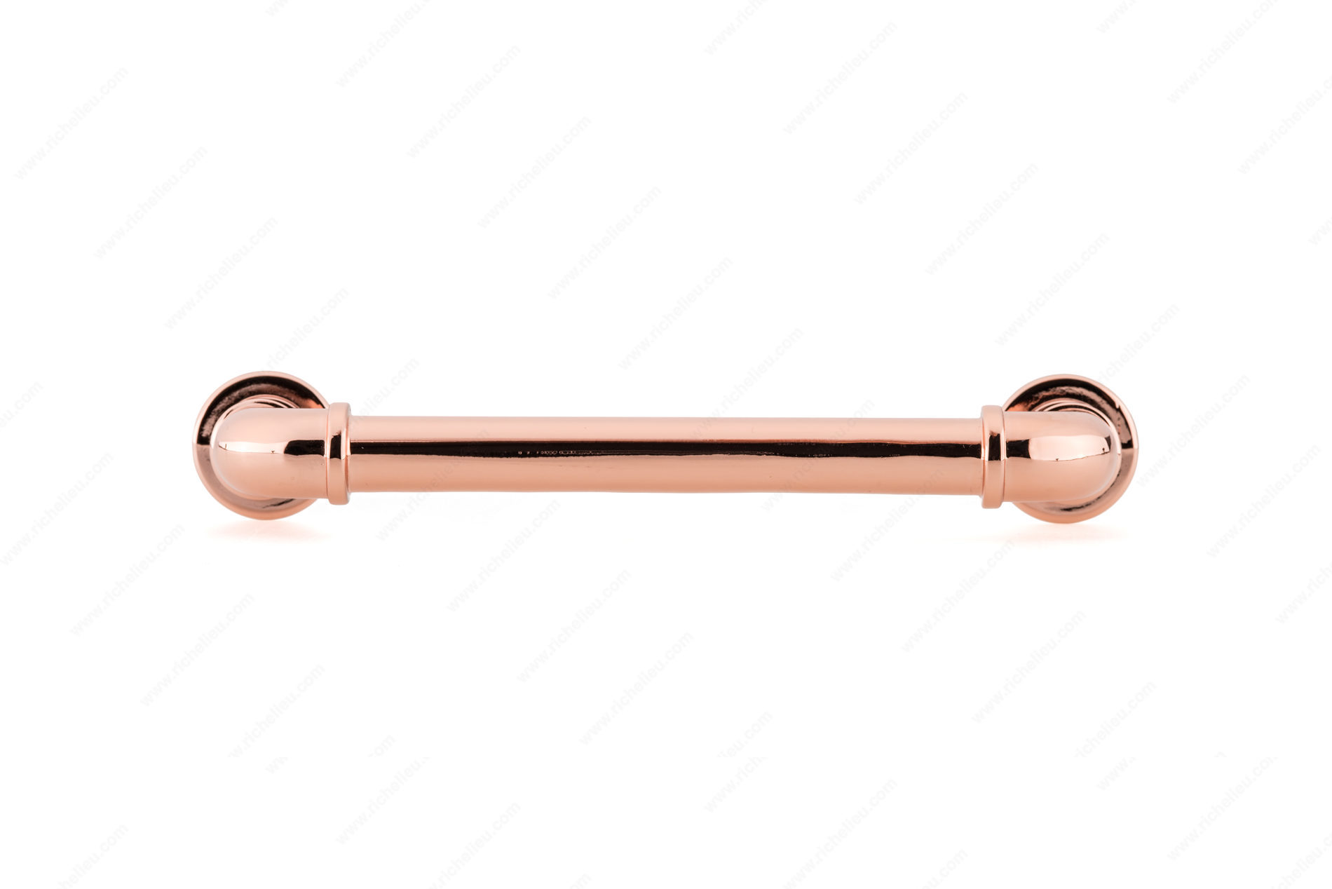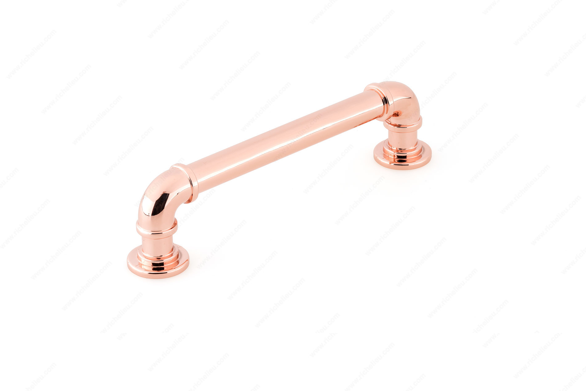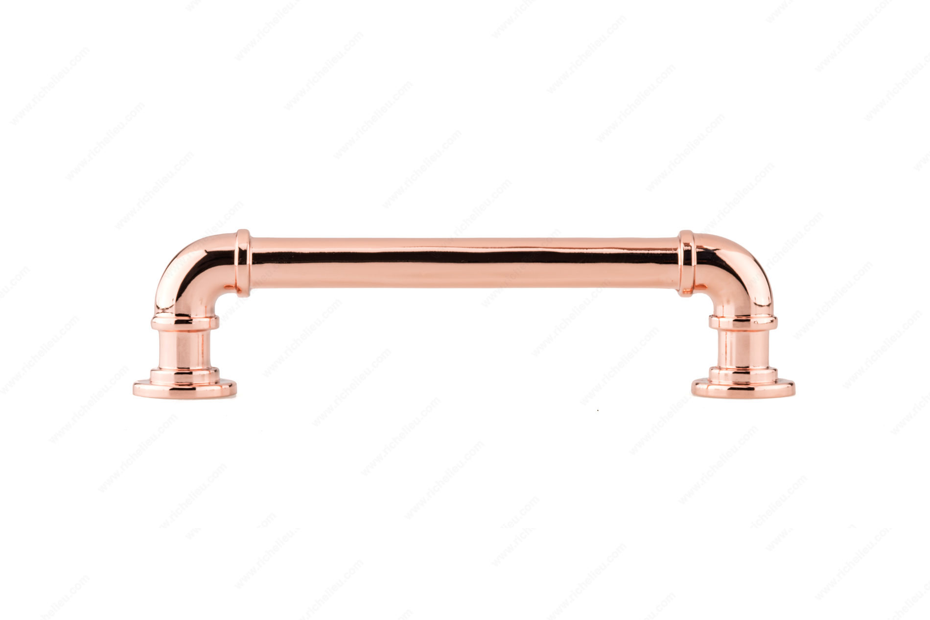 Richelieu BP2209128191 Eclectic Aluminum Pull - 2209 boasts a striking design inspired by the Steampunk aesthetic, making it a perfect choice for enhancing both kitchen and bathroom decor. This eclectic pull, shaped like a pipe, adds a unique touch that stands out in any setting. With a center-to-center measurement of 5 1/32 inches, it provides a comfortable grip and functionality. The polished copper finish in rich tones of red, rose, and rust complements a variety of design themes, creating an eye-catching focal point. Its overall dimensions-5 31/932 inches in length, 15/16 inches in width, and a projection of 1 1/2 inches-ensure it fits seamlessly into your cabinetry or furniture. Crafted from durable aluminum, this pull is not only stylish but also built to withstand daily use. Included with the product are 8/32 inch screws for easy installation, making it a convenient choice for builders and homeowners alike. The BP2209128191 model is part of the complete 2209 collection, allowing for cohesive design across your space. Elevate your interiors with this sophisticated yet functional hardware piece from Richelieu.