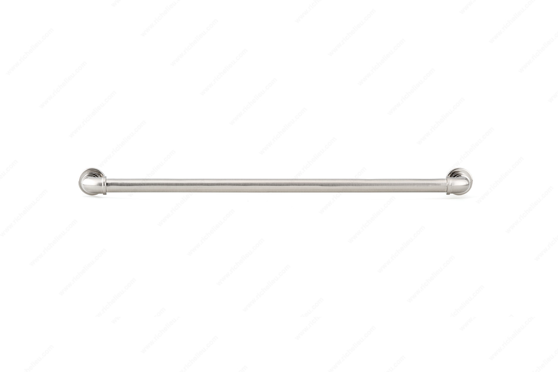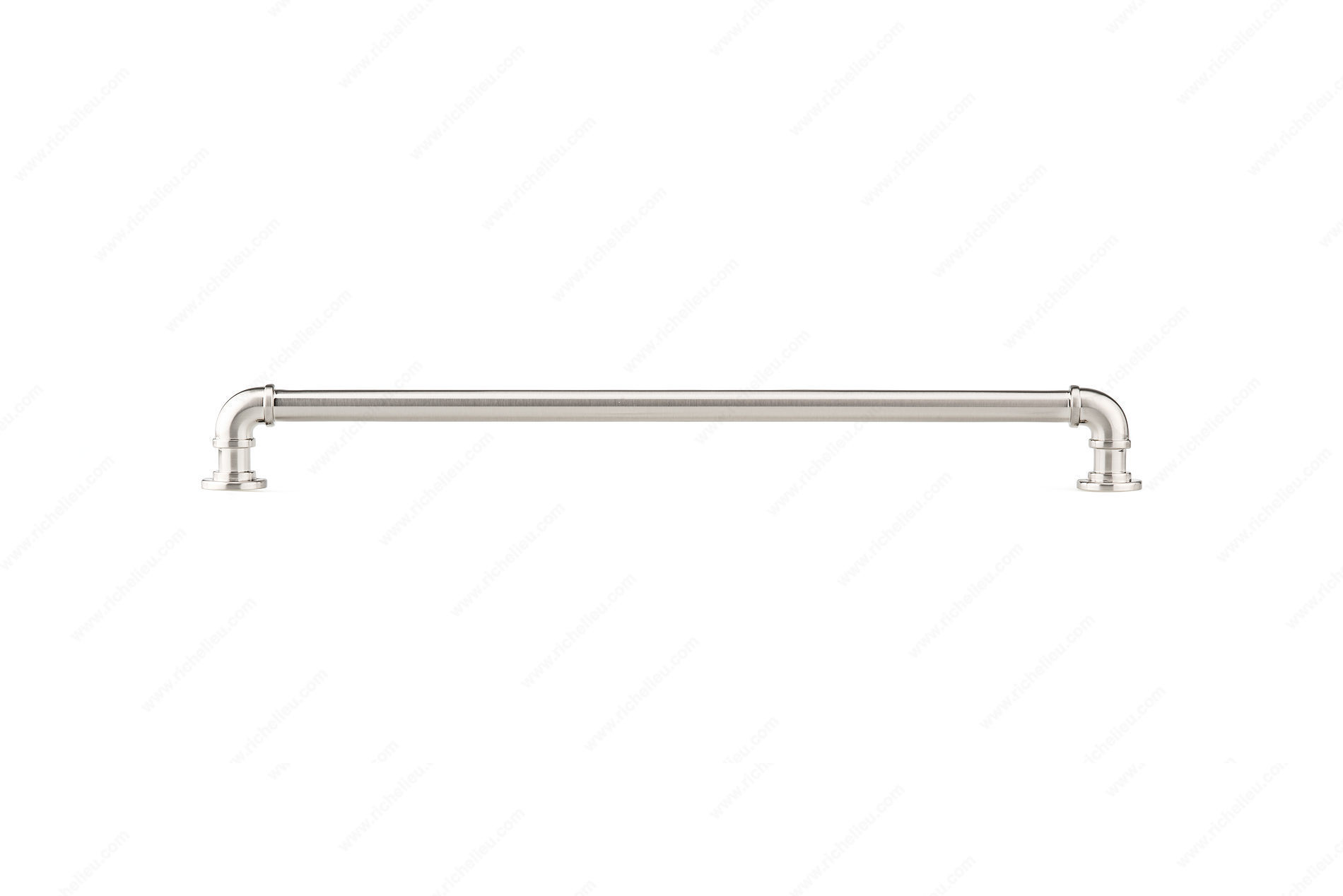 Richelieu BP2209320195 Eclectic Aluminum Pull - 2209 is a striking addition to any kitchen or bathroom, designed with inspiration from the Steampunk aesthetic. This unique pull, shaped like a pipe, captures attention and enhances the overall decor, making it an ideal choice for those looking to add a touch of character to their spaces. Measuring 13 1/2 inches in length with a center-to-center distance of 12 5/8 inches, this pull fits seamlessly into various cabinet styles. Its brushed nickel finish offers a sophisticated contrast with the gray and chrome accents, ensuring it complements a wide range of color schemes. Crafted from durable aluminum, the pull not only boasts a stylish appearance but is also built to last. With an overall projection of 1 1/2 inches and a width of 15/16 inches, the BP2209320195 provides a comfortable grip, making it easy to open drawers and cabinets. Each pull comes with 8/32 inch screws included for straightforward installation. Perfect for eclectic, rustic, or contemporary designs, this pull is part of the complete 2209 collection by Richelieu, ensuring you have cohesive options for your project. Elevate your design with this exceptional hardware piece.