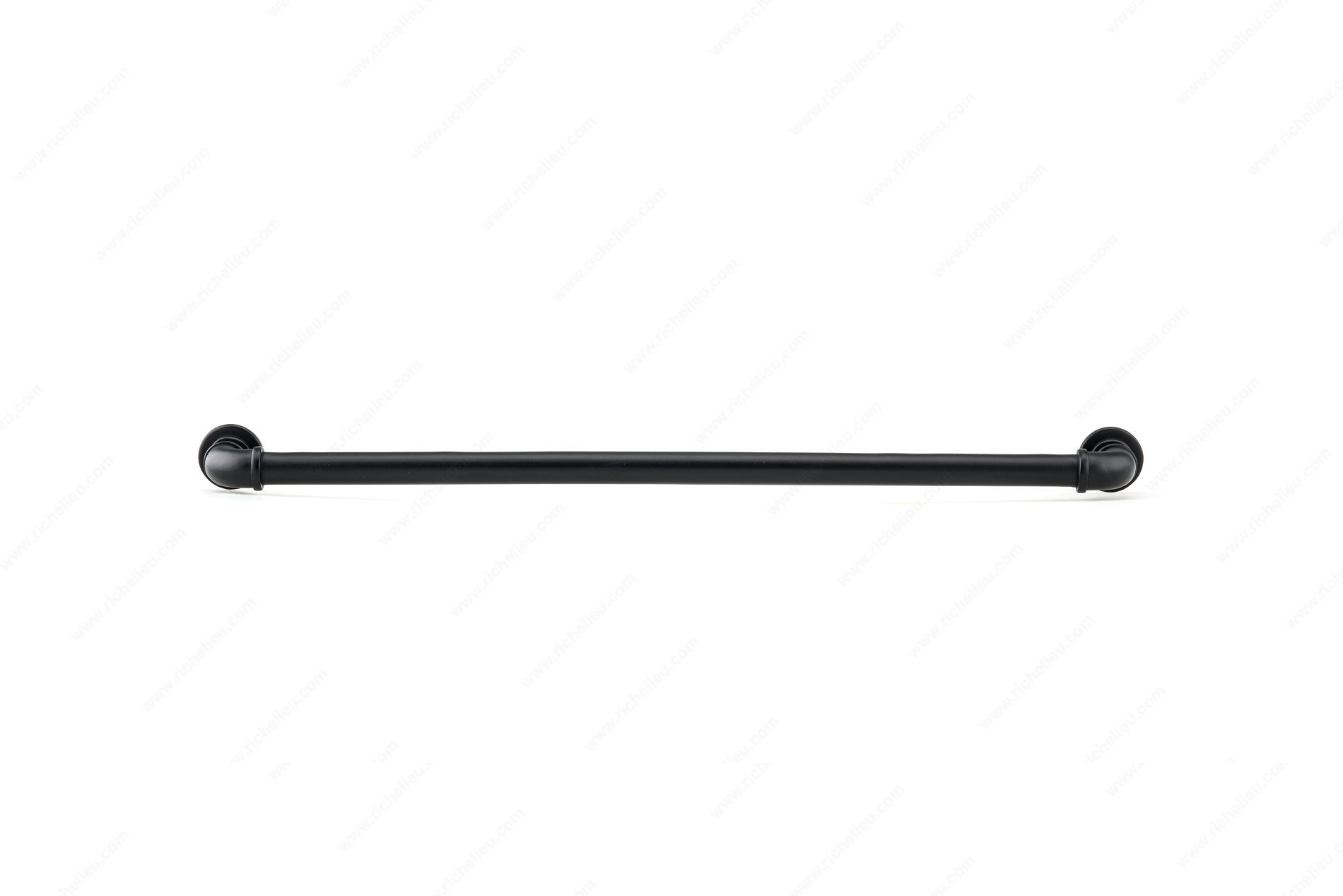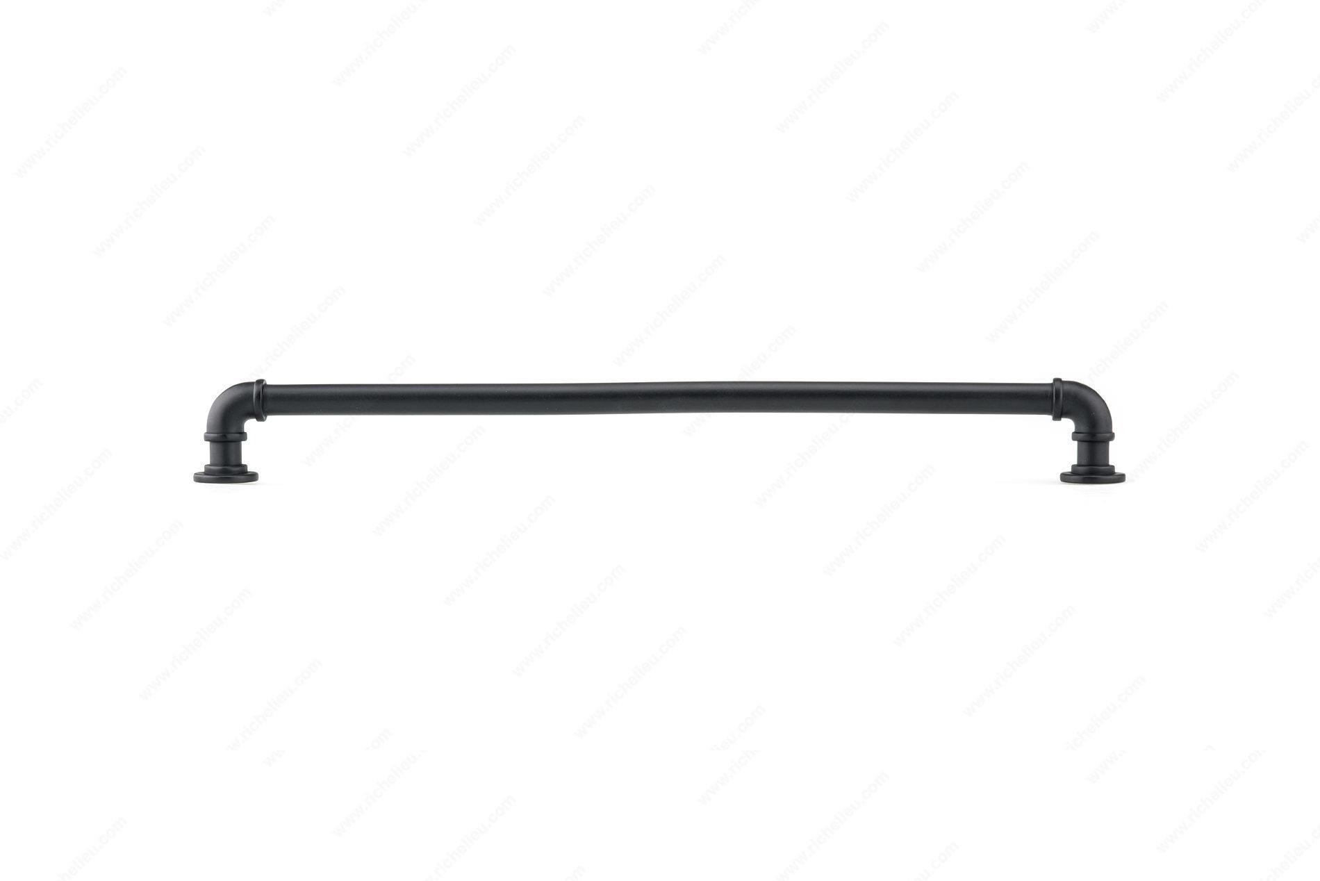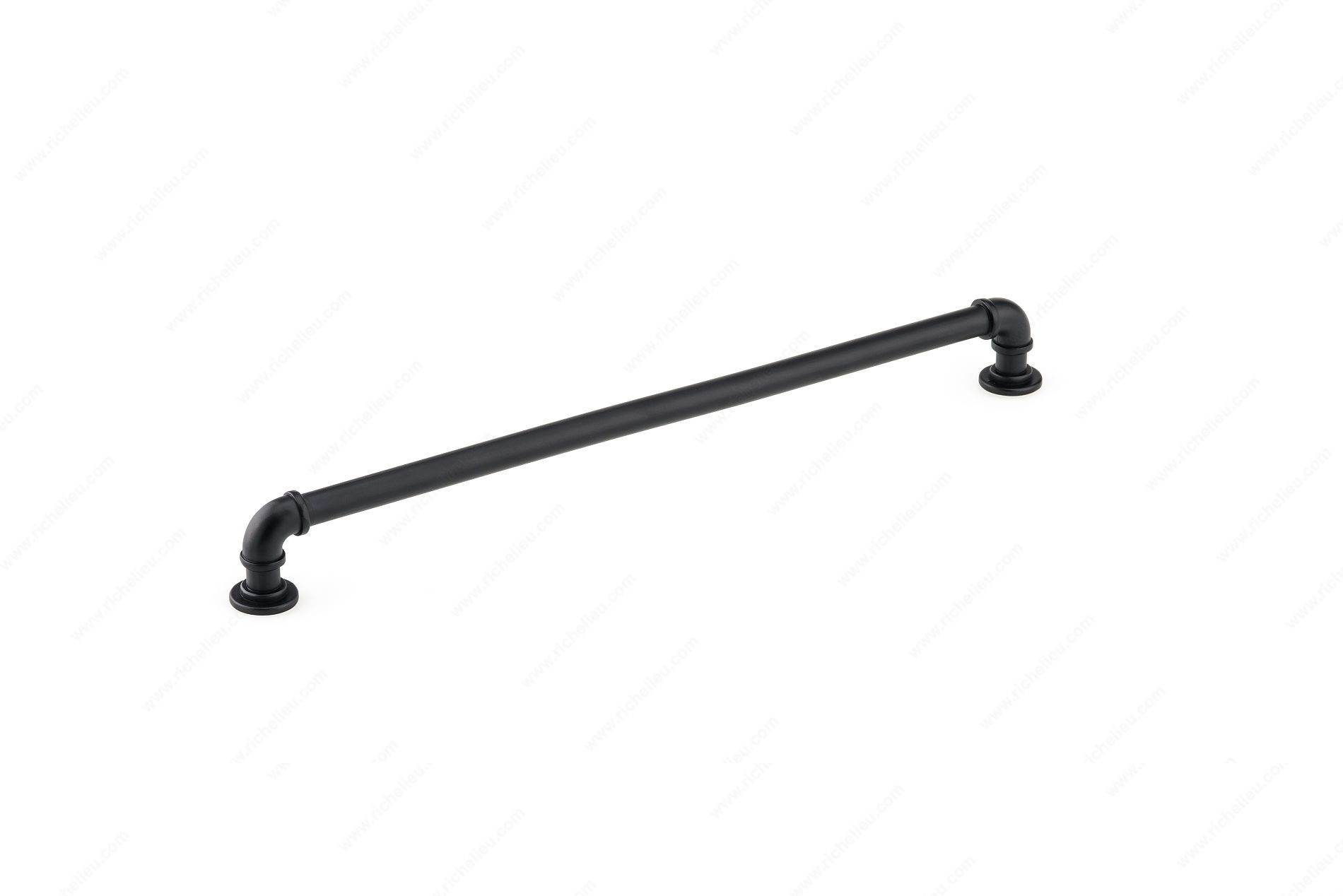 Richelieu BP2209320900 Eclectic Aluminum Pull – 2209 offers a unique design inspired by the Steampunk aesthetic, making it an ideal addition to both kitchen and bathroom decor. This eclectic pull, shaped like a pipe, is crafted from durable aluminum and finished in a sophisticated matte black, ensuring it complements a variety of design themes while providing long-lasting performance. With an overall length of 13 1/2 inches and a center-to-center measurement of 12 5/8 inches, this pull is designed for easy installation and fits perfectly in spaces that require a touch of character. The projection of 1 1/2 inches allows for a comfortable grip, enhancing functionality without compromising style. The Richelieu BP2209320900 is part of the complete 2209 collection, allowing for cohesive design throughout your space. Each pull comes with 8/32 inch screws included, simplifying the installation process. Measuring 15/16 inches in width, it strikes a balance between boldness and subtlety, making it versatile for various cabinetry. Elevate your home with this distinctive pull that marries form and function, showcasing your unique style while ensuring practicality in everyday use.