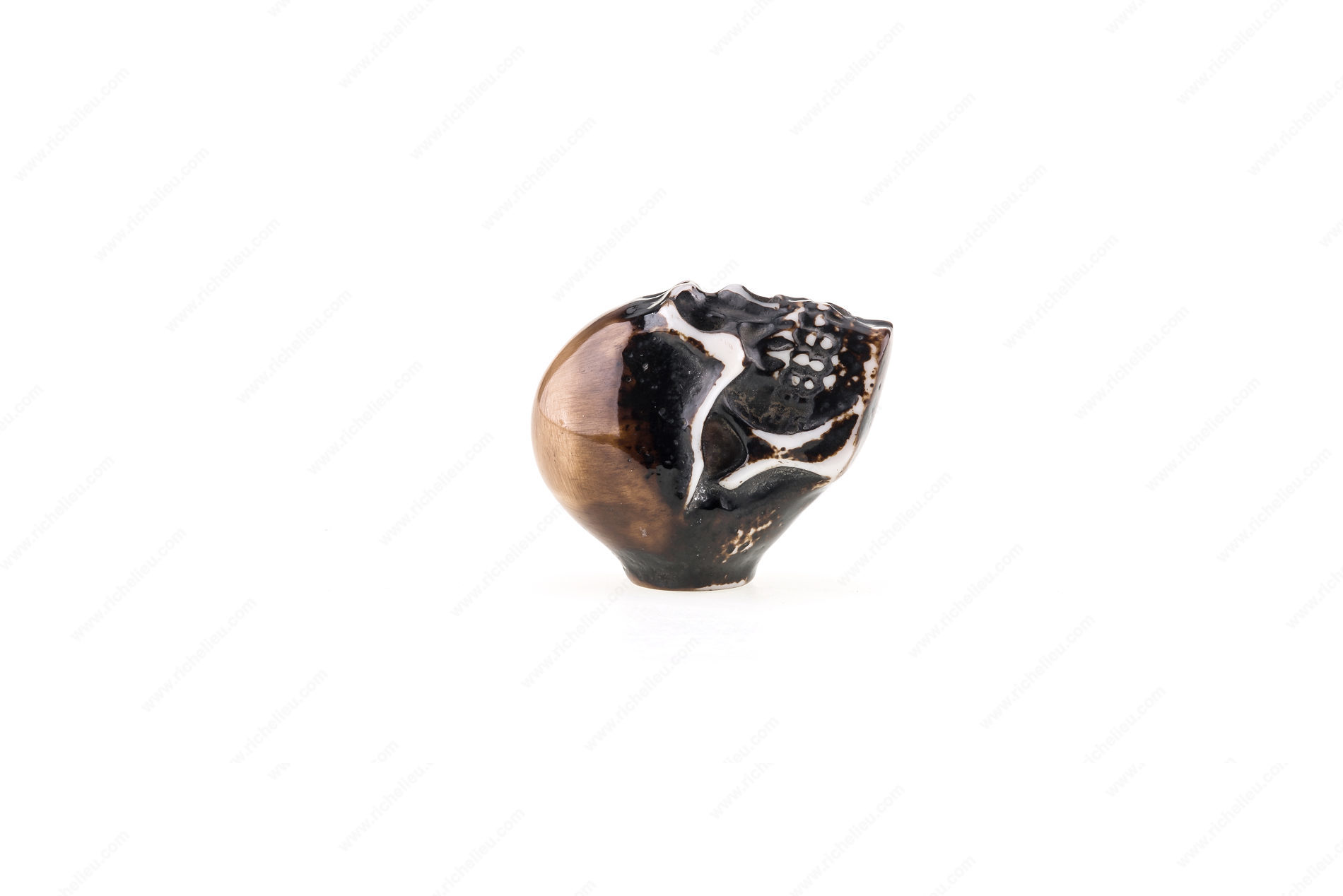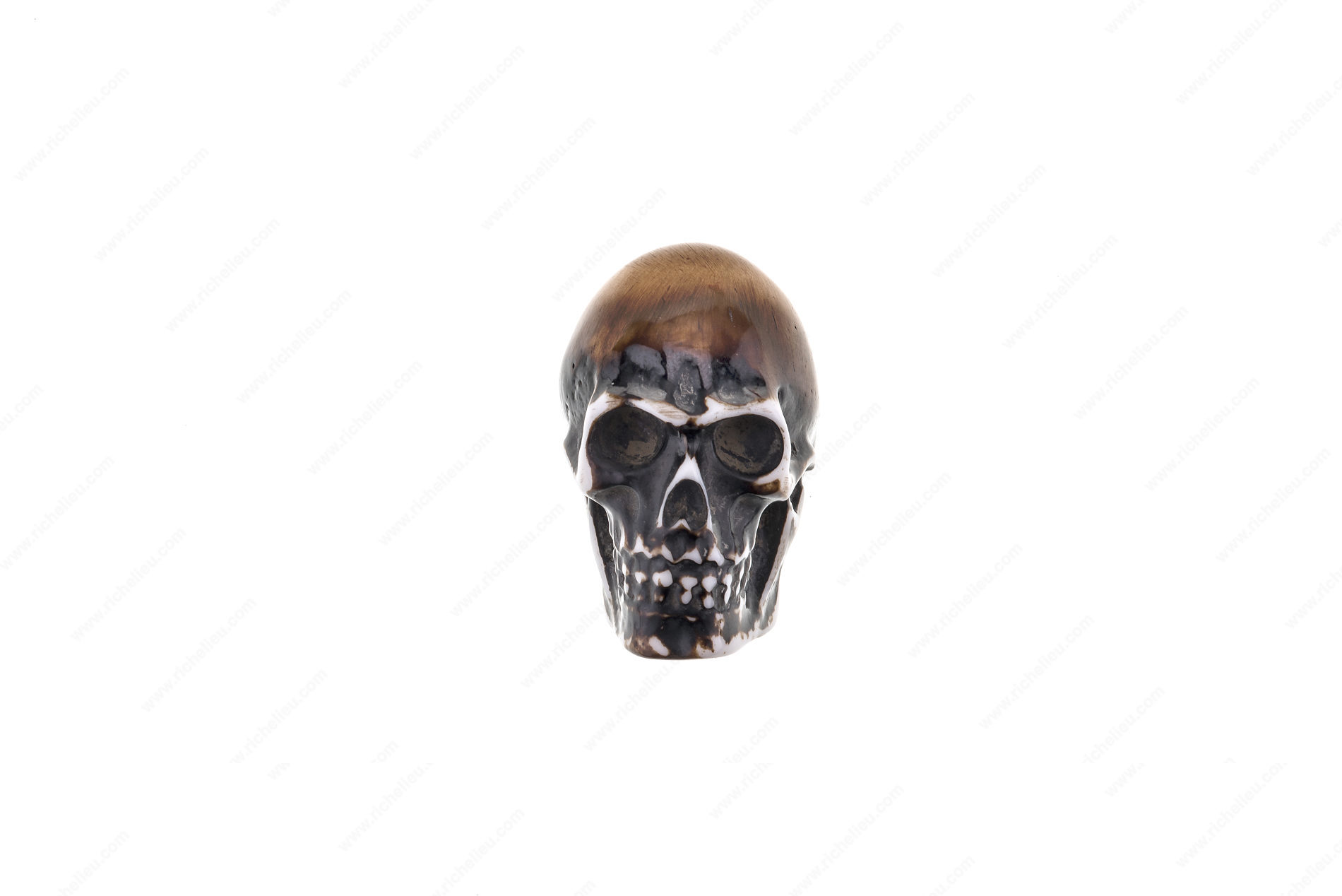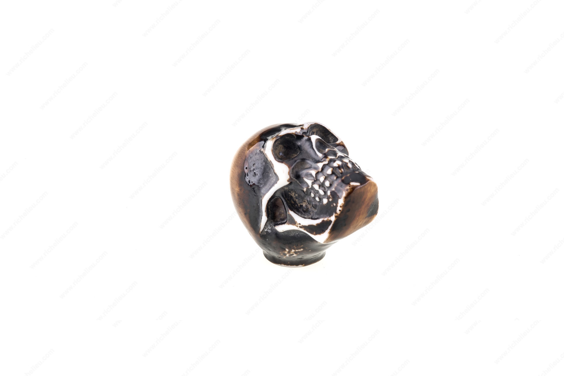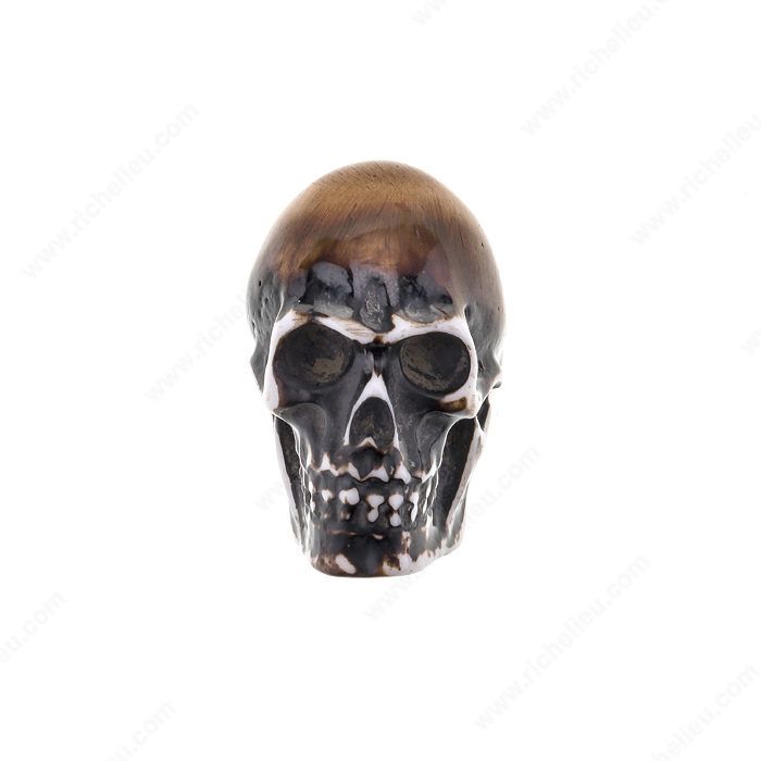 Richelieu BP4457424090 Eclectic Resin Knob - 4457 is a striking addition to any furniture piece, designed to make a bold statement with its unique skull shape. Handcrafted from durable resin, this eclectic knob combines artistry with functionality, ensuring it stands out in any setting. Available in both black and white color options, the knob provides versatility to match various decor styles, while the almond and black finishes enhance its aesthetic appeal. Measuring 1 21/32 inches in length, 1 3/16 inches in width, and with a projection of 1 13/32 inches, this knob is perfectly sized to provide an eye-catching focal point without overwhelming your furniture. It comes equipped with a fixed screw (4.76 mm or 3/16") for easy installation, making it a practical choice for builders and DIY enthusiasts alike. Part of Richelieu's New Collection, the BP4457424090 knob is not just a hardware accessory but a conversation starter that adds character to cabinets, dressers, or drawers. Whether you're refurbishing a vintage piece or enhancing contemporary furniture, this knob is sure to impress with its creative design and quality craftsmanship.