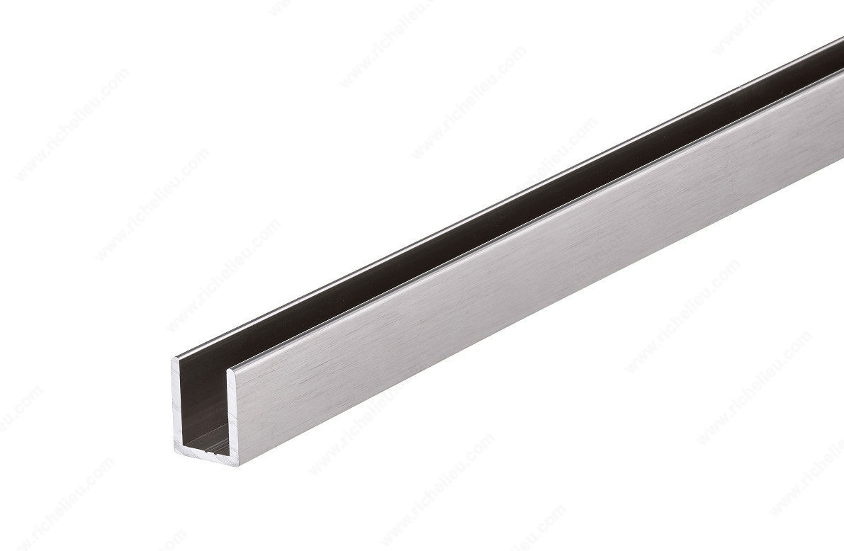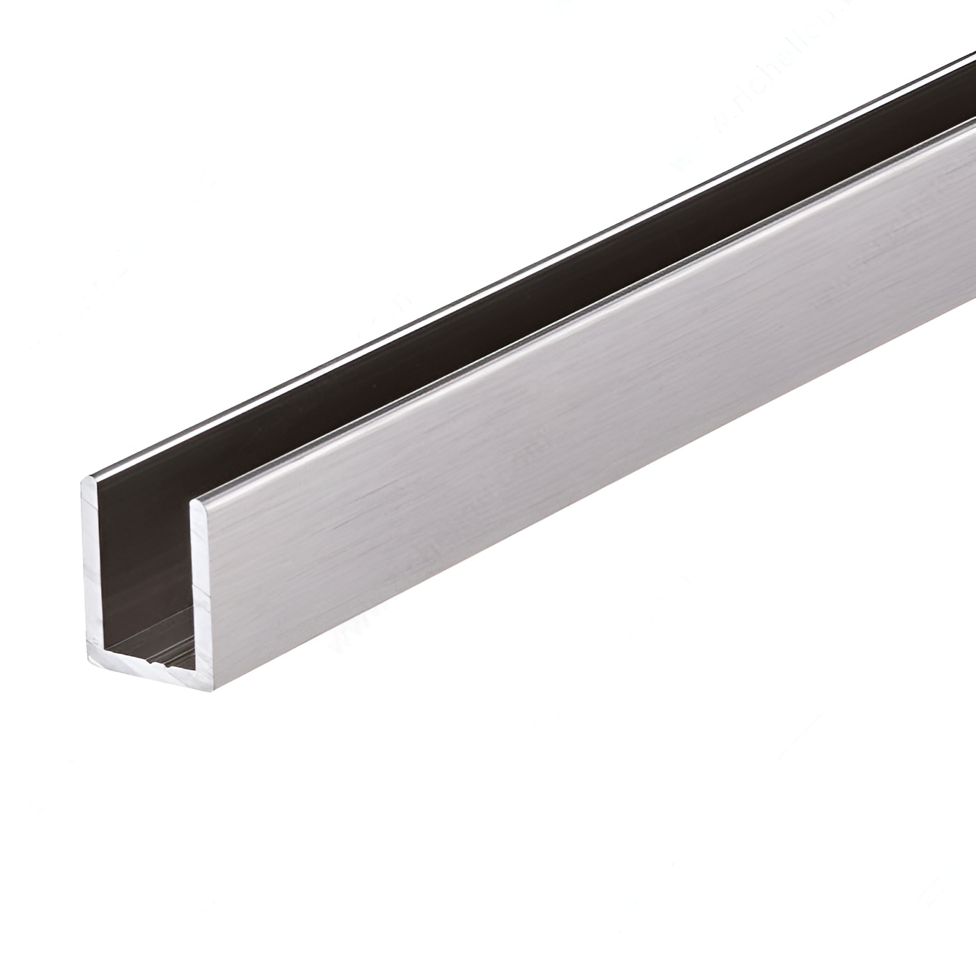 Richelieu EXU3491698170 Aluminum U-Channel for 10 mm (3/8") Glass offers a premium solution for securing and framing glass panels with elegance and durability. Crafted from anodized Aluminum 6063-T5, this deluxe extruded aluminum molding is designed to enhance the aesthetic appeal of any installation while providing robust support. Measuring 98 inches in length, the U-channel accommodates glass thicknesses of up to 13/32 inches, ensuring versatility for various projects. With a height of 3/4 inch and a width of 9/16 inch, it strikes an ideal balance between strength and sleek design. The brushed nickel finish not only adds a modern touch but also ensures resistance to wear and corrosion, making it suitable for both residential and commercial applications. Engineered for long-lasting performance, this U-channel is packaged in an 8-foot linear format, allowing for convenient handling and installation. Please note that shipping is available via common carrier only, ensuring the safe delivery of your materials. Choose Richelieu's EXU3491698170 for a reliable and stylish solution to your glass fitting needs, perfect for creating stunning glass installations that stand the test of time.