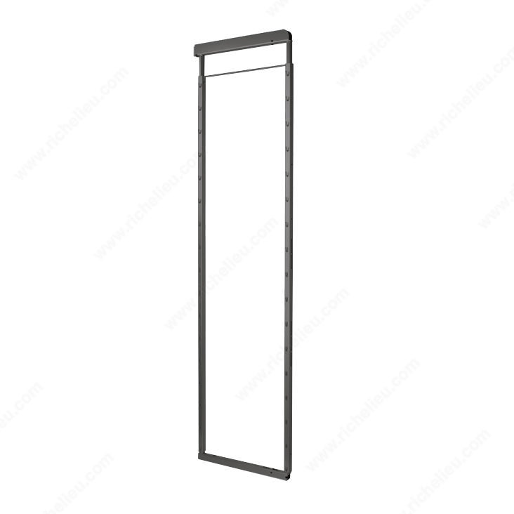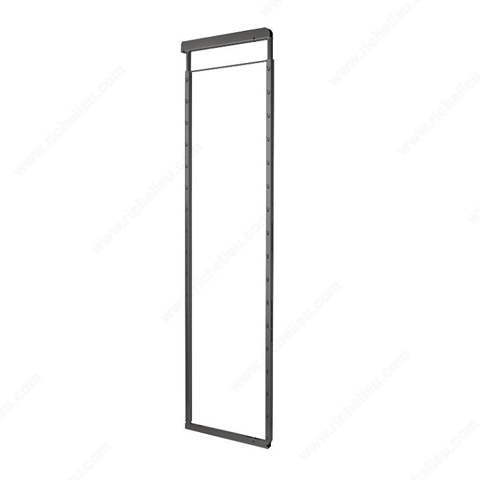 Richelieu 10592906 Fioro Sliding Pantry Frame offers an innovative solution for maximizing storage space in your kitchen or pantry. Designed for efficiency, this adjustable frame accommodates a height range of 45 1/8 to 60 7/8 inches, making it versatile enough to fit various interior dimensions from 47 1/4 to 63 inches. Its sleek anthracite finish not only enhances aesthetics but also ensures durability, blending seamlessly with modern decor. With a depth of 19 1/2 inches and a width of just 31/32 inches, this pantry frame is perfect for narrow spaces, allowing you to utilize every inch effectively. It is specifically designed for food storage, making it an ideal choice for wall units and pantry cabinets. The ability to adjust the frame height adds to its functionality, enabling customized organization based on your storage needs. Richelieu's commitment to quality is evident in this product, ensuring that it can ship via UPS for your convenience. Elevate your kitchen organization with the Fioro Sliding Pantry Frame, a reliable and stylish addition to any culinary space that helps keep your essentials within easy reach.