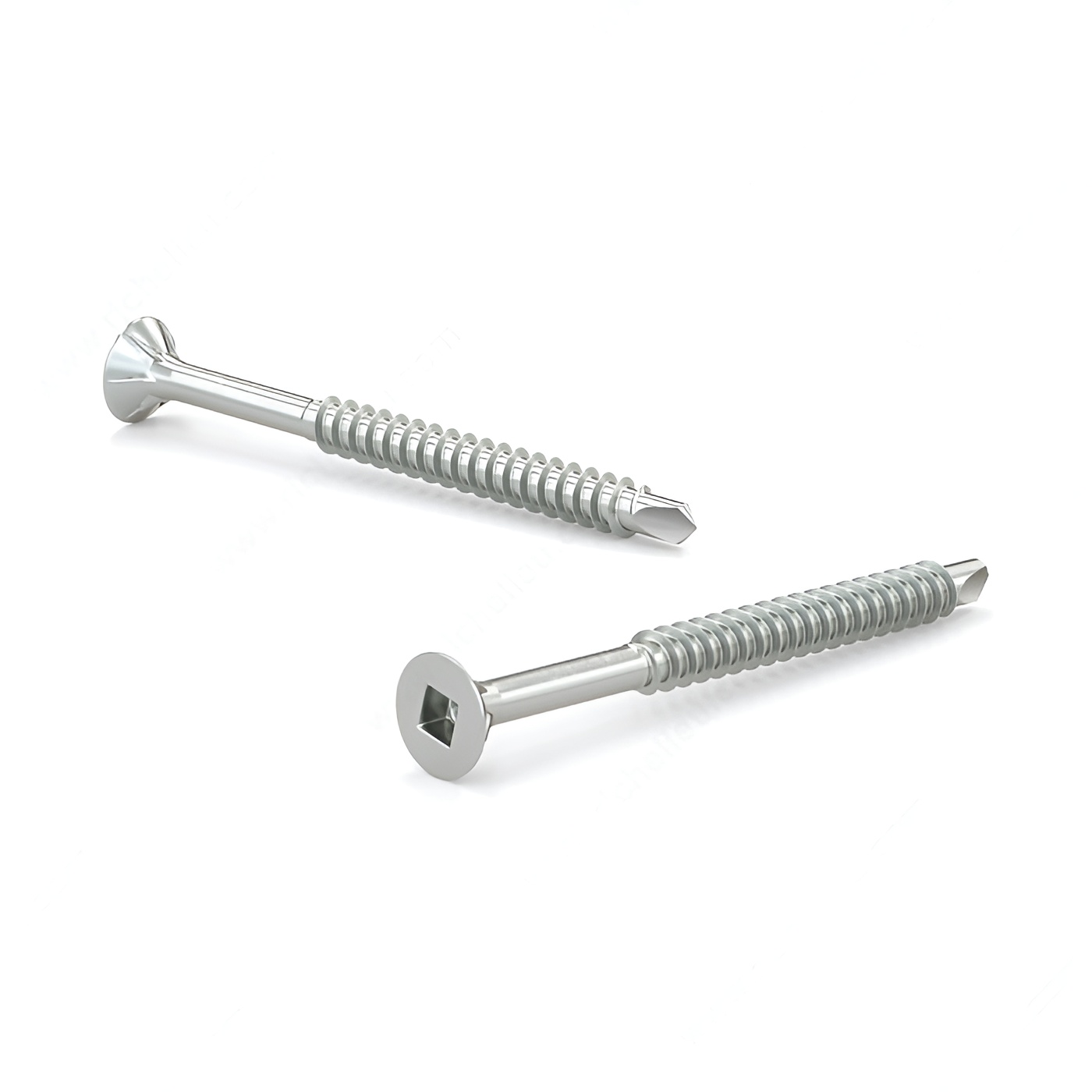 PREMIUM HYBRID Wood Screw, Flat Head with Nibs, Square Drive, Fine Thread, TEK Point