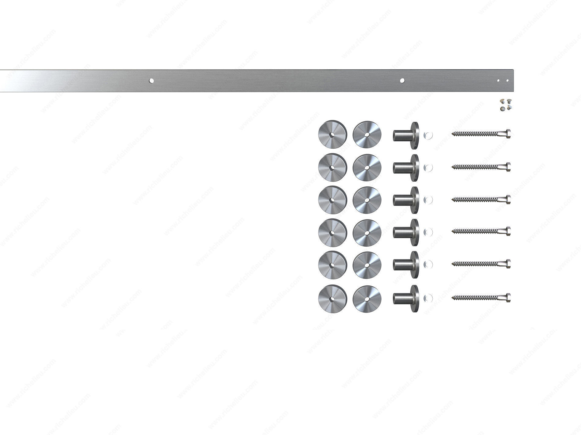 Richelieu 89TSQ133170 Pro Series Robuste Single Flat Track Set is designed to elevate your interior spaces with both style and functionality. This robust single flat track set accommodates doors with a minimum width of 36 inches and supports a maximum weight capacity of 220 pounds, making it suitable for various applications. The stainless steel finish not only enhances its aesthetic appeal but also ensures durability and resistance to wear. With an overall length of 98 3/8 inches, this set is perfect for doors ranging from 39 3/8 to 49 1/4 inches wide. The wall-mounted design simplifies installation, while pre-drilled holes facilitate a straightforward setup process. The inclusion of a soft-close mechanism enhances user experience by providing a smooth and quiet closure, although it is important to note that this feature requires a door width of at least 36 inches. Ideal for both building professionals and discerning homeowners, the Richelieu Pro Series Robuste Single Flat Track Set is a versatile solution for creating modern living spaces. Whether you’re renovating a home or tackling a new build, this track set combines practicality with contemporary design, ensuring your project meets the highest standards of quality and style.