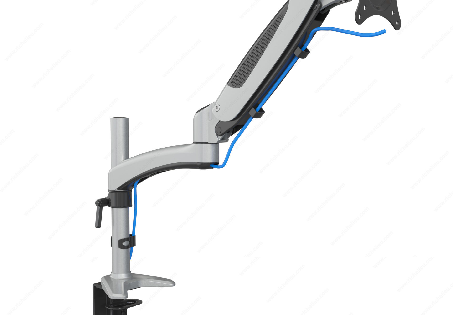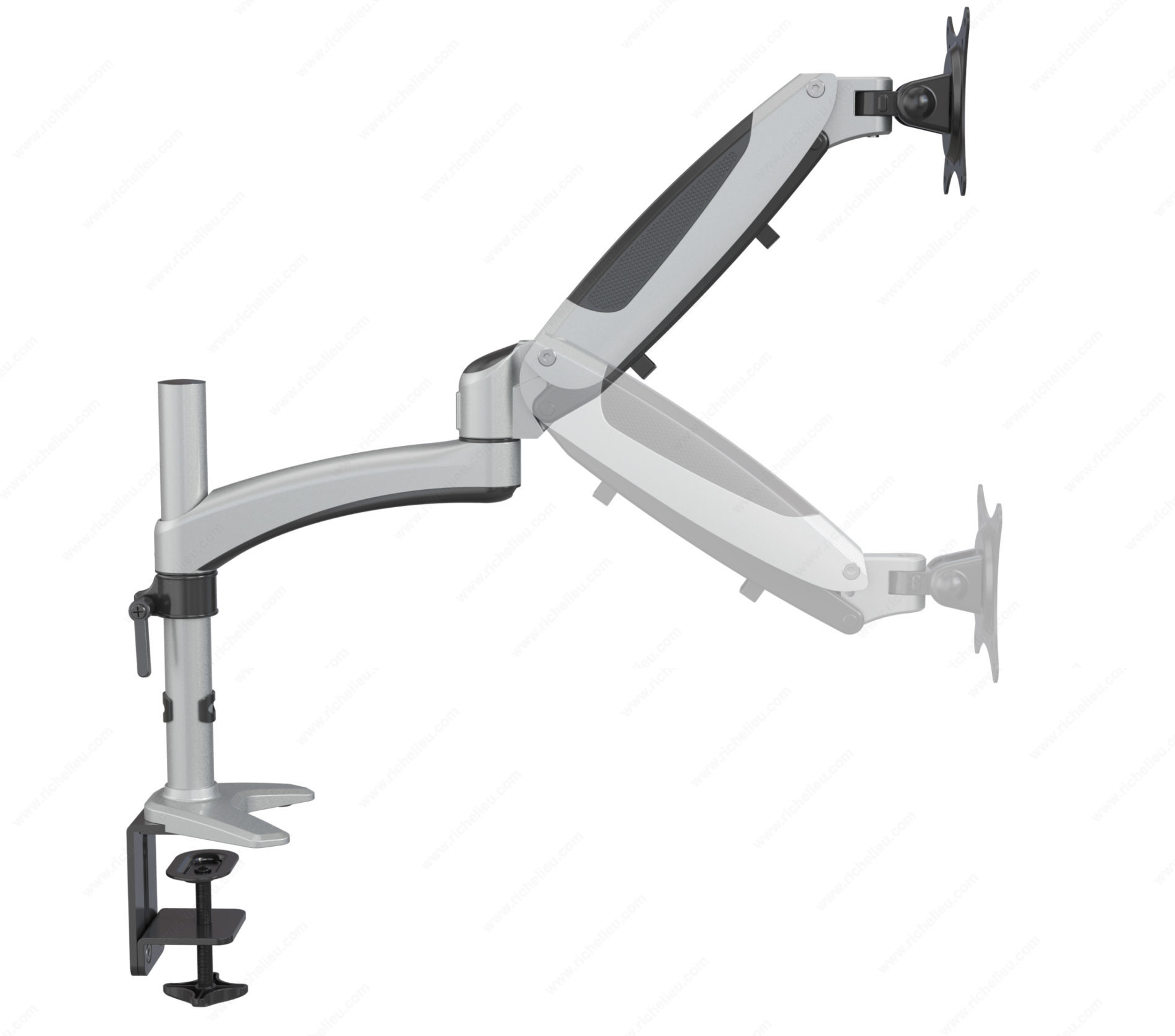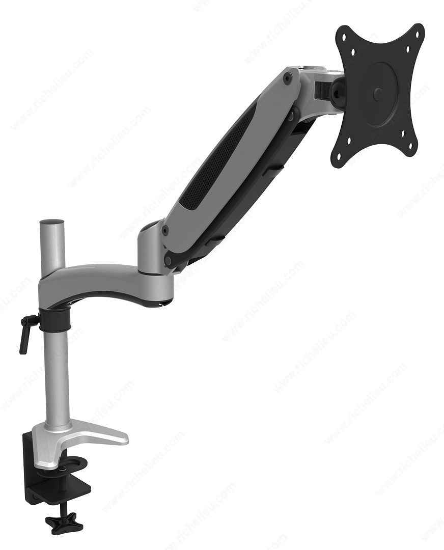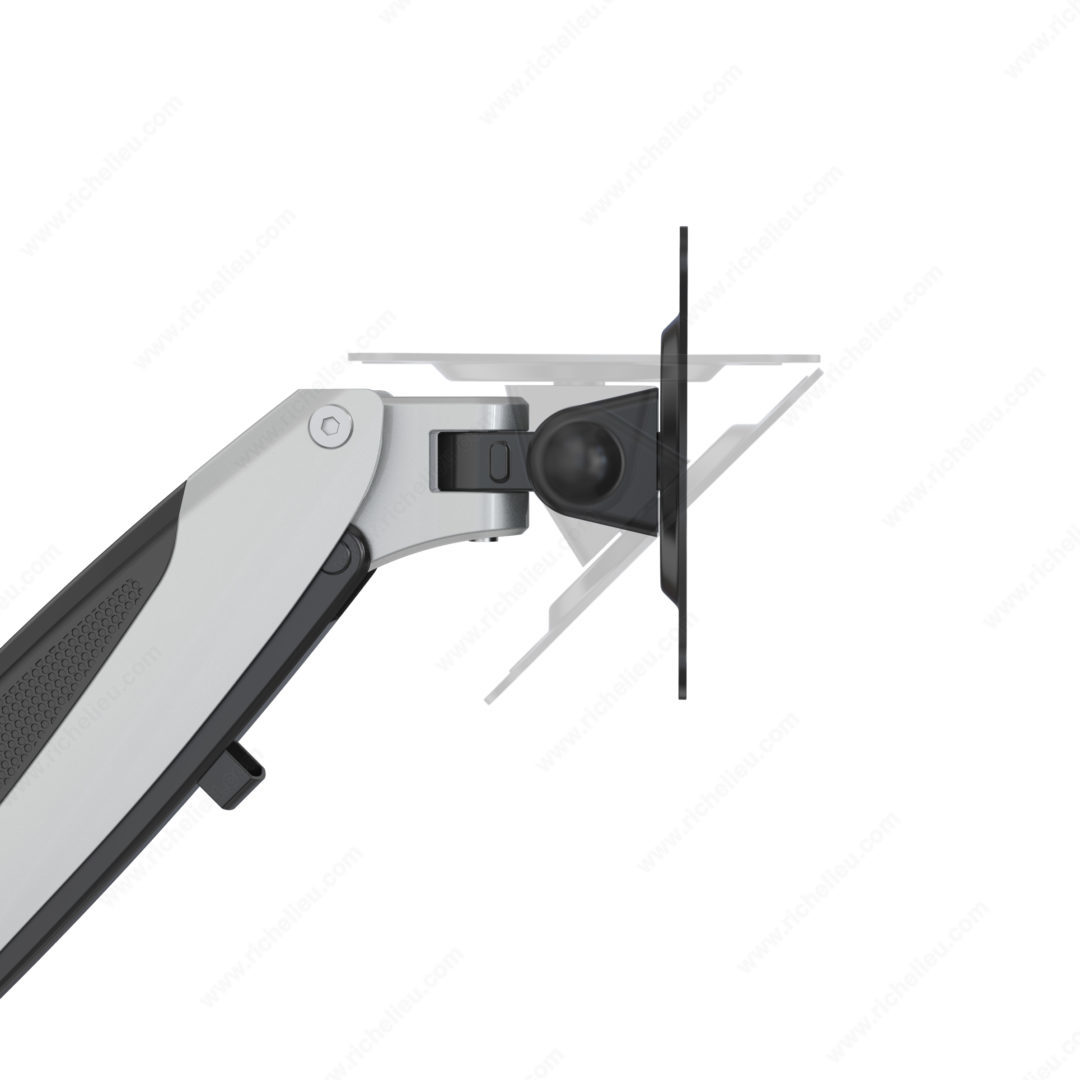 Richelieu 500FFL1100 Flexa Build Floating Monitor Arm is the ultimate solution for creating an organized and efficient workspace. Known for its versatility, the Flexa system features an articulated arm that allows for exceptional flexibility, accommodating various setups and environments. This monitor arm can effortlessly convert from a single monitor to a double or quad configuration by adding additional Flexa components, making it an ideal choice for any professional setting. Designed with functionality in mind, the monitor mount offers a swivel range of 90° to -90°, along with a tilt of 85° to -90° and a rotation of 180°, enabling users to customize their viewing angles. Constructed from a combination of aluminum, steel, and plastic, the Flexa monitor arm is both sturdy and lightweight, supporting monitors weighing between 6.6 to 13.2 lbs. With an overall height of 12.2 inches, a width of 5.8 inches, and adjustable depth ranging from 4.8 to 22.4 inches, this arm fits seamlessly into any desk setup. Mounting options include clamp or grommet mounts, providing added flexibility. Finished in a sleek silver, the Richelieu Flexa Build Floating Monitor Arm not only enhances functionality but also adds a modern touch to your workspace.