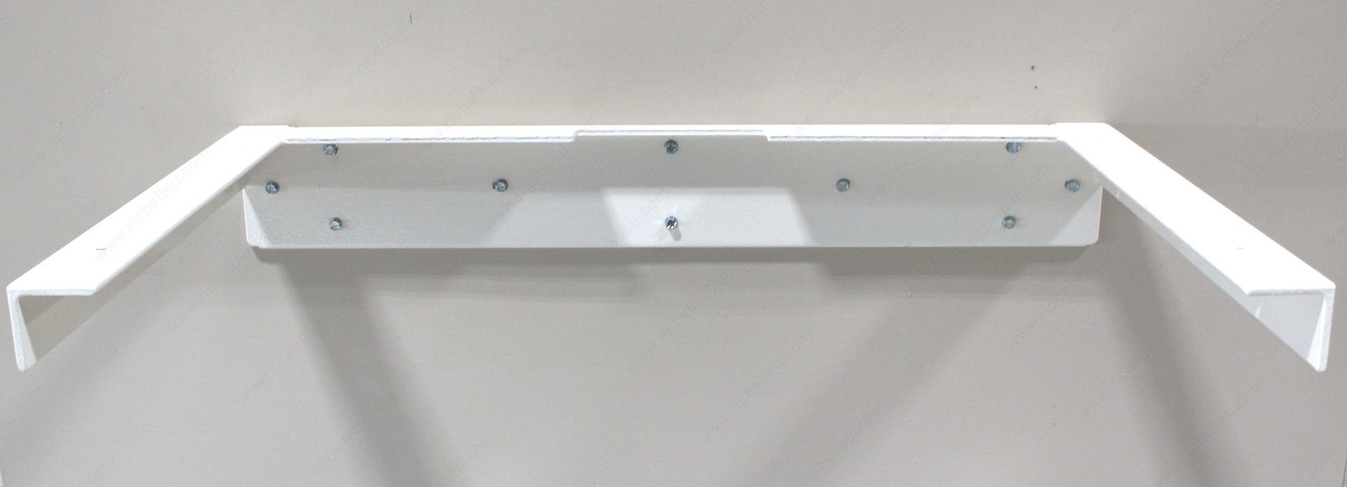 Richelieu 6240180090 Floating Vanity Bracket offers a robust solution for your vanity installation needs. Measuring 2 inches tall and 28 inches wide with a thickness of 1/4 inch, this bracket is designed to support a significant weight, boasting an impressive load limit of 1,100 pounds. This capacity makes it an excellent choice for heavy vanities, ensuring both durability and stability. Constructed from high-quality steel and finished with a sleek white powder coat, the bracket not only delivers strength but also complements modern aesthetics. The 18-inch arm projection provides ample support while maintaining a clean, floating appearance. To enhance stability, blocking across the back plate is recommended, allowing for a secure and reliable installation. Packaged individually, the Richelieu floating vanity bracket is designed for easy shipping, available via UPS for your convenience. With a shelf thickness of 1 inch, it accommodates a variety of vanity sizes and styles, making it a versatile option for both building professionals and discerning homeowners. Upgrade your space effortlessly with this essential hardware that combines functionality with modern design.