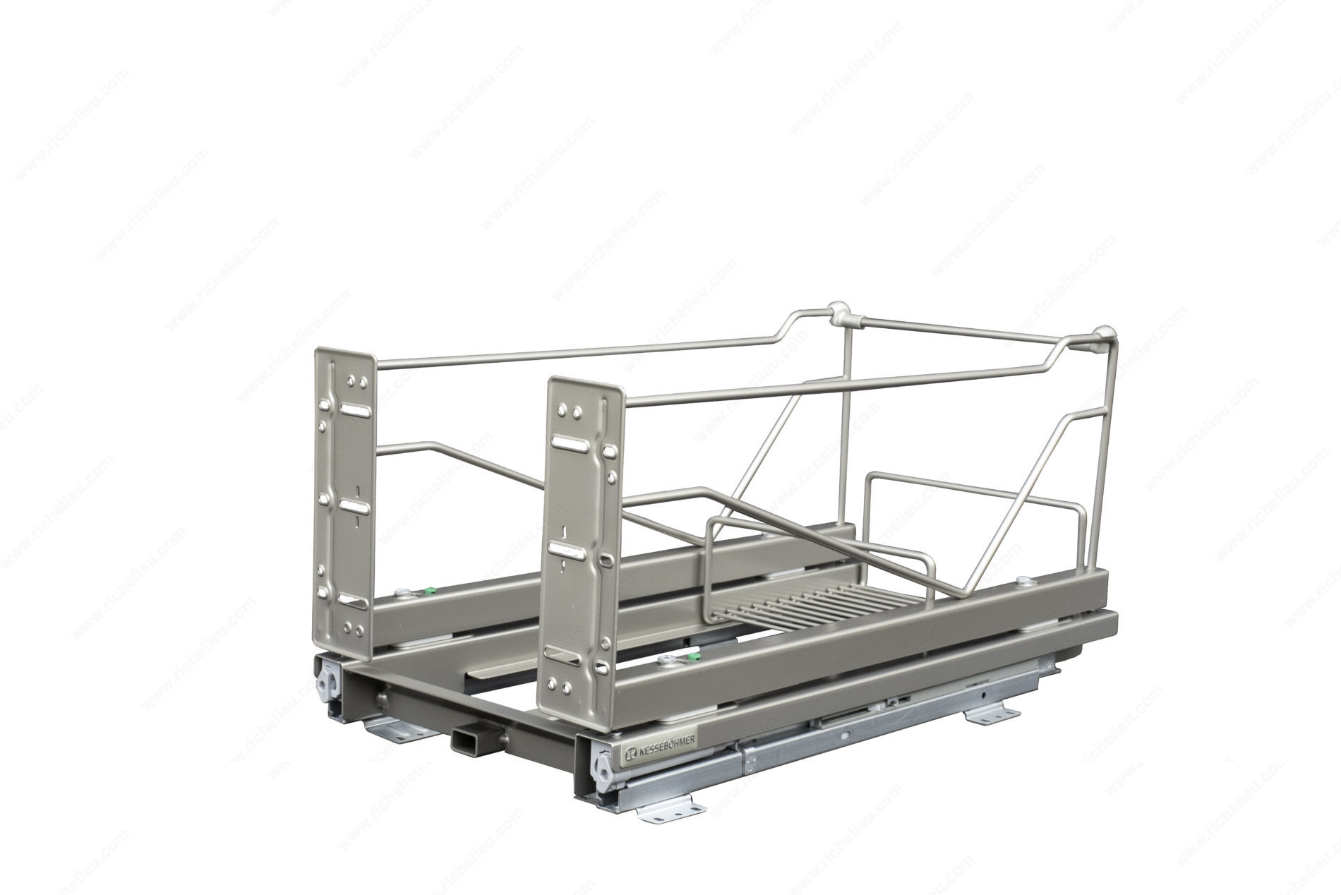 Richelieu 61010100 Narrow Frames for K-Waste Bin Model offer an efficient and stylish solution for waste management in your kitchen. Designed to seamlessly integrate with a push-to-open mechanism, this sliding frame ensures effortless access to your waste bins. The bottom-mount system is available in both single and double bin configurations, allowing for versatile organization tailored to your specific needs. Constructed from durable metal, the frame boasts a robust load rating of 100 lbs, ensuring it can handle your waste management demands with ease. With a Silver Gray finish, it adds a modern touch to any cabinetry while maintaining a clean aesthetic. The frame requires a minimum interior width of 12 1/2 inches for frameless cabinets and a minimum opening of 11 1/2 inches for framed cabinets, making it adaptable for various installations. This model is designed for one bin, which can be equipped with either a 34 L (36 qt) or 49 L (52 qt) bin, available in classic white or gray. The added Soft-Motion system enhances usability, providing a smooth and quiet operation. Upgrade your kitchen with the Richelieu 61010100 Narrow Frames and enjoy a clutter-free, organized space.