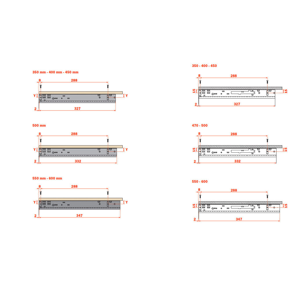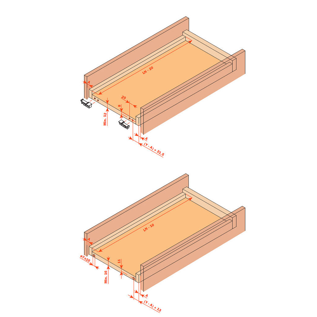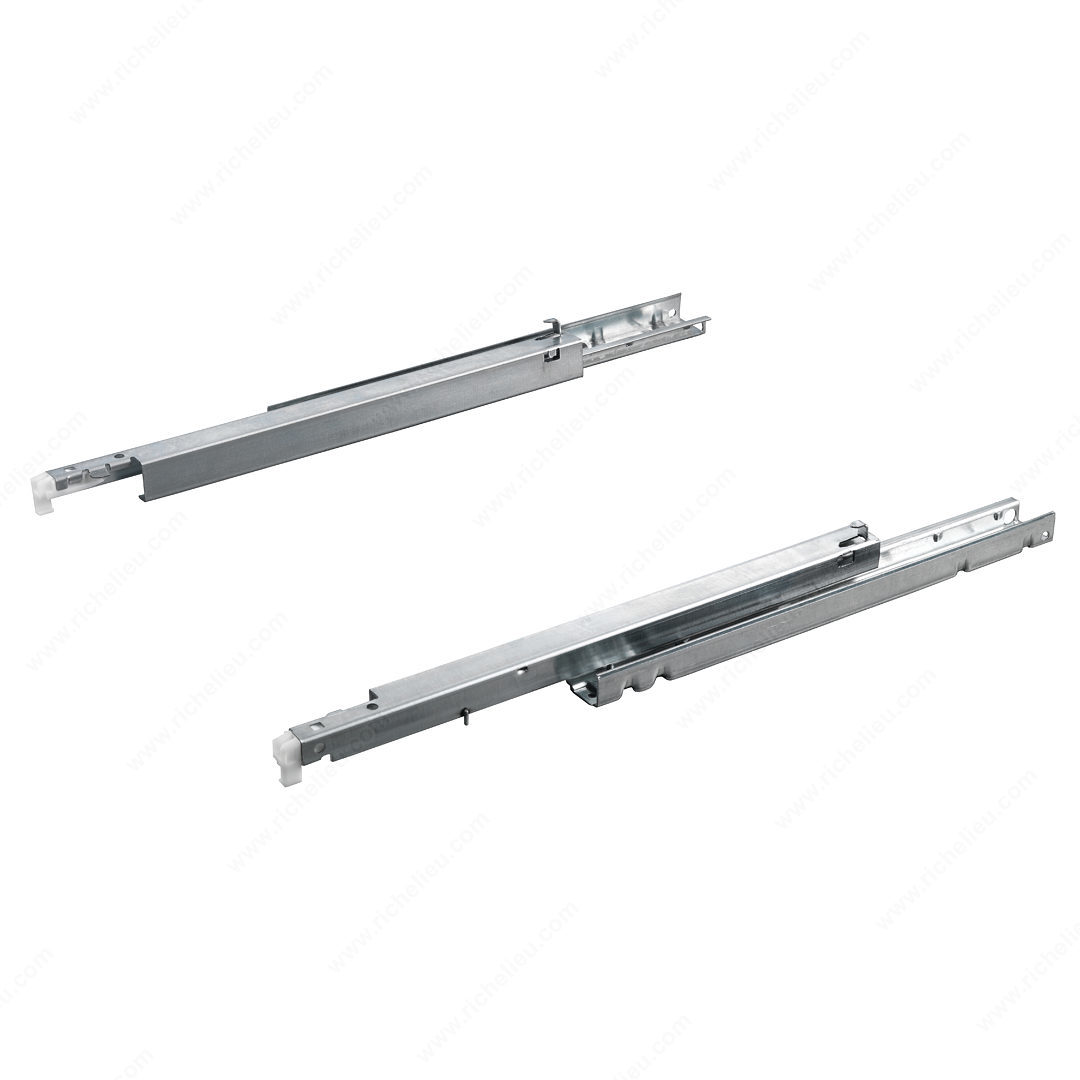 Richelieu A6555950 FUTURA Slide with Soft-Close for Sliding Shelf - Full Extension Concealed Undermount offers a seamless solution for enhancing accessibility in various settings, including kitchens, living rooms, and offices. This innovative runner features a soft-close mechanism that ensures shelves glide smoothly and quietly, minimizing noise and wear over time. Constructed for both wood and melamine drawers, the FUTURA Slide is designed with a robust load capacity of 75 lbs, making it ideal for storing heavier items without compromising performance. The full extension design allows users to fully access the contents of the shelves, eliminating the hassle of reaching into deep spaces. With a length of 19 5/8 inches, this undermount slide is easy to install and provides a clean, concealed look that enhances the overall aesthetic of your cabinetry. Finished in durable zinc, it promises longevity and resistance to wear. Whether you're outfitting a new kitchen or upgrading existing cabinetry, the Richelieu FUTURA Slide is an excellent choice for professionals and homeowners alike, blending functionality with style. Experience the convenience of easy access and the reliability of Richelieu’s engineering with the A6555950 model.
