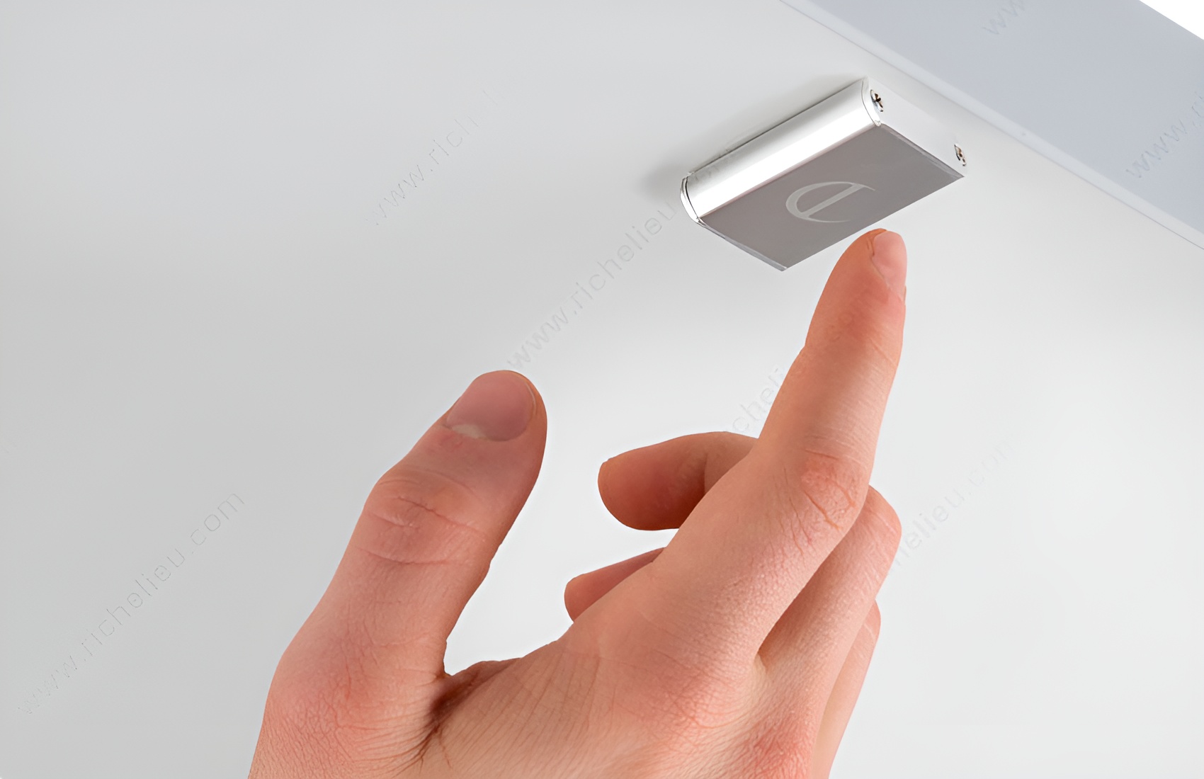 Richelieu 12624905 FW DOT Touch Dimmer for 12 V and 24 V offers a sleek and intuitive solution for controlling lighting in your space. Designed for both 12 V and 24 V systems, this touch dimmer switch allows you to adjust the brightness of your lights with a simple touch, enhancing your control over the ambiance. Its surface mount design makes installation straightforward, fitting seamlessly into contemporary environments. Crafted from durable aluminum, the dimmer combines functionality with a modern aesthetic. With dimensions of 1 1/2 inches in length, 1 7/32 inches in width, and a height of just 11/32 inches, it occupies minimal space while delivering maximum performance. The touch operation further simplifies usage, making it an ideal choice for both building professionals and discerning homeowners. This product's rectangular shape and contemporary style ensure that it complements a variety of interior designs. Whether you are enhancing a residential project or outfitting a commercial space, the Richelieu touch dimmer is a reliable choice that blends style and practicality. Experience effortless lighting control and elevate your design with the Richelieu 12624905 FW DOT Touch Dimmer.
