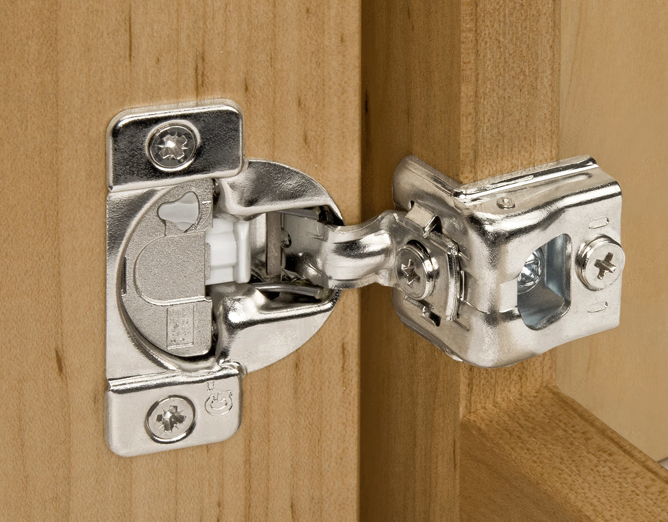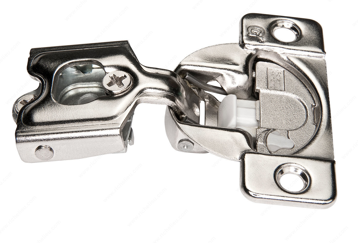 Richelieu GR864SC31WVS8 TEC 42 mm Soft-Close Wrap-Around Hinge offers a groundbreaking solution for modern cabinetry with its innovative soft-closing mechanism. Designed specifically for face frame cabinets, this hinge ensures a seamless and quiet closing action, enhancing both functionality and aesthetics in your kitchen or living space. With a 42 mm spread from dowel to dowel and a door overlay of 1-1/4", this hinge accommodates a variety of cabinet styles while providing a sturdy and reliable connection. Its soft-closing feature not only prevents slamming but also prolongs the life of your cabinetry, making it an ideal choice for high-traffic areas. The hinge opens to an impressive angle of +108°, allowing for easy access to cabinet interiors. Installation is made simple with a dowel fixing type, and the precise milling specifications-7/16 in depth and 1 3/8 in diameter-ensure a perfect fit. Designed by Grass, a trusted name in hardware, the Richelieu GR864SC31WVS8 hinge is a high-quality choice that combines advanced engineering with user-friendly operation. Experience the difference that this state-of-the-art hinge can make in your cabinetry projects.