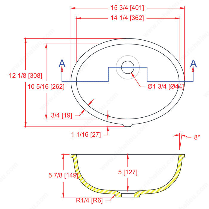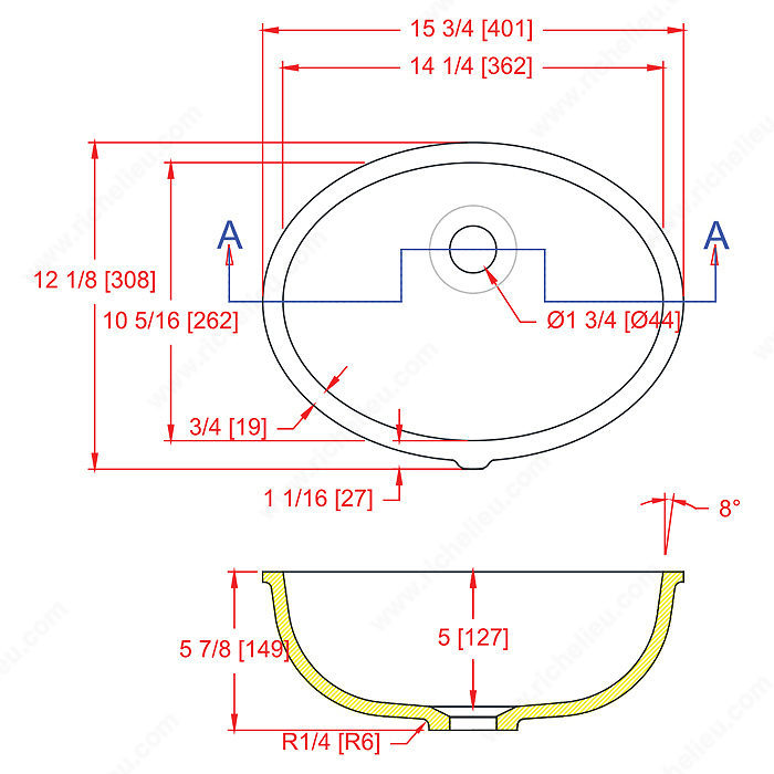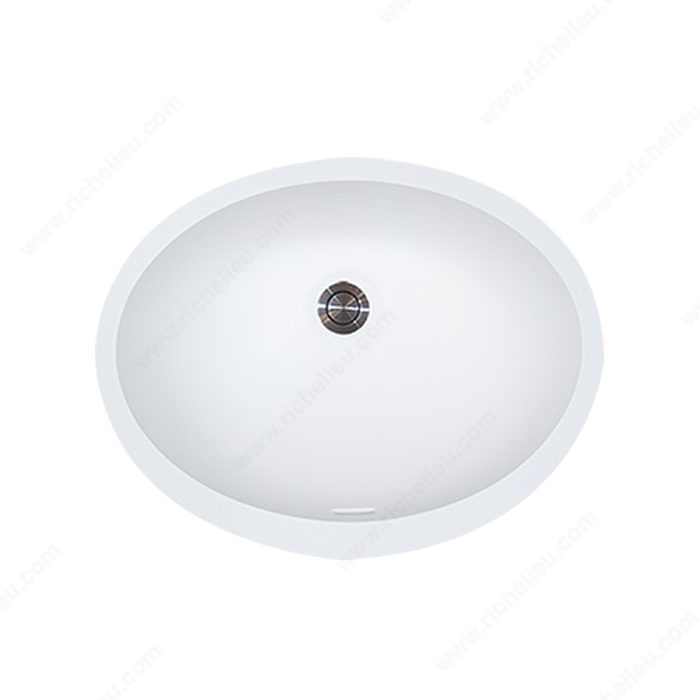 Richelieu GS1410VOCR Gemstone Sink - Oval 1410 is a stunning addition to any vanity, combining elegance with functionality. This undermount washbasin features a graceful oval shape and a smooth cream finish that complements a variety of bathroom styles. Measuring 15 7/8 inches in width and 12 1/8 inches in depth, it offers ample space for daily washing routines while maintaining a sleek profile. Designed with a depth of 7 inches in the basin, the GS1410VOCR allows for comfortable use without compromising on style. Its built-in overflow feature ensures both safety and convenience, preventing any potential water spillage. Crafted for solid surfaces, this sink seamlessly integrates into your countertop, providing a polished and sophisticated look. The GS1410VOCR is certified with cULus standards, ensuring high-quality manufacturing and safety. Please note that the drain strainer is sold separately, allowing you to choose the perfect match for your design. With the option to ship via UPS, this sink is accessible for professionals and homeowners alike, making it a practical choice for your next renovation project. Elevate your bathroom space with Richelieu’s exceptional craftsmanship and style.