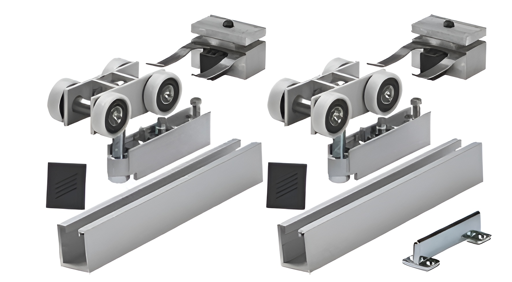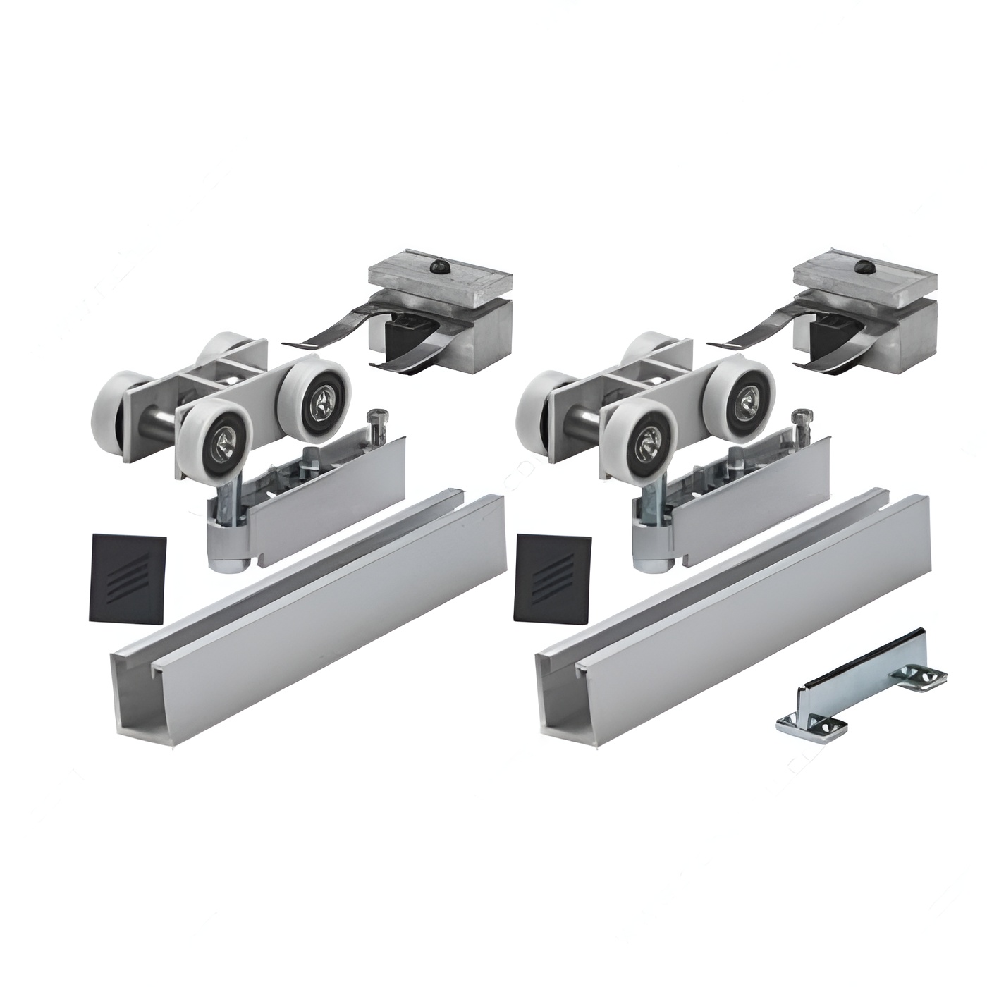 The Grant TopLine Low Profile XHD hardware set is designed for one (1) wood door weighing up to 500 lb (147 kg), and at least 1 3/8 in (35 mm) thick.