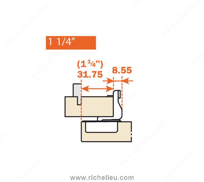 Richelieu H106CSR3A99N Series S Concealed Hinges offer a seamless solution for enhancing your cabinetry with their sleek design and reliable functionality. Designed specifically for face frame cabinet types, these hinges support full overlay doors, providing a clean and modern aesthetic. With a drilling distance of 3/32 inches, installation is precise and straightforward. The nickel finish not only adds a touch of sophistication but also ensures durability and resistance to wear. These hinges feature a spring closing mechanism, which allows for smooth and effortless door operation, making them an excellent choice for standard doors. With an impressive hinge opening angle of +106°, they provide ample access while maintaining optimal space efficiency. Capable of supporting loads up to 10 pounds, the Richelieu H106CSR3A99N hinges are engineered for longevity and performance, making them suitable for both residential and commercial applications. The overlay measurement of 1 1/4 inches enhances their versatility, and the dowel fixing type ensures a secure attachment. Please note that screws or nails are not included, allowing for customization based on your specific needs. With stock availability, these hinges can ship via UPS, making them a convenient choice for your next project.