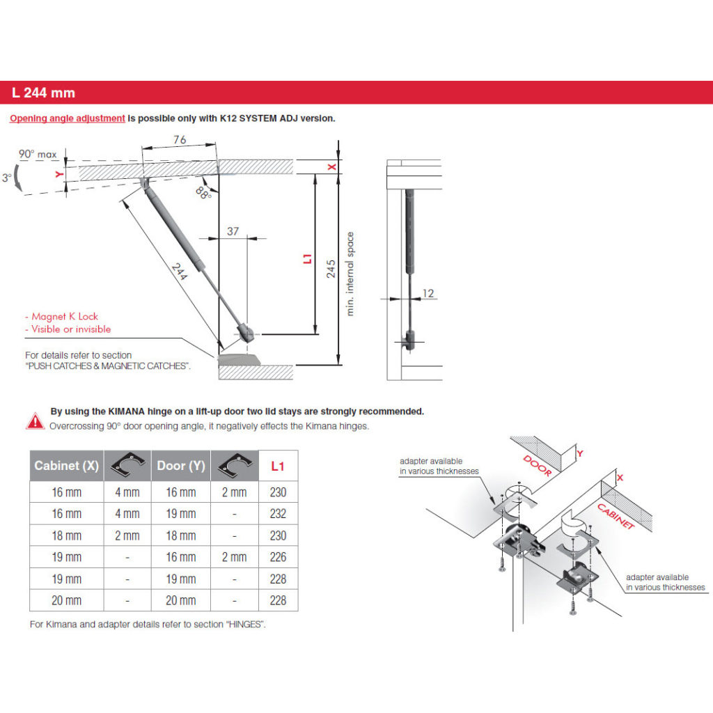 Richelieu 244160185 K12 Arms for Lift-Up Opening offer a revolutionary solution for enhancing the functionality of flap doors. Designed with convenience in mind, this pneumatic suspension arm facilitates smooth lift-up openings, making it an ideal choice for various applications. The K12 arm is compatible with standard automatic drilling processes, ensuring straightforward installation on solid doors or wider aluminum door frames. With a robust force capacity of 36 lbs (160 Newtons), this arm efficiently supports the weight of heavy doors while maintaining stability and ease of operation. Measuring 9 19/32 inches in length, the K12 arm is engineered to provide optimal performance without compromising on space. Its innovative design not only improves access to your cabinets and storage areas but also enhances the overall aesthetic of your space. Ideal for both building professionals and knowledgeable homeowners, the Richelieu K12 Arms for Lift-Up Opening seamlessly blend functionality with style. Whether you are upgrading your kitchen or optimizing a storage solution, this product delivers reliability and efficiency. Plus, it ships conveniently via UPS, ensuring you receive it swiftly for your next project. Choose the K12 arm and experience the difference in your lift-up door operations.