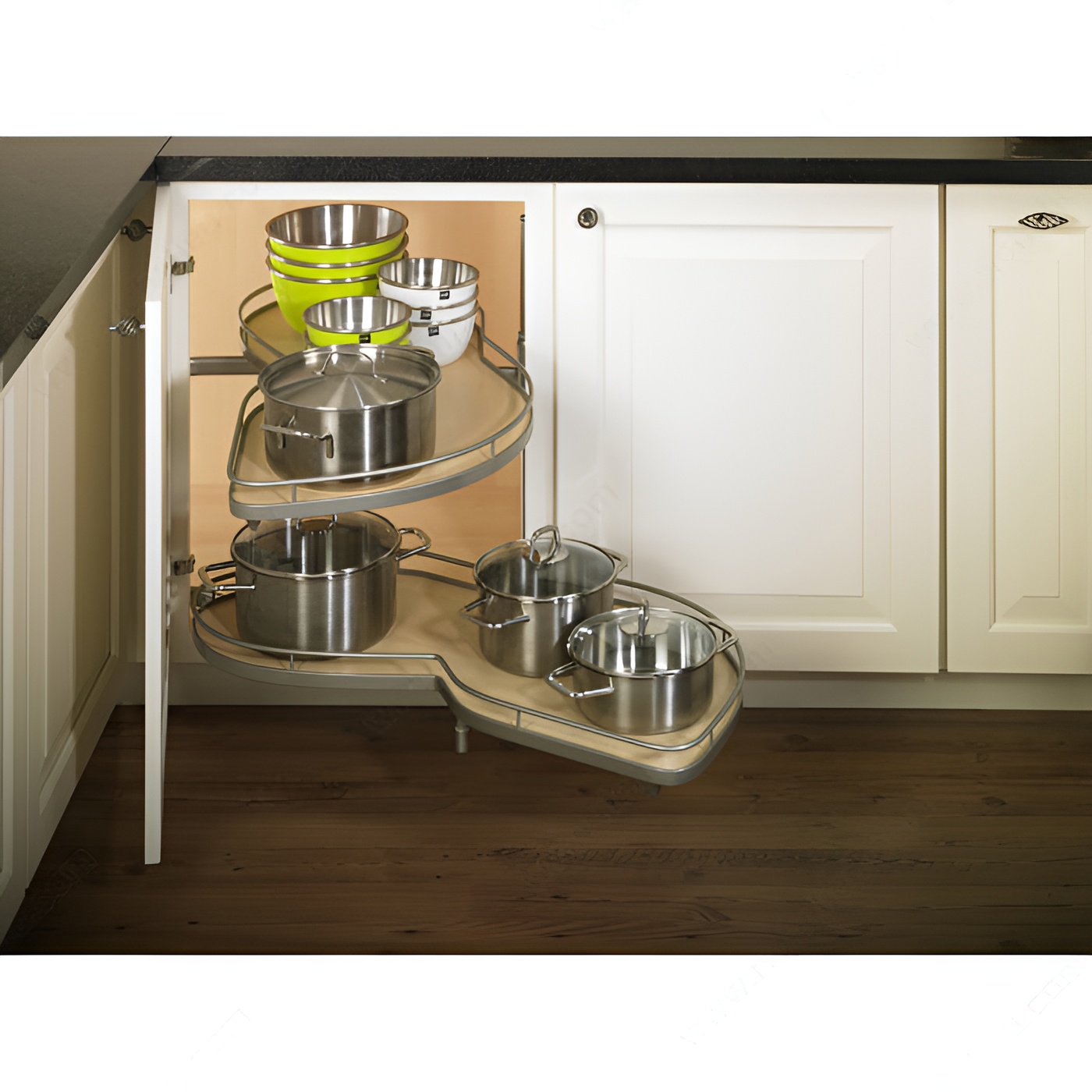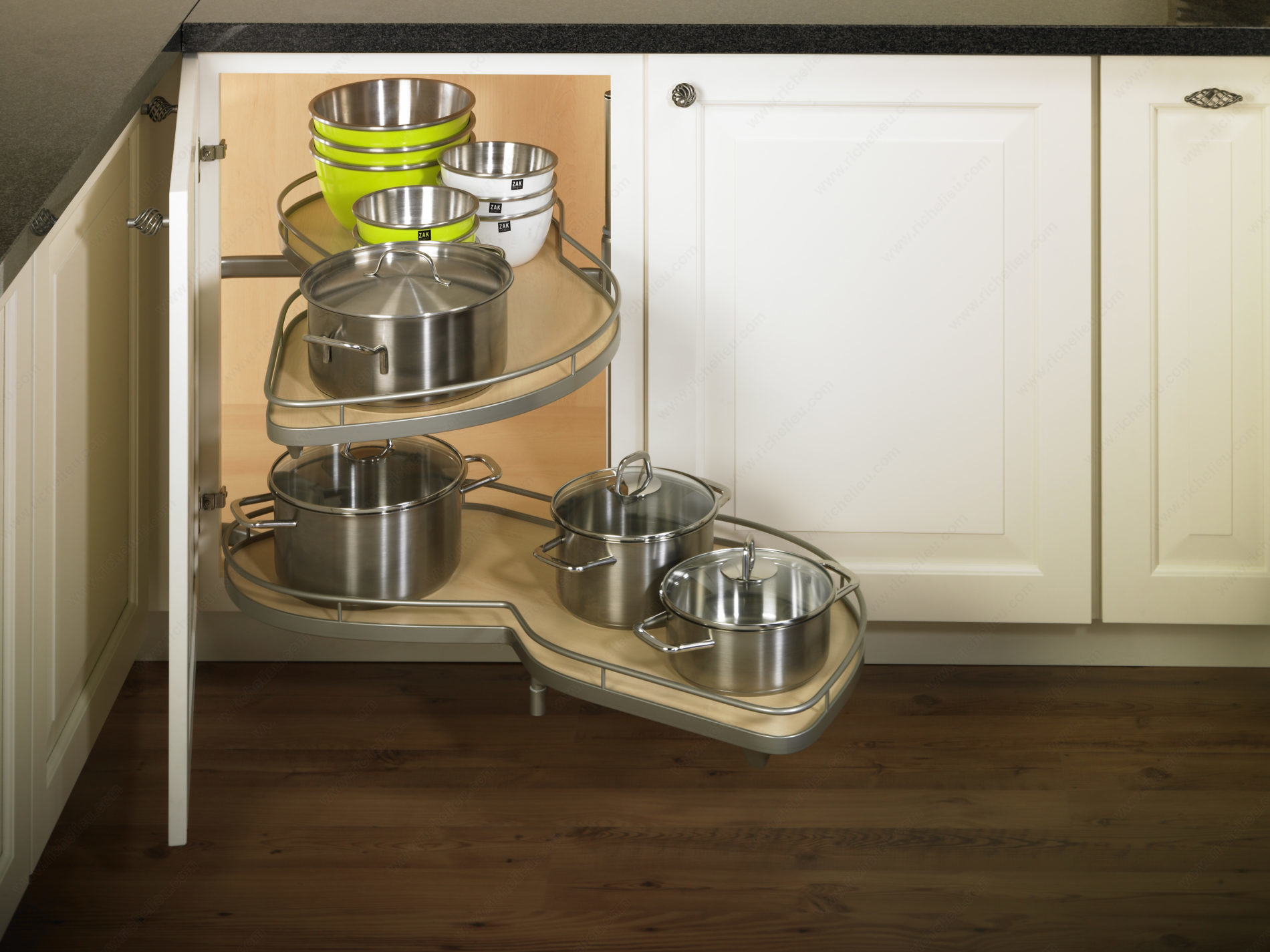 Richelieu WEBKIT1216809 LeMans II System with Soft-Close Mechanism offers an innovative solution for maximizing kitchen storage while ensuring effortless access to your items. Designed for a door width of 15 3/4 inches, this system features a stunning champagne/maple finish that enhances the aesthetic appeal of any kitchen space. The LeMans II system requires a minimum interior depth of 19 5/8 inches, a height of 21 1/2 inches, and a width of at least 30 3/4 inches, making it versatile for various cabinet configurations. This model is ideal for right-opening cabinets and boasts a robust weight capacity of 55.1 pounds per shelf, providing ample support for your kitchen essentials. With its soft-close mechanism, the LeMans II system ensures a smooth, quiet closing, reducing wear on both the cabinet and the door over time. The required opening frame measures 14 inches for framed cabinets and 14 1/4 inches for frameless ones. Shipped via UPS, the Richelieu WEBKIT1216809 is an excellent choice for building professionals and discerning homeowners seeking high-quality, functional storage solutions that combine style and practicality. Upgrade your kitchen with this exceptional system and enjoy the benefits of streamlined organization.