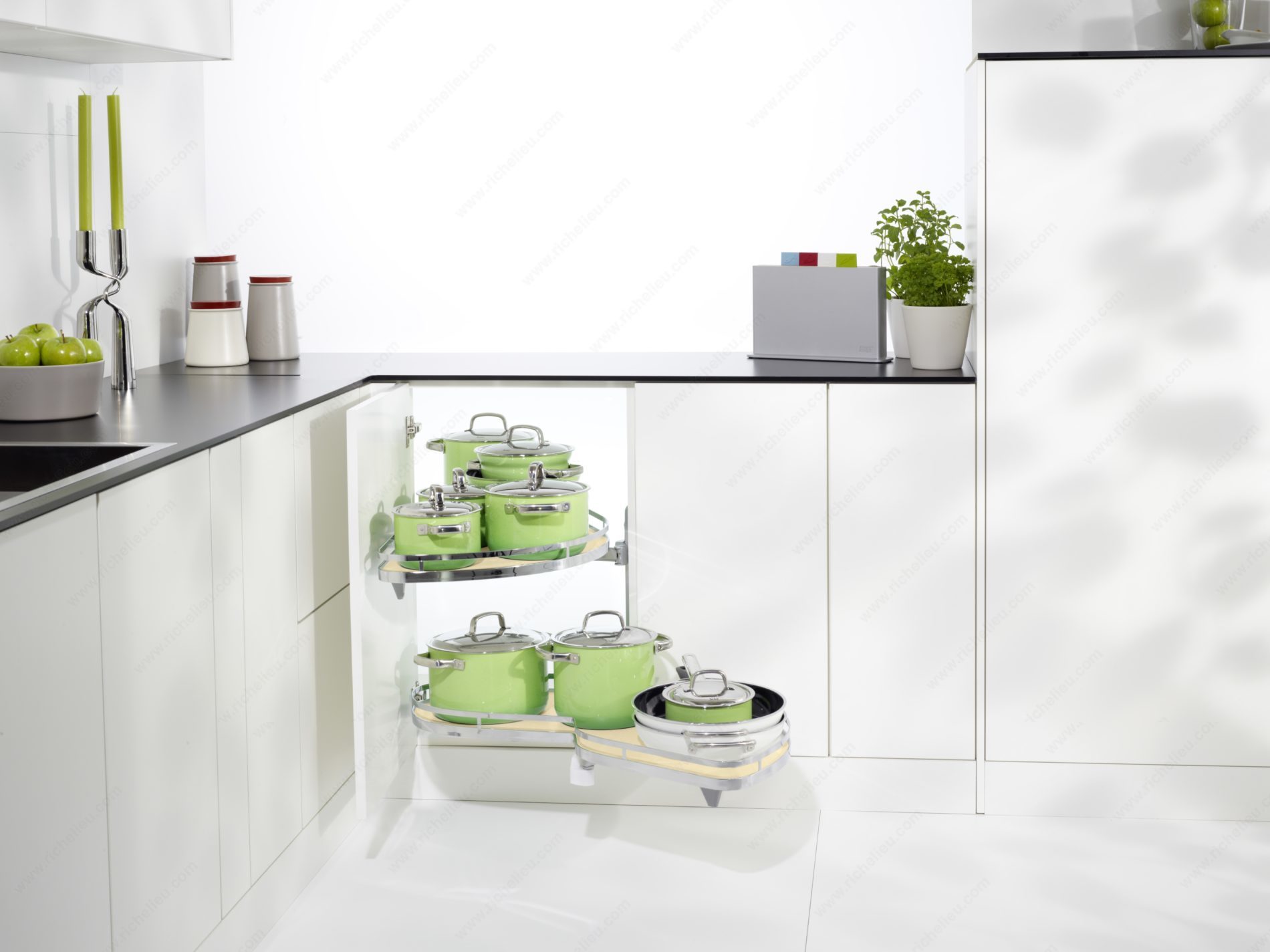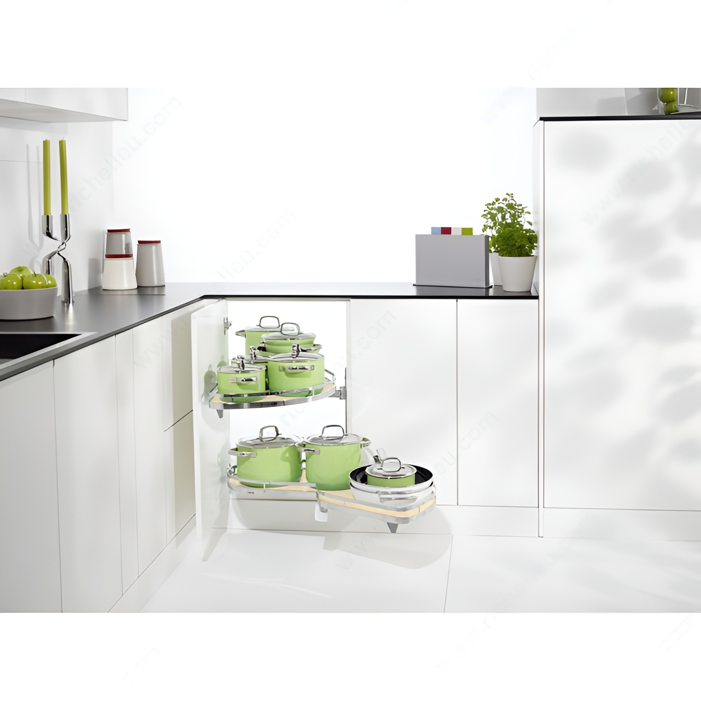 Richelieu 6936140150 LeMans II System without Soft-Close Mechanism is an innovative pivoting tray system designed specifically for corner cabinets, maximizing storage efficiency in kitchens. This product facilitates easy access to food storage and preparation items, making your kitchen more organized and functional. Crafted with a stylish maple and chrome finish, this system not only enhances aesthetics but also ensures durability. The required opening for a framed cabinet is a minimum of 14 inches, while for frameless cabinets, it requires at least 14 1/4 inches. With a door width of 15 3/4 inches, it’s tailored to fit seamlessly into your space. The interior dimensions needed are a depth of 19 5/8 inches, a minimum height of 21 1/2 inches, and a minimum width of 30 3/4 inches. Each shelf can accommodate up to 55.1 pounds, providing ample support for your kitchen essentials. The opening direction is to the right, enhancing accessibility. Packaged conveniently in a box, the LeMans II System is easy to handle and ship via UPS. Elevate your kitchen's functionality and style with this smart corner cabinet solution from Richelieu.