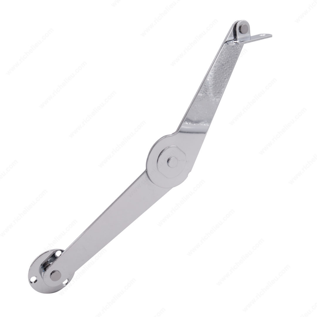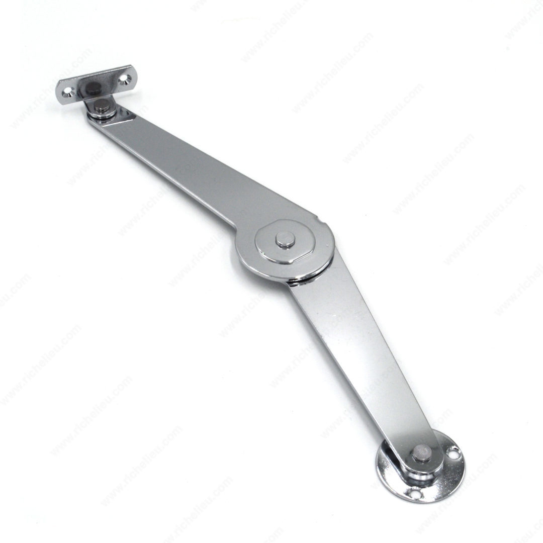 Richelieu 752002140 Lid Stay with Catch for Toy Chest offers a seamless solution for managing lightweight doors, making it an ideal choice for toy chests and similar applications. This lid stay features a reliable ball catch that automatically holds the lid in an open position, ensuring safety and convenience during use. It can be installed individually or in pairs, allowing for flexibility based on your project's needs. Crafted from durable steel and brass, the 752002140 combines functionality with a sleek chrome finish, enhancing the aesthetic appeal of any space. Measuring 8 17/32 inches in length, this lid stay is designed to accommodate various toy chest sizes while providing optimal performance. The product meets RoHS standards and certifications, ensuring that it adheres to environmental and safety regulations. Whether you're a building professional or a knowledgeable homeowner, this lid stay is an essential addition to your cabinetry hardware. With its straightforward installation and dependable operation, the Richelieu 752002140 Lid Stay with Catch is perfect for creating a safe and user-friendly environment for children. Upgrade your toy storage solutions effortlessly with this high-quality hardware piece from Richelieu.