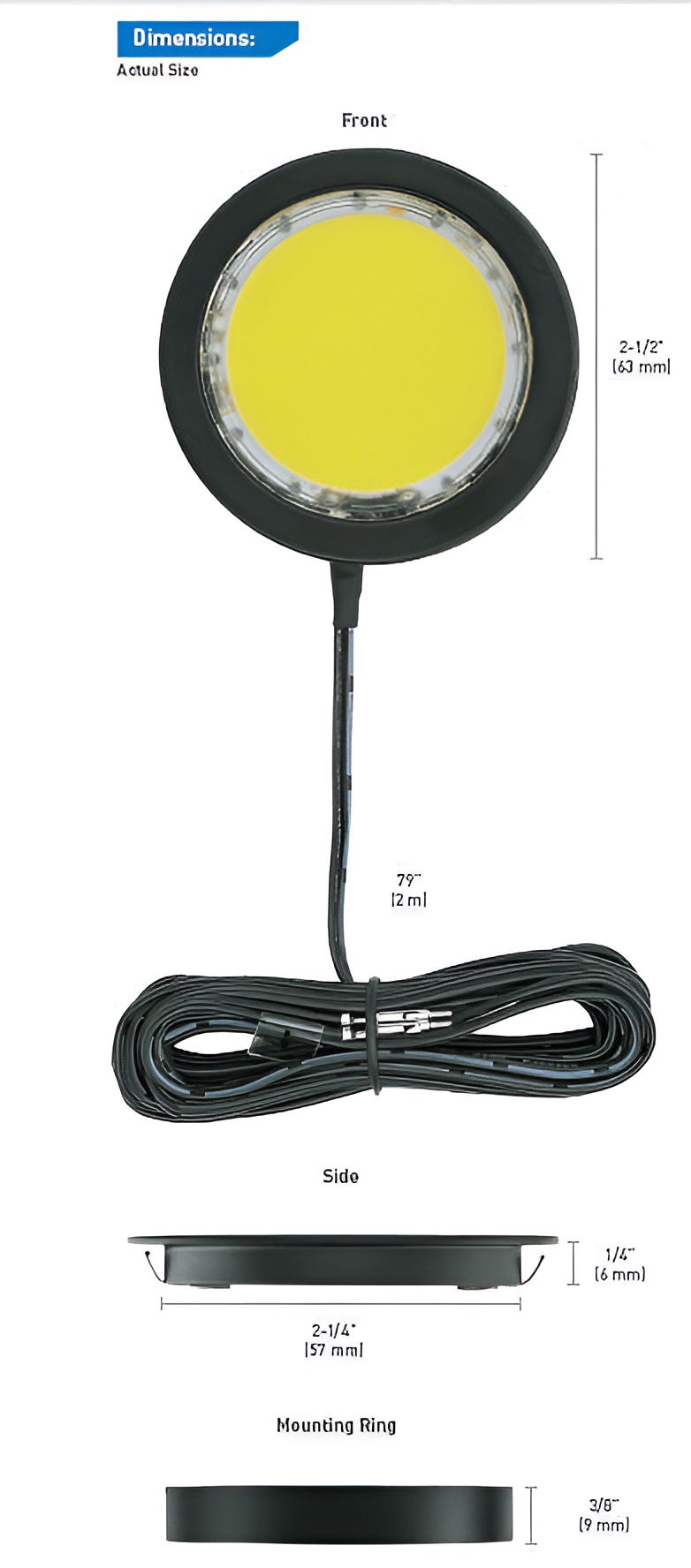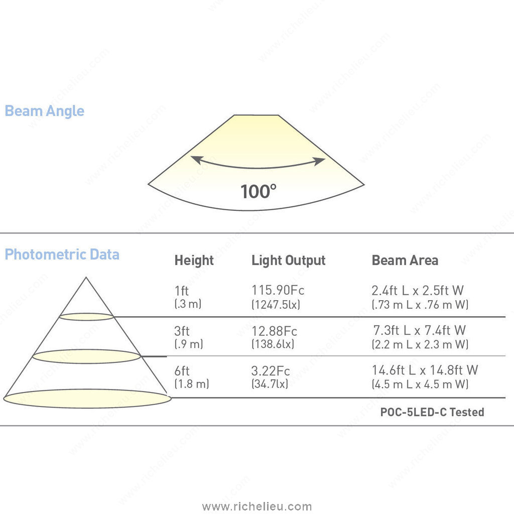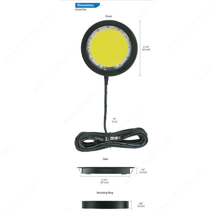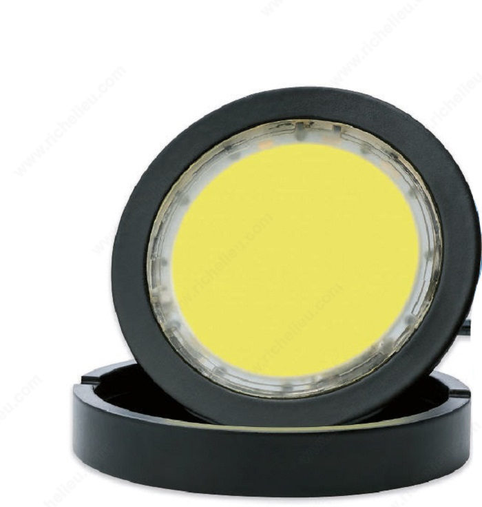 Richelieu LPOC5LEDSCLWWH Power Pockit 5W is the next generation of under-cabinet lighting, boasting an impressive brightness that is 2.5 times greater than the original 3W version. This innovative puck light utilizes Luniform technology, delivering a uniform light output of 290 lumens, effectively eliminating the dotted appearance often associated with traditional lighting. With a mere 1/4" (6 mm) depth, the Power Pockit® 5W stands out as the slimmest, high-output puck light available on the market. Designed for versatility, this fixture is perfect for a variety of applications, including kitchens, living rooms, commercial spaces, and furniture. It features a warm white light color at a Kelvin temperature of 3000 K, creating a welcoming ambiance. The recessed or surface mounting options provide flexibility, while the UL certification ensures adherence to safety standards. With a bore hole size of 2 1/4 inches and a sleek contemporary style, the Power Pockit® 5W seamlessly integrates into any decor. Operating at 12 volts and consuming just 5 watts, this LED light is both energy-efficient and effective, making it an ideal choice for accent and task lighting. Elevate your lighting solution with the Richelieu Power Pockit 5W, where performance meets elegance.