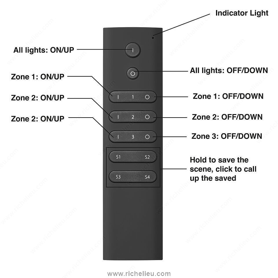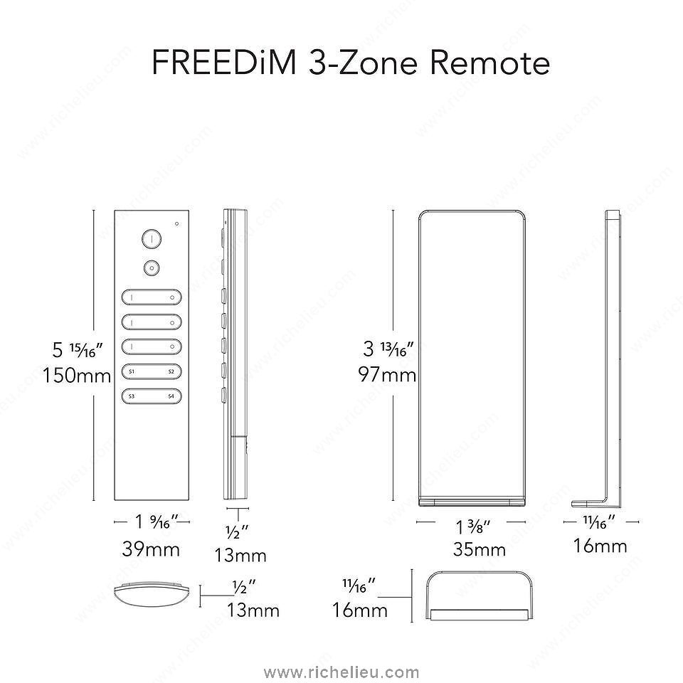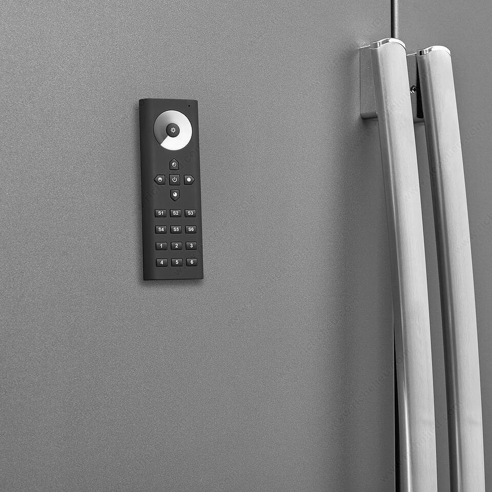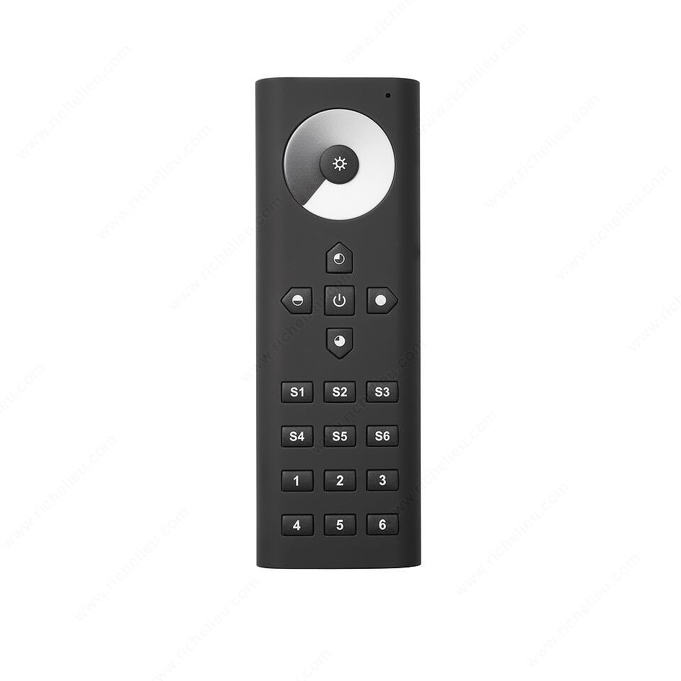 Richelieu LWLD3RMTBL TRESCO FREEDiM Series 3 6 Zone Remotes empower you to seamlessly manage multiple lighting zones with a single, sophisticated device. Designed for convenience, these remotes allow you to set and store ambiance levels as personalized scenes, which can be easily recalled at the touch of a button. No more juggling multiple remotes; this streamlined solution enhances both functionality and ease of use. The remotes operate via a reliable RF control system, ensuring responsive performance with every command. With a sleek black finish, they blend effortlessly into any décor, while the compact dimensions (5 29/32 in length and 1/2 in height) make them unobtrusive yet accessible. The surface-mounted design ensures straightforward installation, making it an ideal choice for both building professionals and knowledgeable homeowners. Equipped with infrared sensor technology, the LWLD3RMTBL is capable of operating at a tension of 12 V, providing a stable and efficient power supply. Elevate your lighting experience and create the perfect atmosphere in any space with Richelieu’s innovative FREEDiM Series remotes, where functionality meets style.