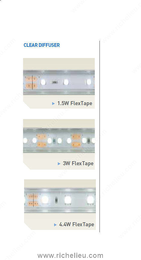 Richelieu LX72DIFFCL10 TRESCO Infinex Diffuser offers a seamless solution for enhancing LED lighting applications. Designed with both functionality and aesthetics in mind, this diffuser features clear and frosted options that easily snap on and off, making installation and maintenance a breeze. The innovative diode blending film available for clear diffusers helps to create a soft, even light distribution, minimizing hotspots and enhancing the overall ambiance of your space. With a length of 72 inches and a height of just 3/16 inch, this diffuser is ideal for a variety of settings, from residential to commercial applications. The clear finish allows for maximum light transmission while still providing a polished look that complements any design scheme. Crafted for use with LED lighting, the LX72DIFFCL10 is not only energy-efficient but also helps to extend the lifespan of your lighting system by diffusing light effectively. Additionally, it ships conveniently via UPS, ensuring that you receive your product quickly and reliably. Whether you are updating a kitchen, office, or retail environment, Richelieu’s Infinex Diffuser will elevate your lighting design while providing ease of use and versatility.
