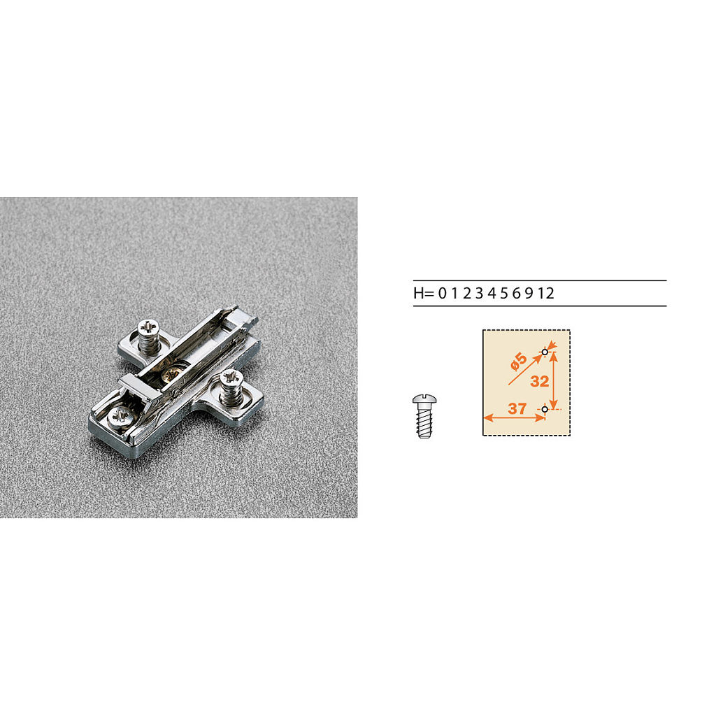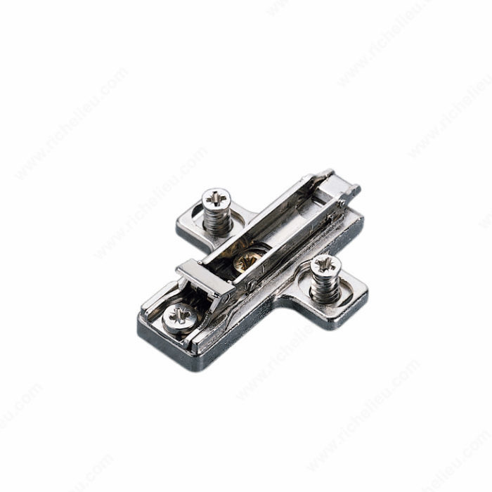 Richelieu H00BARGL0916 Cruciform 2 Cam - Domi Mounting Plates offer a reliable solution for various hinge applications, specifically designed to accommodate 100, 200, 400, F, and M Series hinges, as well as universal and Silentia+ hinges. Measuring 37 x 32 mm for drilling, these mounting plates ensure a precise fit and easy installation. Crafted from durable steel with a sleek nickel finish, the H00BARGL0916 plates combine both strength and aesthetic appeal, making them a perfect choice for modern cabinetry. The depth and height adjustments are conveniently managed by a cam mechanism, allowing for enhanced customization during installation. This feature is especially valuable in achieving optimal door alignment and function. Additionally, the clip-on attachment method simplifies the mounting process, while the pre-mounted Euro screws provide added convenience and efficiency. With a plate height of 0 mm, these mounting plates seamlessly integrate into your cabinetry without additional bulk. Richelieu's commitment to quality ensures that these plates are in stock and ready to ship via UPS, making them an excellent choice for building professionals and discerning homeowners alike. Elevate your projects with the reliability and versatility of Richelieu H00BARGL0916 Cruciform 2 Cam - Domi Mounting Plates.