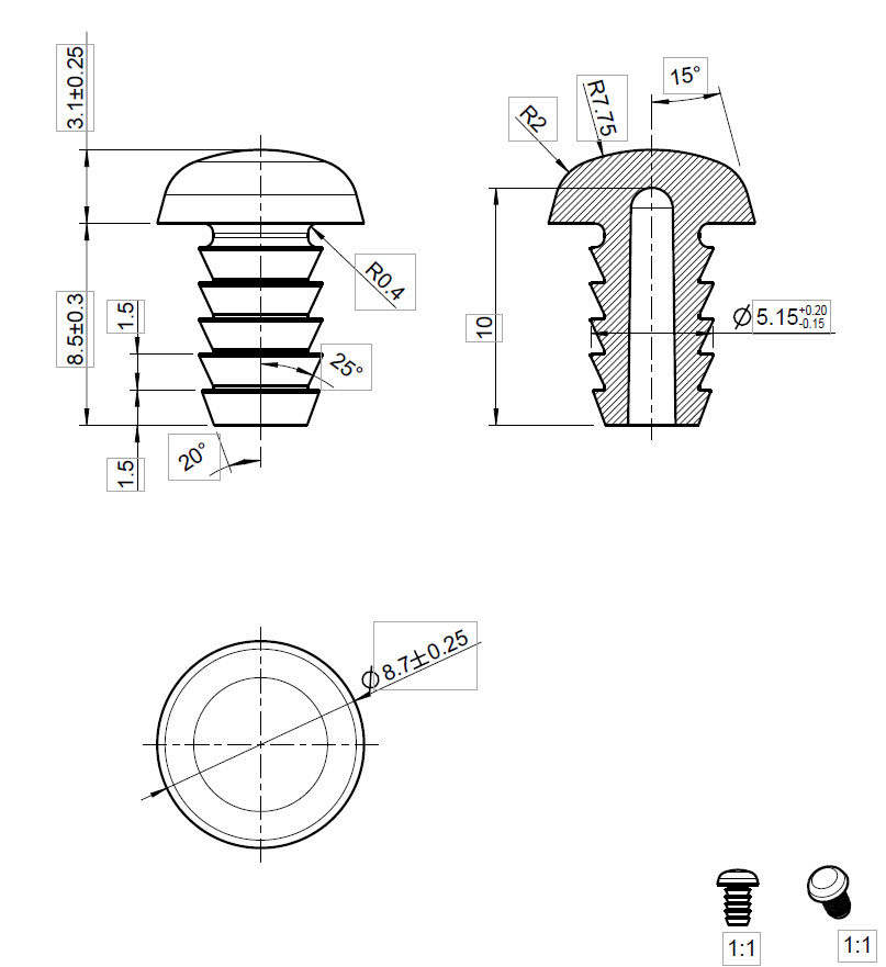 Head Thickness: 3 mm