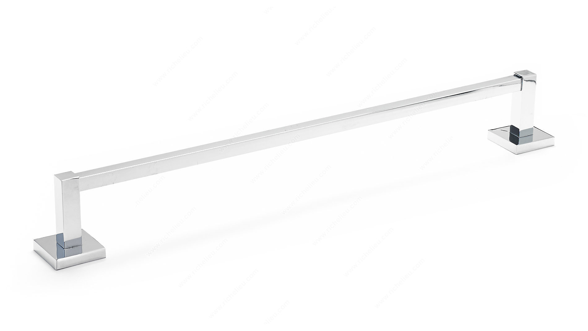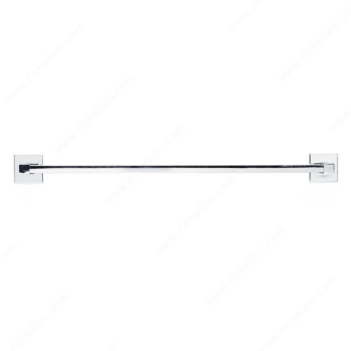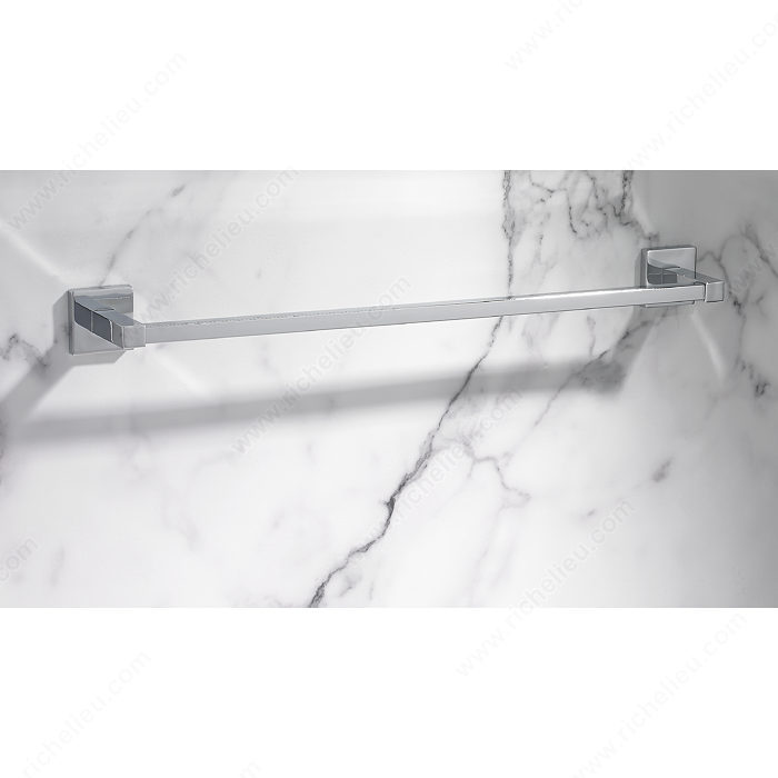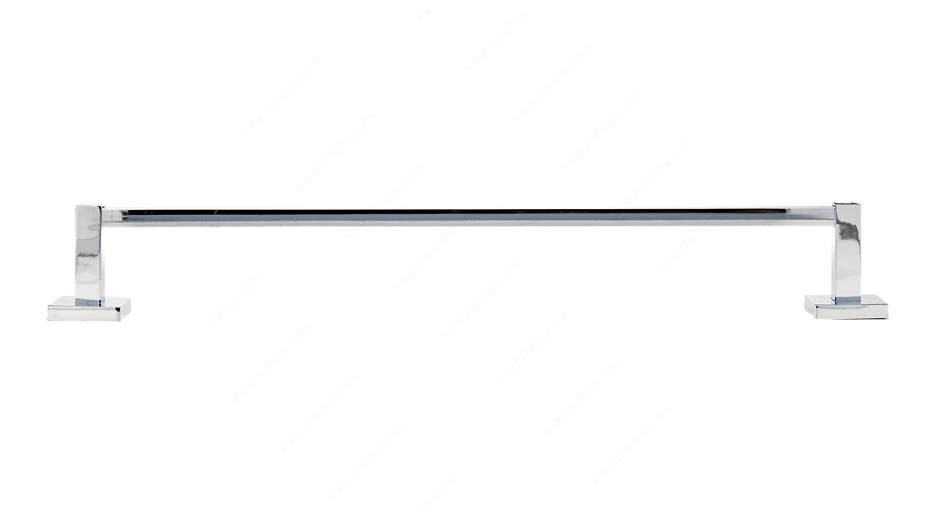 Richelieu NB1031843 Towel Bar - Palisades Collection elevates your bathroom’s aesthetic with its contemporary design. Available in two sizes and four stylish finishes, this towel bar seamlessly complements a variety of decor styles, making it a versatile addition to any space. The 24-inch version is specifically designed to accommodate large towels, ensuring practicality without sacrificing style. Crafted from durable metal, the NB1031843 boasts an impressive overall height of 1 25/32 inches and a length of 19 1/2 inches. With a projection of 2 23/32 inches, it provides ample space for hanging towels while maintaining a sleek profile. The center-to-center measurement of 17 1/2 inches ensures easy installation, and all necessary mounting hardware, along with concealing screws, are included for a hassle-free setup. Offered in a chic chrome finish, this towel bar not only enhances functionality but also adds a modern touch to your bathroom. Whether you are a building professional or a knowledgeable homeowner, the Palisades Collection towel bar is an ideal choice for those seeking quality and style in their bathroom accessories. Choose Richelieu for a fresh, contemporary look that stands the test of time.