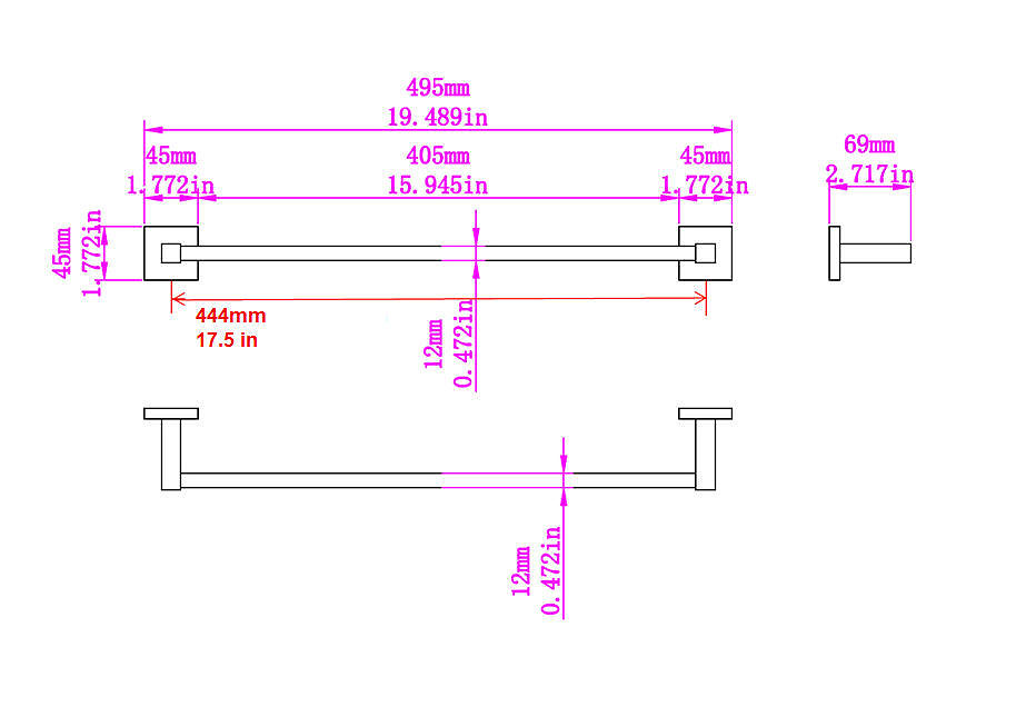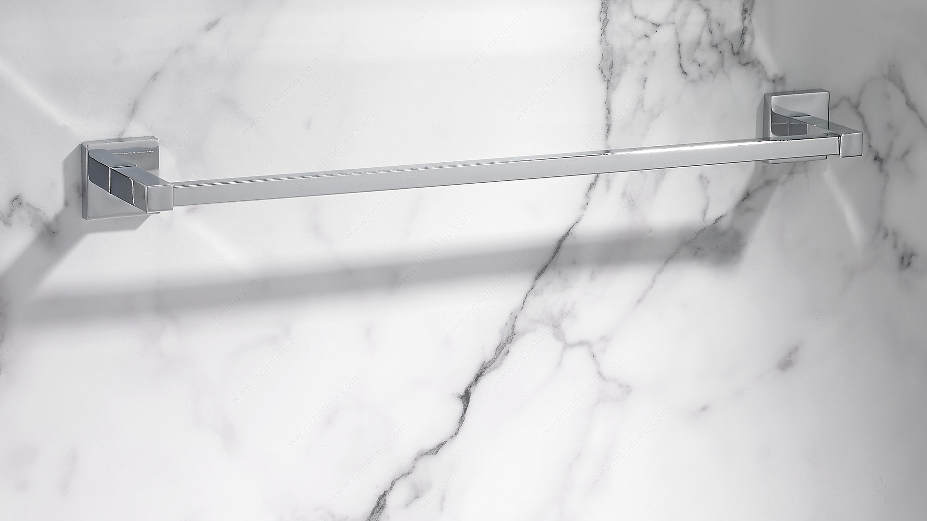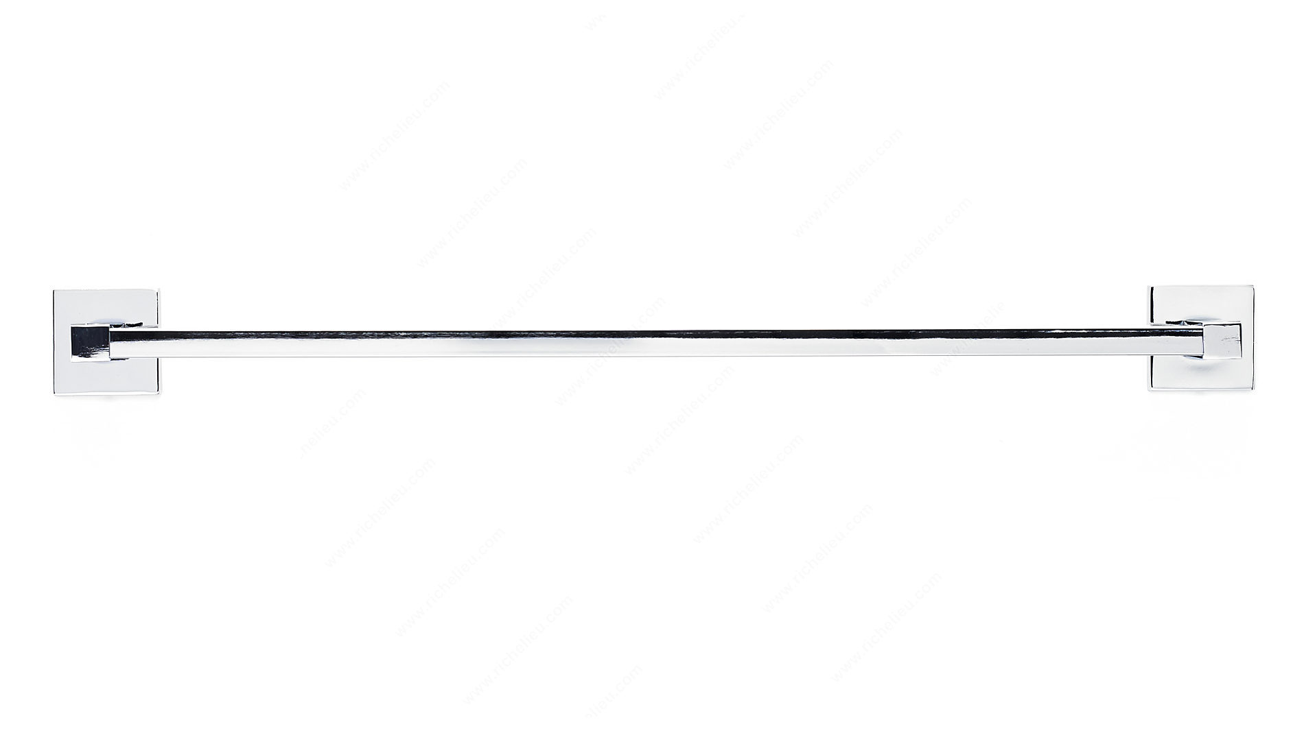 Richelieu NB1031843 Towel Bar - Palisades Collection elevates your bathroom’s aesthetic with its contemporary design. Available in two sizes and four stylish finishes, this towel bar seamlessly complements a variety of decor styles, making it a versatile addition to any space. The 24-inch version is specifically designed to accommodate large towels, ensuring practicality without sacrificing style. Crafted from durable metal, the NB1031843 boasts an impressive overall height of 1 25/32 inches and a length of 19 1/2 inches. With a projection of 2 23/32 inches, it provides ample space for hanging towels while maintaining a sleek profile. The center-to-center measurement of 17 1/2 inches ensures easy installation, and all necessary mounting hardware, along with concealing screws, are included for a hassle-free setup. Offered in a chic chrome finish, this towel bar not only enhances functionality but also adds a modern touch to your bathroom. Whether you are a building professional or a knowledgeable homeowner, the Palisades Collection towel bar is an ideal choice for those seeking quality and style in their bathroom accessories. Choose Richelieu for a fresh, contemporary look that stands the test of time.