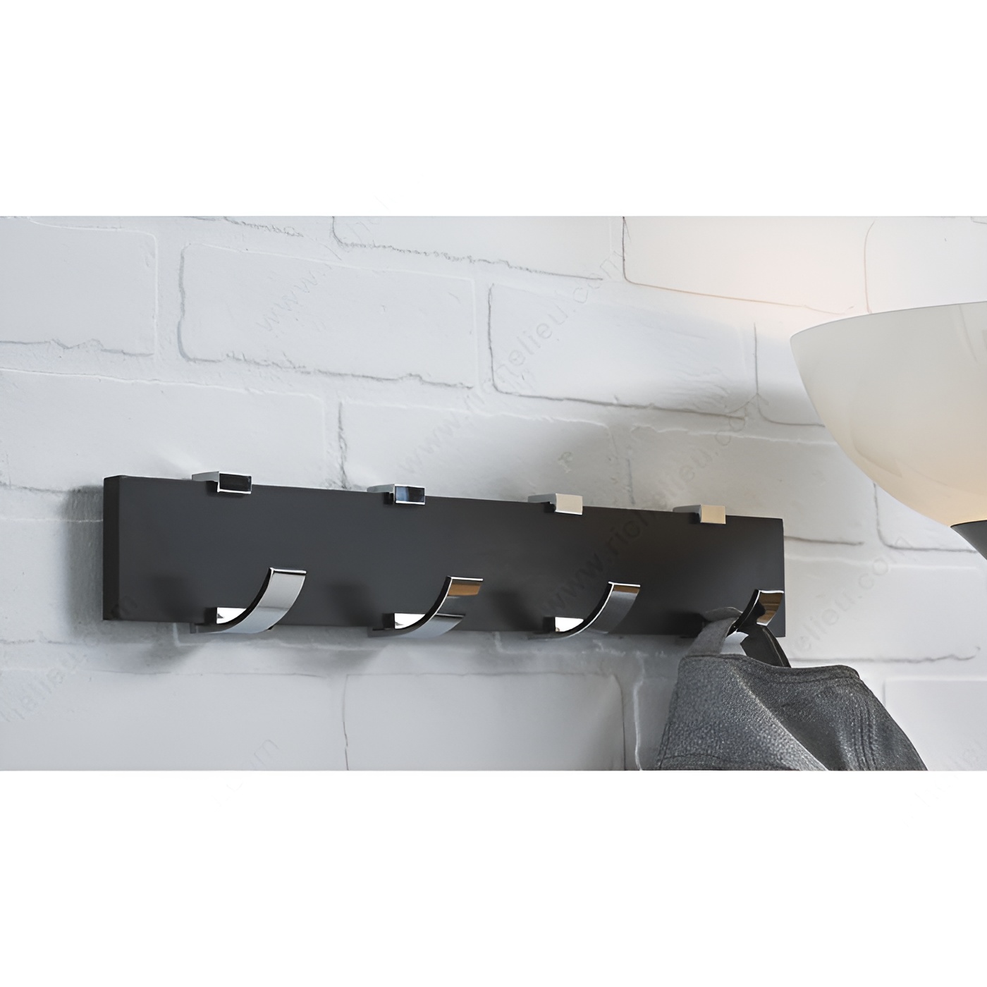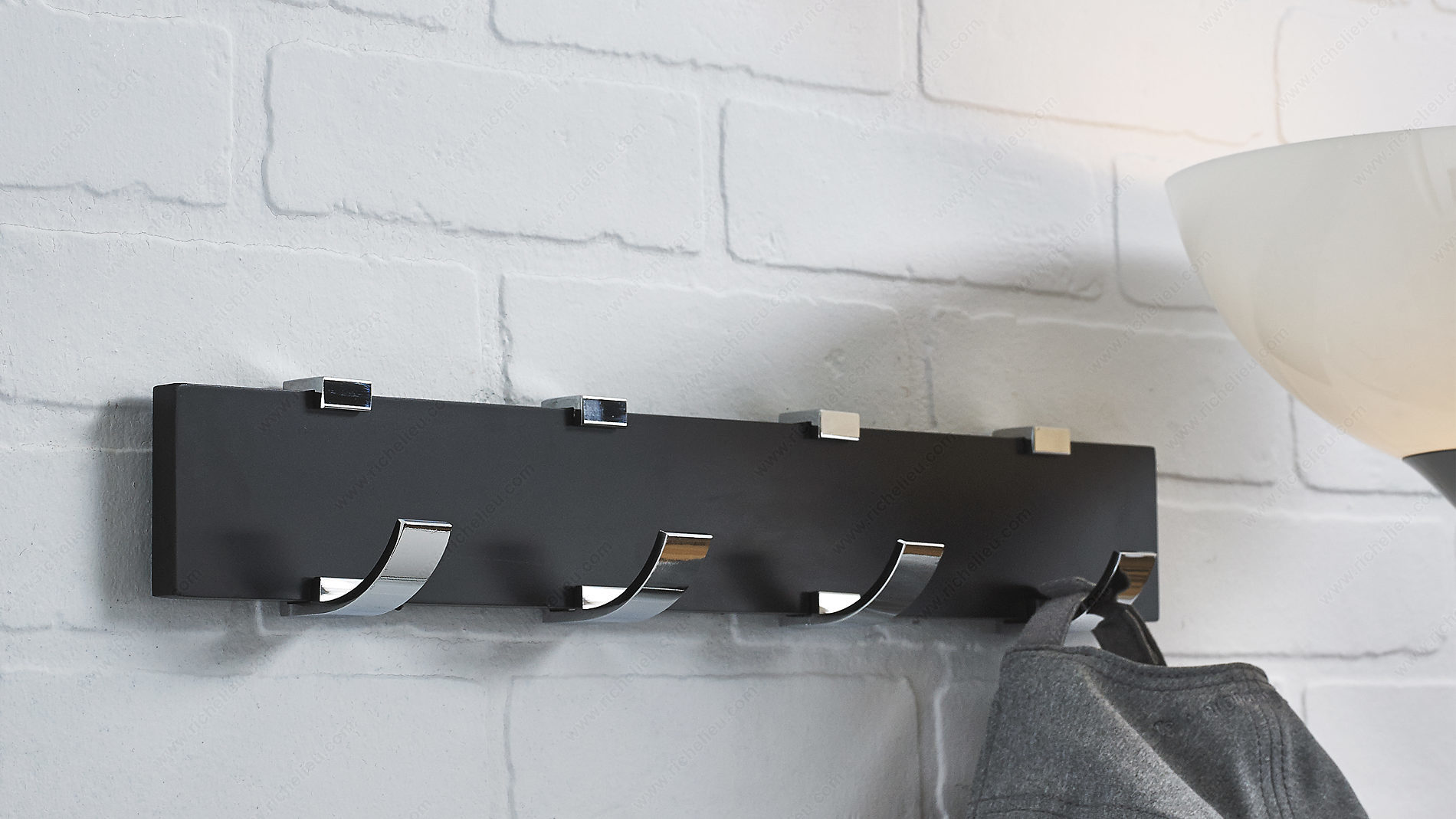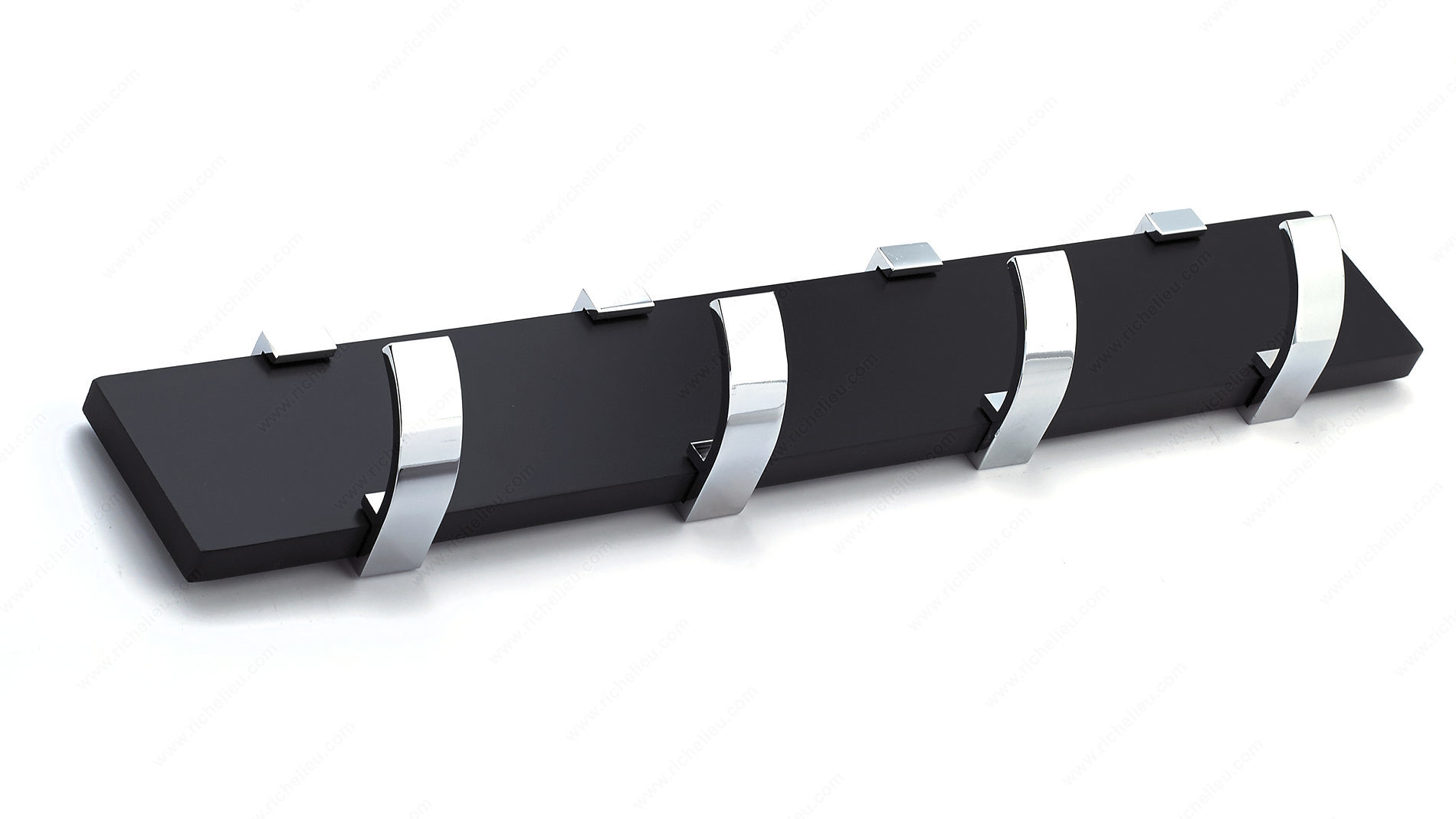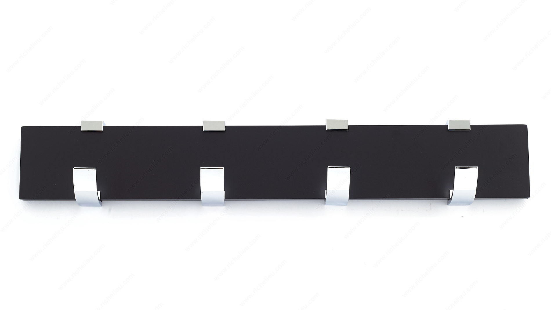 Richelieu NH118214490140 Modern Hook Rack - 1182 is a perfect blend of style and functionality, designed to elevate your space while providing practical storage solutions. This contemporary hook rack features four single hooks mounted on a sleek black board, making it an ideal accessory for a variety of settings. Whether in bedrooms, bathrooms, entryways, mudrooms, or closets, this piece enhances your modern decor while keeping your essentials organized. With a load capacity of 22 lbs, the hook rack is built to handle daily use, ensuring reliability without compromising on style. The combination of a chrome and black finish gives it a sophisticated look, while the overall dimensions of 2 21/32 inches in height, 2 15/32 inches in projection, and 17 3/4 inches in width make it a versatile addition to any wall or door. Installation is straightforward, with screws included for easy setup. Crafted from durable metal and wood, this hook rack not only serves its purpose but also adds a touch of elegance to your home. Choose the Richelieu Modern Hook Rack to bring both organization and modern flair to your living spaces.