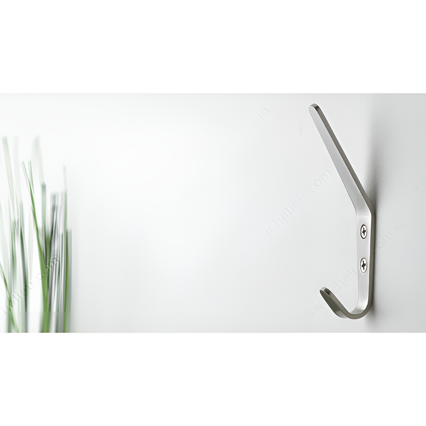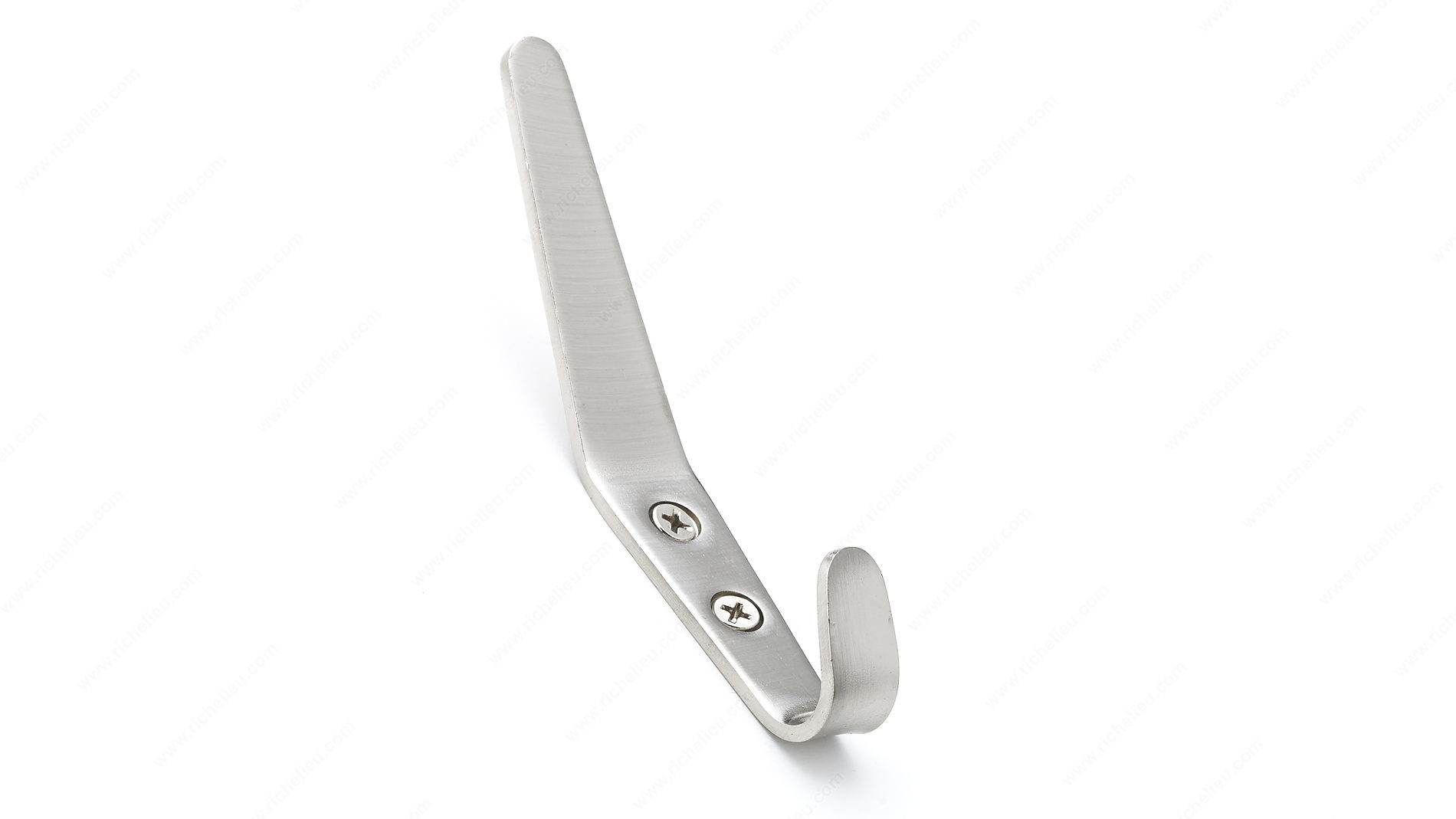 Richelieu NH1513021195 Modern Metal Hook - 1513 offers a contemporary solution for your storage needs with its sleek design and dual arm functionality. Finished in brushed nickel, this coat hook seamlessly complements a variety of décors, from minimalist to modern styles. With a height of 4 3/4 inches and a projection of 1 7/16 inches, it delivers both form and function, making it an ideal choice for bedrooms, bathrooms, entryways, mudrooms, and closets. The double hook design effectively doubles your storage capacity, allowing you to hang multiple items while maintaining a tidy appearance. Crafted from durable metal, it boasts a robust load capacity of 22 pounds, ensuring reliability for your everyday use. The hook’s overall width measures 3/4 inch, and it features a convenient center-to-center spacing of 3/4 inch, making installation straightforward on walls or doors. Each package includes the necessary screws for easy mounting, ensuring a hassle-free setup. Whether you're looking to organize your living space or add a stylish touch, the Richelieu NH1513021195 Modern Metal Hook is a versatile and practical choice that enhances any area with elegance and efficiency.