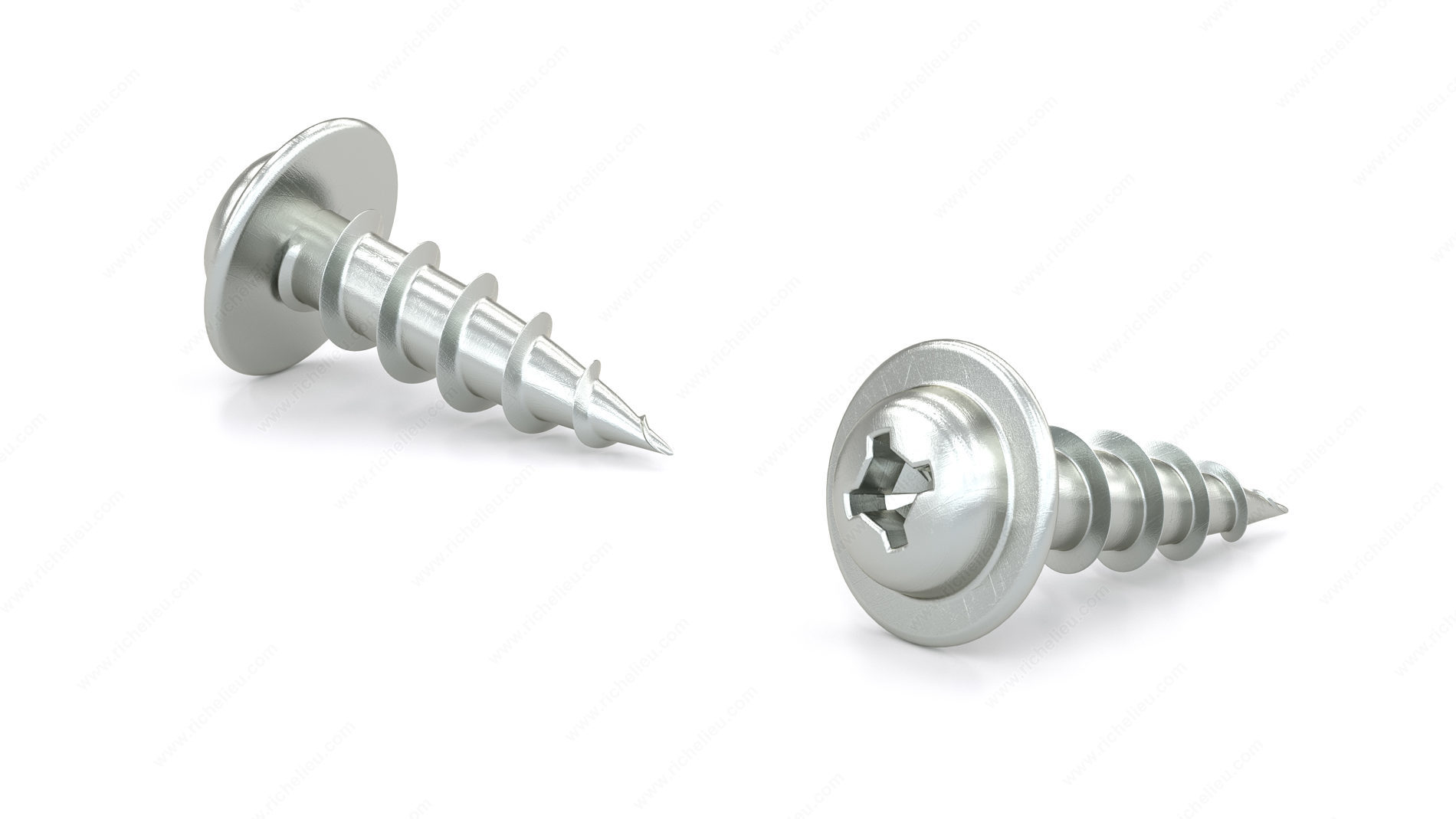 Zinc-Plated Wood Screw, Pan Washer Head, Quadrex Drive, Coarse Thread, Regular Wood Point