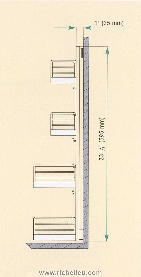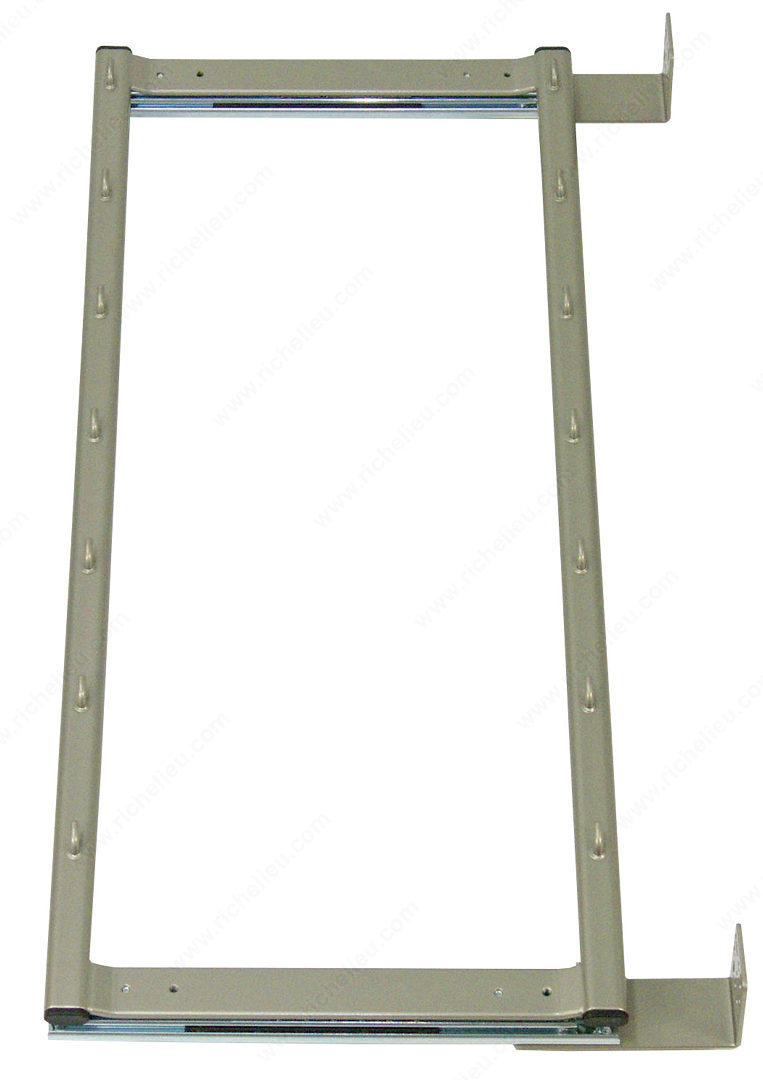 Richelieu 2579155 Arena Plus Reversible Frame offers versatile storage solutions for your kitchen or pantry. This reversible grey frame is designed to mount on the side or back of your cabinet, providing flexibility for various configurations. It accommodates 1" or 1/2" spacers, making it ideal for framed cabinet applications. With a robust capacity of 17.6 lb*, this frame is perfect for organizing your food storage or other items, ensuring they are both accessible and secure. The elegant champagne finish adds a touch of sophistication, seamlessly blending with any kitchen decor. To ensure a proper fit, the Arena Plus requires minimum interior dimensions of 10 1/4 inches in depth, 23 1/2 inches in height, and 4 1/2 inches in width. Crafted from durable metal, it guarantees long-lasting performance, making it a reliable choice for upper cabinets. This product ships via UPS, allowing for convenient delivery straight to your door. Enhance your kitchen’s functionality with the Richelieu Arena Plus Reversible Frame, a smart solution for maximizing storage space while maintaining an organized environment. Experience the perfect blend of style and practicality with this essential kitchen accessory.
