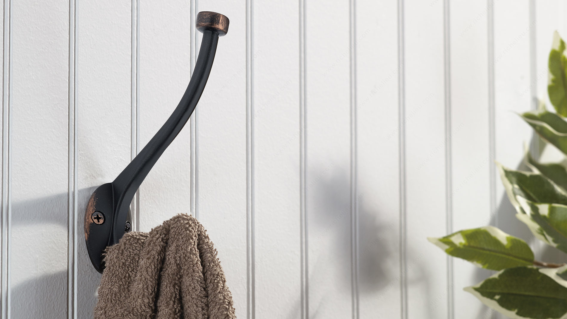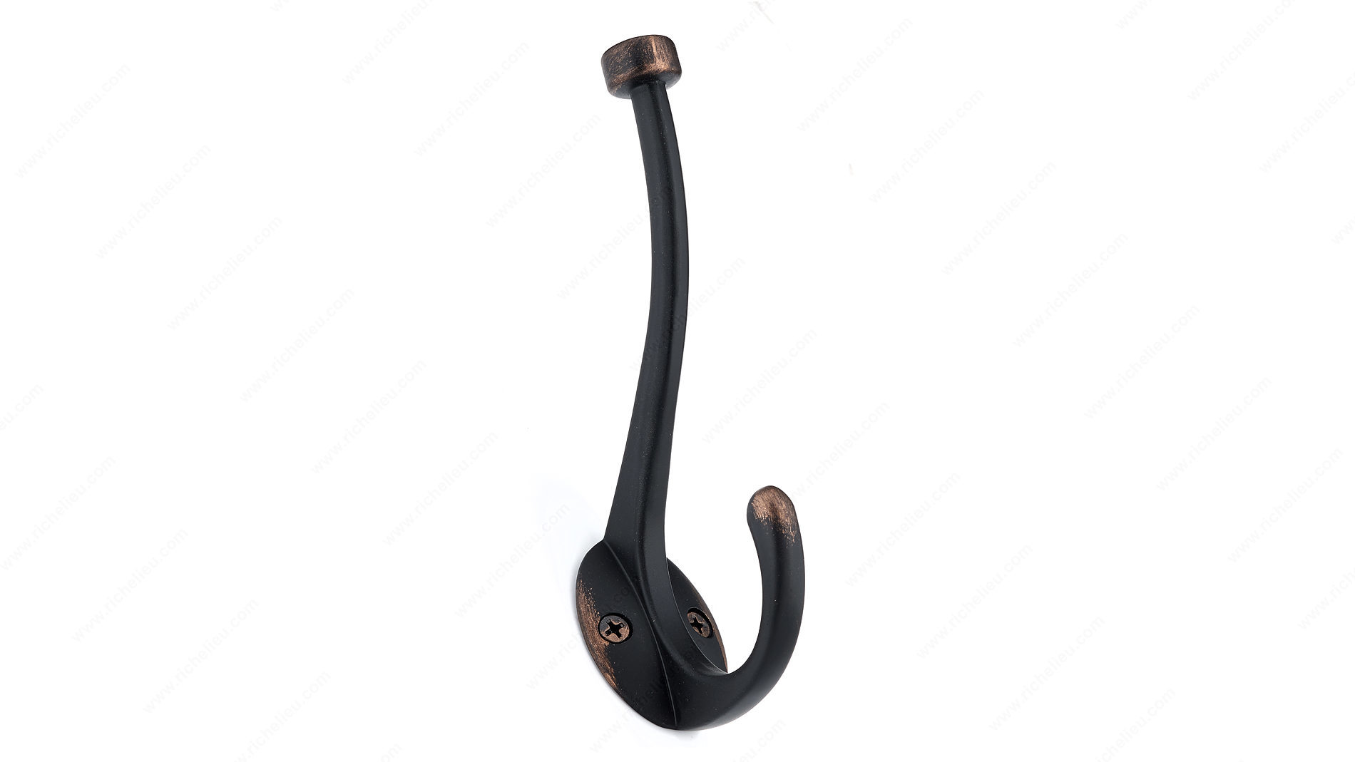 Richelieu RH026200BORB Transitional Metal Hook - 026 is a perfect blend of style and functionality, designed to enhance your space while providing ample storage. Featuring a brushed oil-rubbed bronze finish, this dual arm coat hook not only complements a variety of interiors but also maximizes your hanging potential. The top hook is equipped with a ball end, ensuring your garments and accessories hang securely and neatly. With an overall height of 5 13/16 inches and a projection of 3 7/32 inches, this transitional double hook is versatile enough for installation in bedrooms, bathrooms, entryways, mudrooms, closets, and more. The hook's robust construction allows it to support up to 22 pounds, making it ideal for coats, bags, or towels. Designed for easy installation, each hook comes with wood screws included for your convenience. The center-to-center measurement of 7/8 inch ensures a seamless fit wherever you choose to place it. Packaged in a bag for protection, the Richelieu RH026200BORB hook is both a practical and attractive solution to your organizational needs, adding a touch of refinement to any room. Elevate your space with a functional accessory that embodies quality and style.