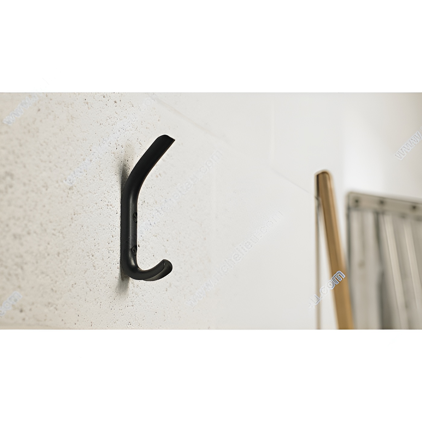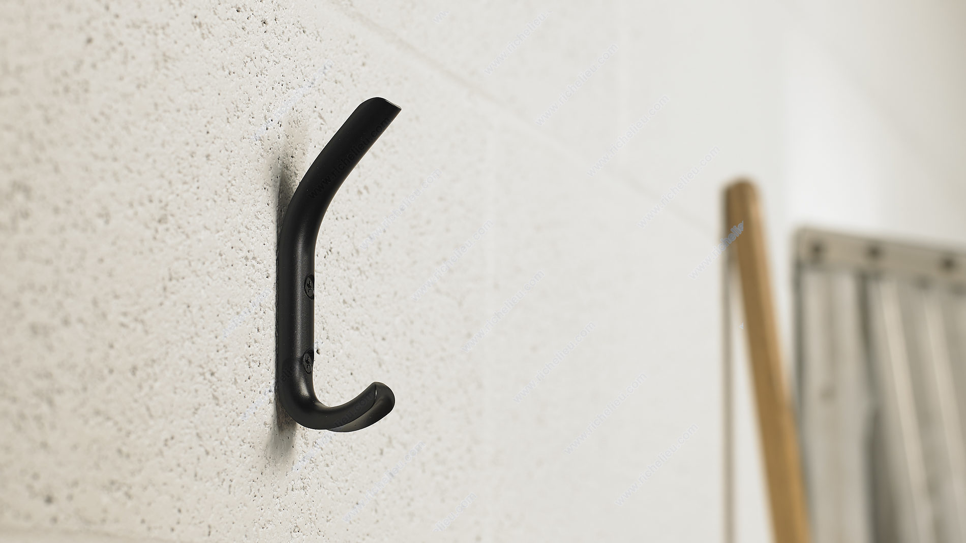 Richelieu RH115302190 Modern Metal Hook - 1143 combines style and functionality in a sleek design perfect for any contemporary space. Crafted from durable metal, this double hook features a striking black finish that enhances its modern aesthetic, making it an attractive addition to bedrooms, bathrooms, entryways, mudrooms, closets, and more. With a height of 4 3/8 inches and a projection of 1 19/32 inches, this hook offers a compact solution for maximizing your storage potential. The innovative dual arm design allows for efficient organization, accommodating items up to 55.1 pounds, ensuring it can handle daily use without compromise. Installation is straightforward, as the hook can be mounted on walls or doors, providing versatility in placement. Each unit comes complete with screws for easy setup, making it a hassle-free choice for builders and homeowners alike. Whether you need a functional accessory or a subtle decorative touch, the Richelieu RH115302190 Modern Metal Hook is the ideal solution. Elevate your space with this elegant yet practical hook that brings order and sophistication to any area.