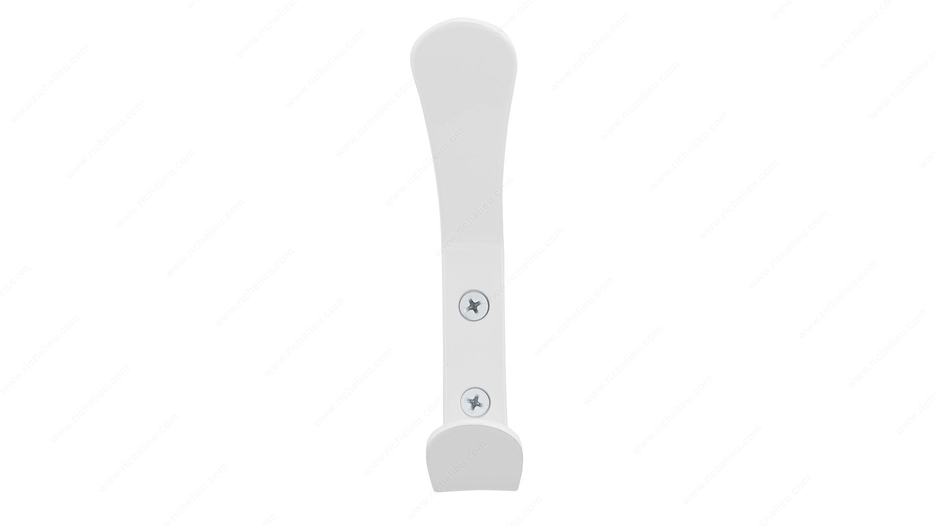 Richelieu RH125302130 Modern Metal Hook - 1253 seamlessly combines style and functionality, making it a perfect addition to any contemporary space. This modern double hook boasts a sleek white finish that enhances various interior styles, from urban chic to minimalist elegance. With its dual arm design, this hook offers increased storage potential, allowing you to hang multiple items while keeping your area organized and clutter-free. Measuring 4 27/32 inches in height, with a projection of 2 inches and an overall width of 15/16 inches, this hook is designed to fit effortlessly into tight spaces. The load capacity of 22 pounds ensures it can handle your essentials, whether in the bedroom, bathroom, entryway, or mudroom. Installation is straightforward, as it can be mounted on walls or doors, and the necessary screws are included for your convenience. Crafted from durable metal, the RH125302130 combines strength with a modern aesthetic, making it a reliable choice for both building professionals and discerning homeowners. Elevate your organizational solutions with this stylish hook that not only serves its purpose but also adds a touch of sophistication to your décor.