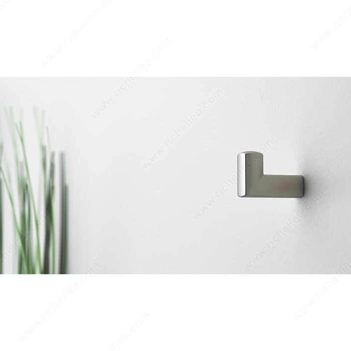 Richelieu RH1483011170 Modern Stainless Steel Hook - 1483 seamlessly combines simplicity with a contemporary flair. Designed for those who appreciate minimalism, this hook serves as a stylish yet functional addition to any modern space. With an overall height of 1 1/4 inches and a projection of 1 3/4 inches, it offers a discreet presence without compromising utility. Constructed from durable 202 stainless steel, this hook is both robust and attractive, featuring a sleek gray and chrome finish that enhances its modern appeal. The hook supports a load capacity of up to 11 pounds, making it perfect for hanging coats, bags, or other everyday essentials. Each RH1483011170 comes with screws included, ensuring easy installation for any project. Its compact width of 5/8 inches allows it to fit seamlessly into tight spaces, making it an ideal choice for homes, offices, or commercial environments. Whether you're outfitting a sleek entryway or adding functional accents to a contemporary kitchen, Richelieu's Modern Stainless Steel Hook is the perfect choice for those looking to marry style with practicality. Elevate your space with this essential detail that reflects your dedication to modern design.