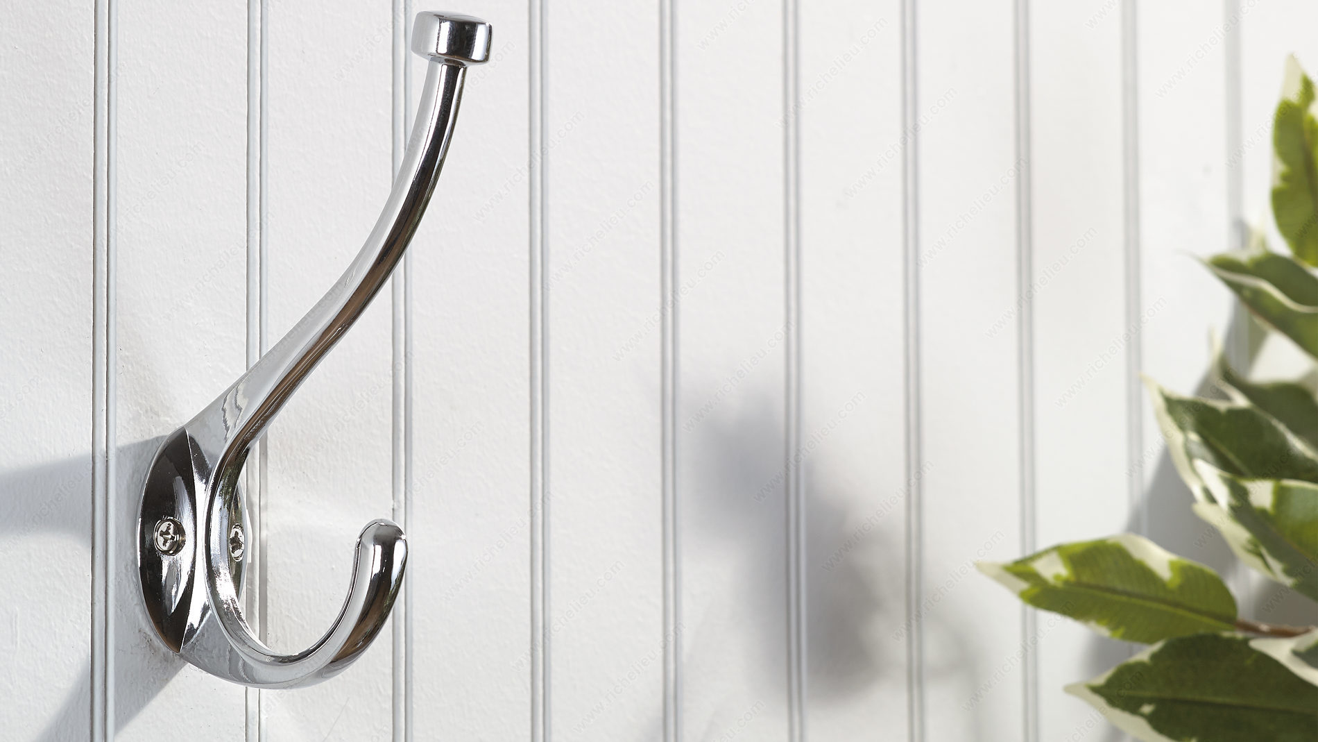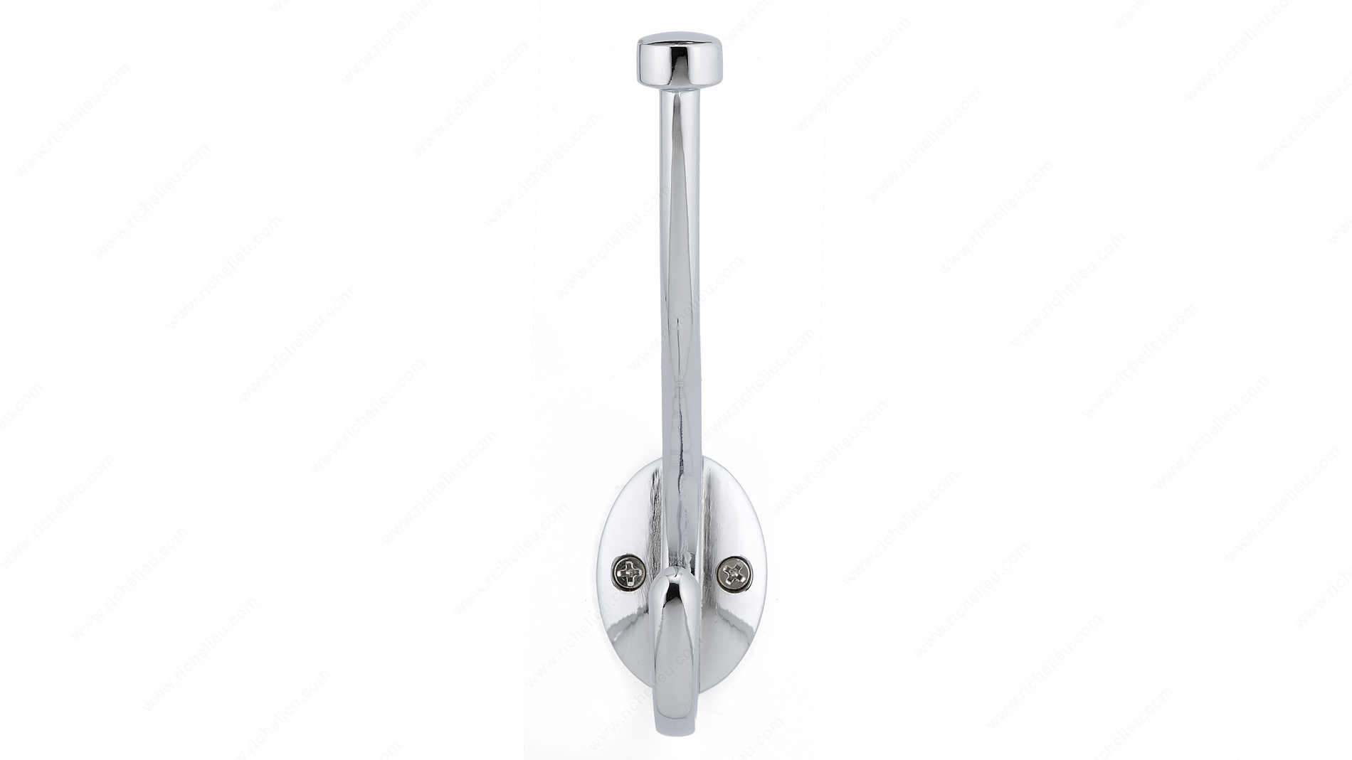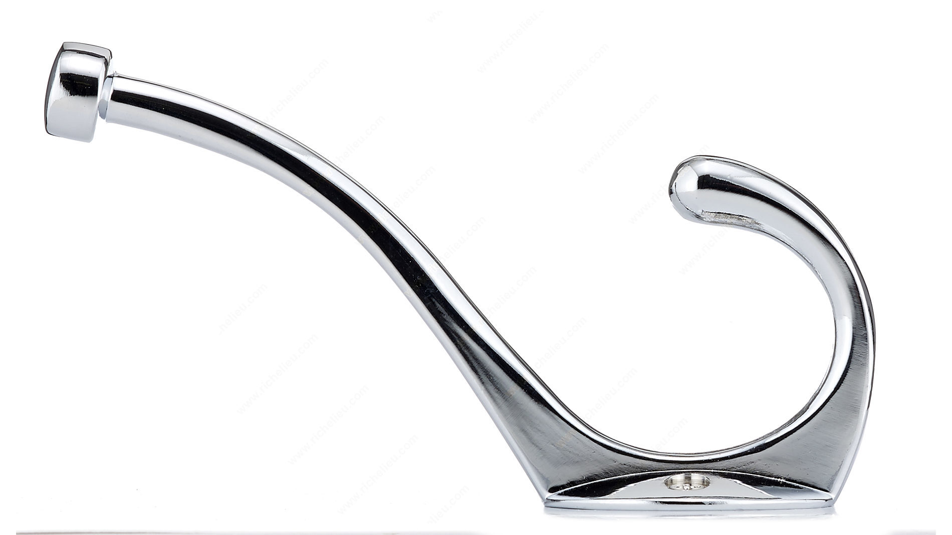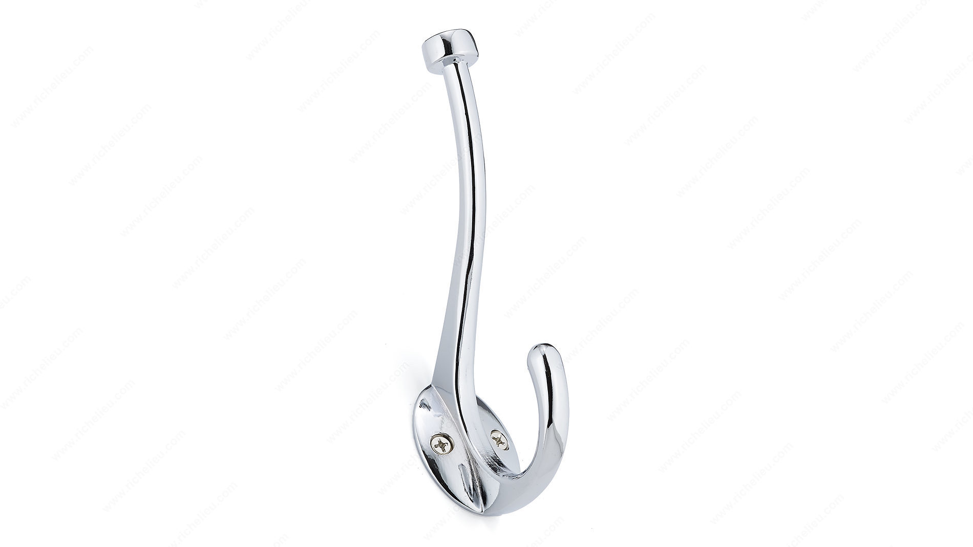 Richelieu RH2173021140 Transitional Metal Hook - 026 offers a sophisticated solution for enhancing your organizational needs. This dual arm coat hook is designed with a sleek chrome finish that effortlessly complements any decor, making it a versatile addition to bedrooms, bathrooms, entryways, mudrooms, and closets. With an overall height of 5 13/16 inches and a projection of 3 7/32 inches, this hook is not only stylish but also practical, providing ample space for hanging clothing and accessories. The unique ball end on the top hook ensures that items hang securely, preventing slips and maintaining order. Capable of supporting up to 22 pounds, the double hook design maximizes your storage potential, making it ideal for both personal and professional use. Installation is straightforward, as the hook can be mounted on walls or doors, and includes wood screws for your convenience. The hook's overall width measures 1 7/16 inches, with a center-to-center distance of 7/8 inch, ensuring a snug fit in tight spaces. Whether you're looking to declutter or add a touch of refinement, the Richelieu Transitional Metal Hook is a perfect choice for enhancing functionality in any area of your home or workspace.