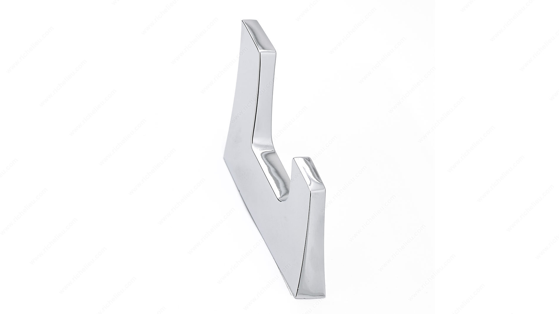 Richelieu RH2303021140 Modern Metal Hook - 2303 is designed to enhance your contemporary space with its sleek and innovative design. This double hook offers a perfect blend of function and style, making it an excellent addition to any room. With a load capacity of 22 lbs, it provides robust support for coats, bags, and other items while maintaining a minimalist aesthetic. Crafted from durable metal, the hook features a striking chrome finish that adds a touch of sophistication. Measuring 3 19/32 inches in height and 1/2 inch in width, it fits seamlessly with various design elements. The modern gray and chrome color palette allows it to blend discreetly into your décor, contributing to a polished look. Installation is straightforward, as screws are included for your convenience. The hook's projection of 1 17/32 inches means it extends just enough to be functional without being obtrusive. With a center-to-center measurement of 1 1/4 inches, it can be mounted easily in tight spaces. Whether outfitting an entryway, bathroom, or office, the Richelieu RH2303021140 Modern Metal Hook is an ideal choice for those seeking stylish and practical hardware solutions.