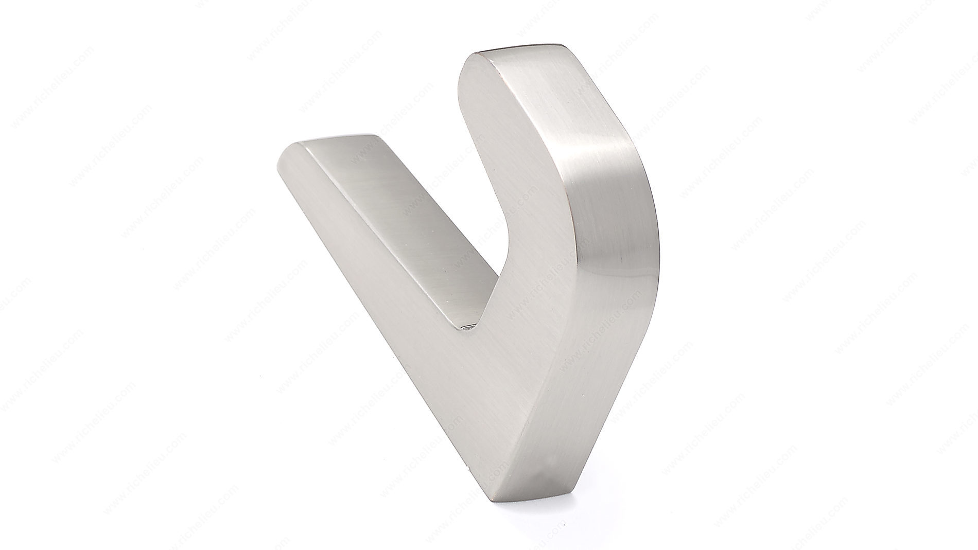 Richelieu RH2333011195 Modern Metal Hook - 2333 combines sleek design with functional durability, making it an ideal choice for contemporary spaces. This simple hook features a modern aesthetic that enhances any surface while maintaining a clean, crisp detail. The brushed nickel finish adds a touch of sophistication, seamlessly blending with a variety of décor styles. With an overall height of 1 31/32 inches and a width of 13/32 inches, this hook is compact yet remarkably robust, boasting a load capacity of up to 11 pounds. The hook's projection measures 1 15/32 inches, providing ample space for hanging items without compromising functionality. Designed for easy installation, it comes with screws included for your convenience. Available in an elegant gray and chrome color scheme, the Richelieu Modern Metal Hook complements both minimalist and modern interiors. Its 1 1/4-inch center-to-center measurement ensures compatibility with standard mounting configurations. Whether you need a practical solution for your home or a stylish addition to your professional space, this hook delivers both form and function, making it a versatile accessory for any project.